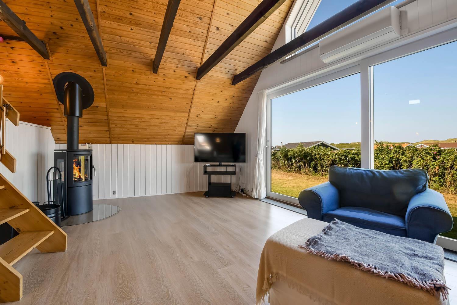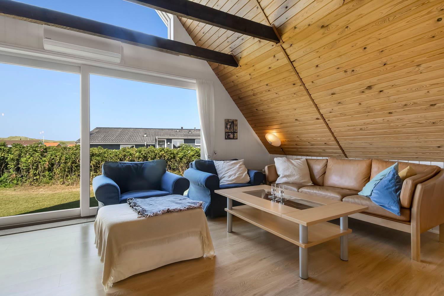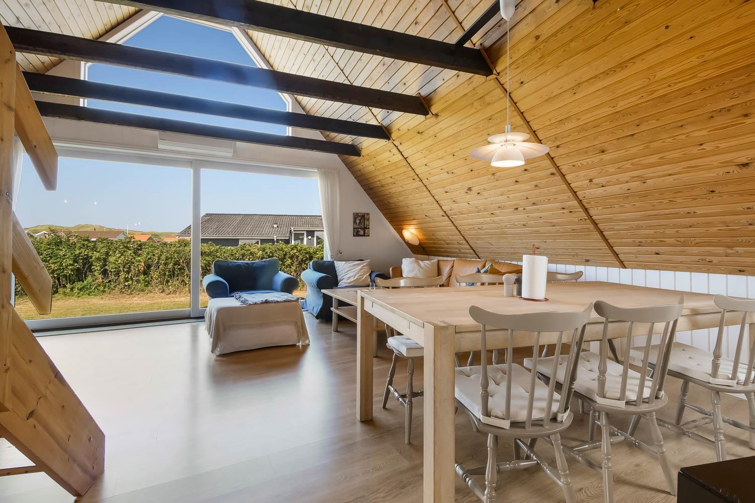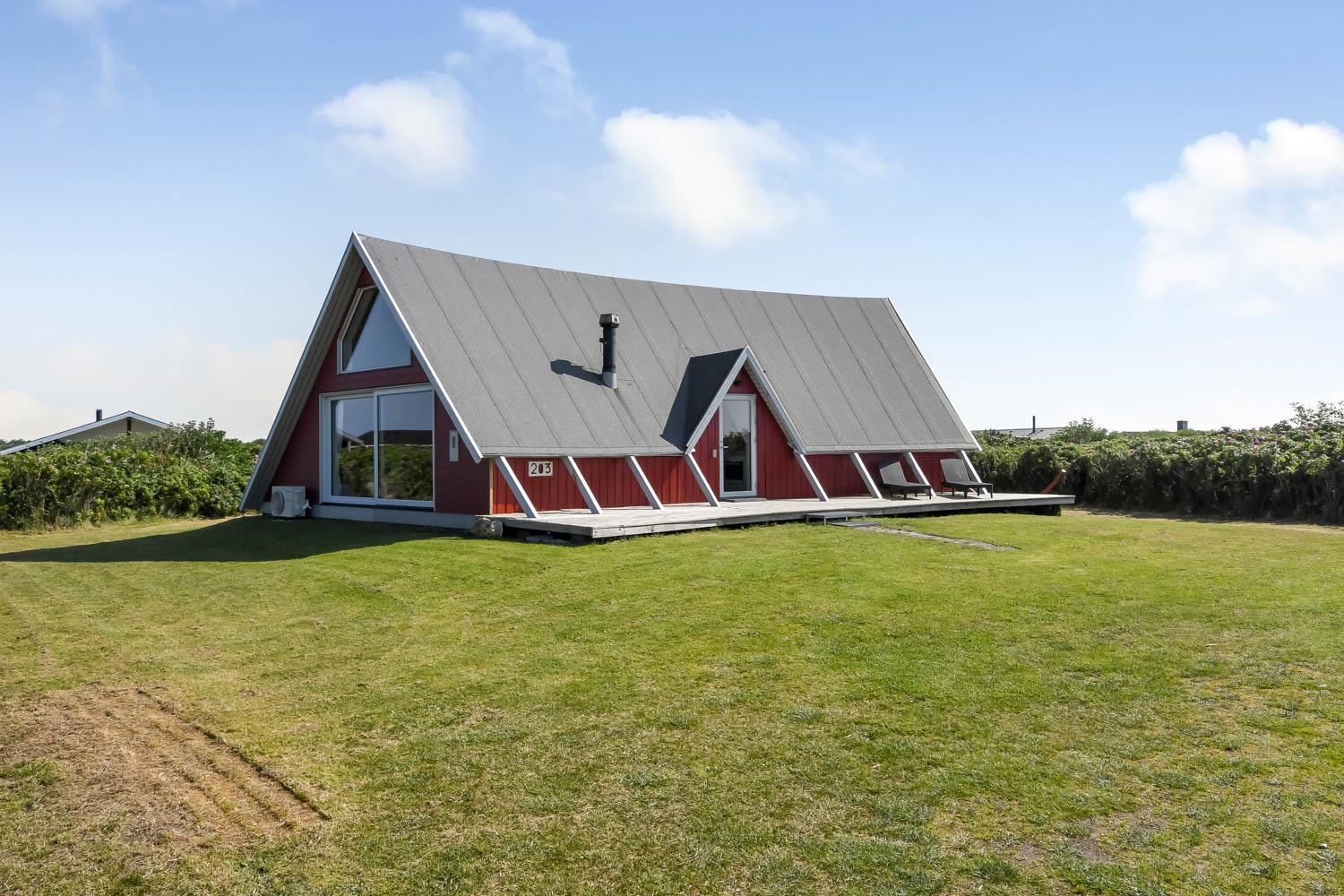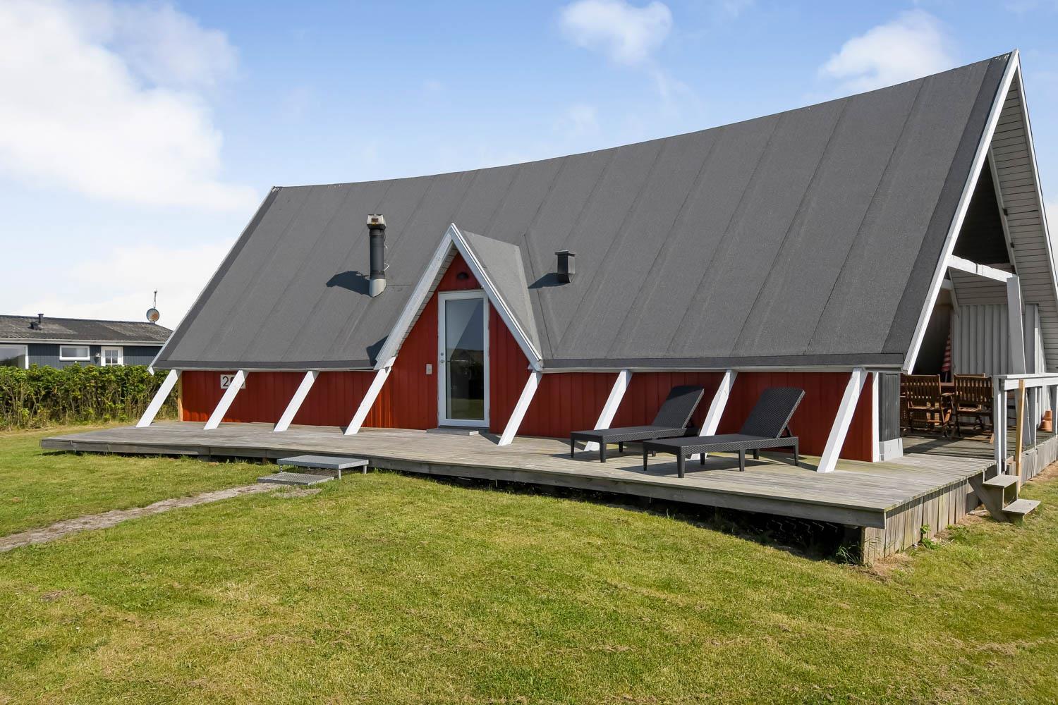 Delvis renoveret, hyggeligt indrettet, feriehus i træ med træterrasse. Huset har sin helt egen charmerende byggestil. Beliggende på sin 1.200 m2 store naturgrund, kun 400 meter fra Vesterhavet og kun 250 m fra Ferring Sø. Her er desuden gratis trådløs internetadgang (fiberforbindelse). Fra huset er der udsigt til klitterne, og fra 1. salen er der udsigt ud over Ferring Sø. Huset er ideelt til parret eller den lille familie.