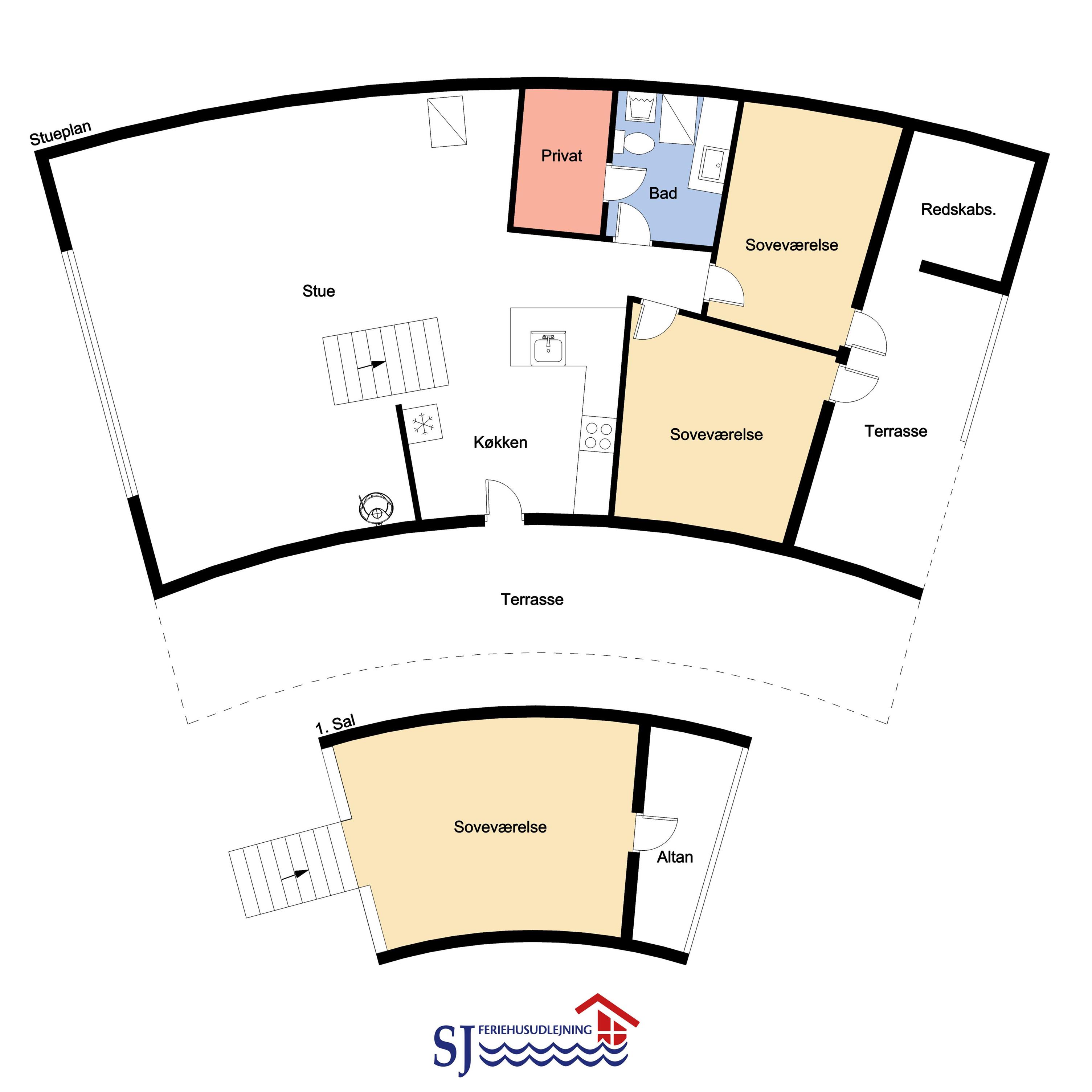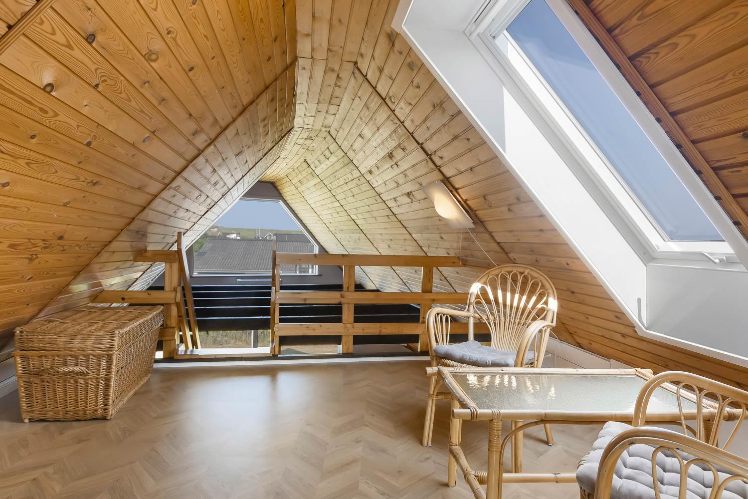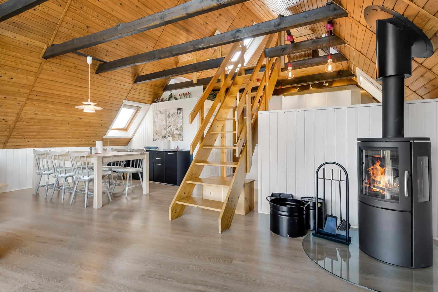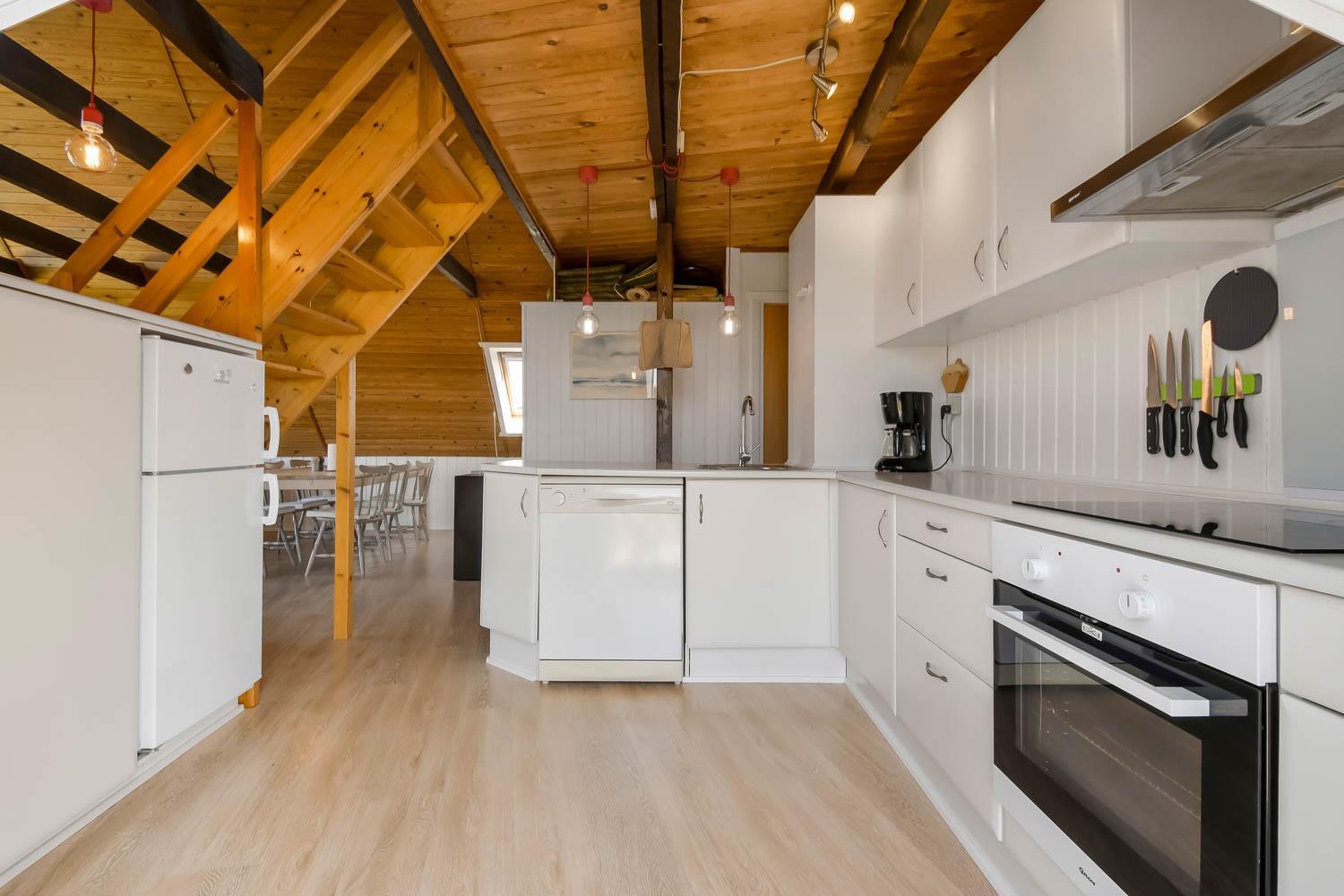 Huset er 112 m2 stort. Hyggelige opholdsstue med lædermøbler, stort smart-TV med danske og tyske kanaler, samt mulighed for streaming af TV/radio/Apps via Chromecast, CD-afspiller og Radio og et stort spisebord. Der er desuden en dejlig ny brændeovn som sammen med varmepumpen sørger for en behagelig varme og er med til at spare på forbruget. Fra stuen er der via en god trappe adgang til en stor hems med siddeplads, 2 ekstra sovepladser med fantastisk udsigt over Ferring Sø. Køkkenhjørne med opvaskemaskine, el-kogeplader, emhætte, indbygningsovn, køleskab med fryseboks og mikrobølgeovn. 2 soveværelser (180x200, 140x200). badeværelse med bruser, håndvask, toilet, vaskemaskine. Det er ikke et rygerhus. Max 2 husdyr tilladt.