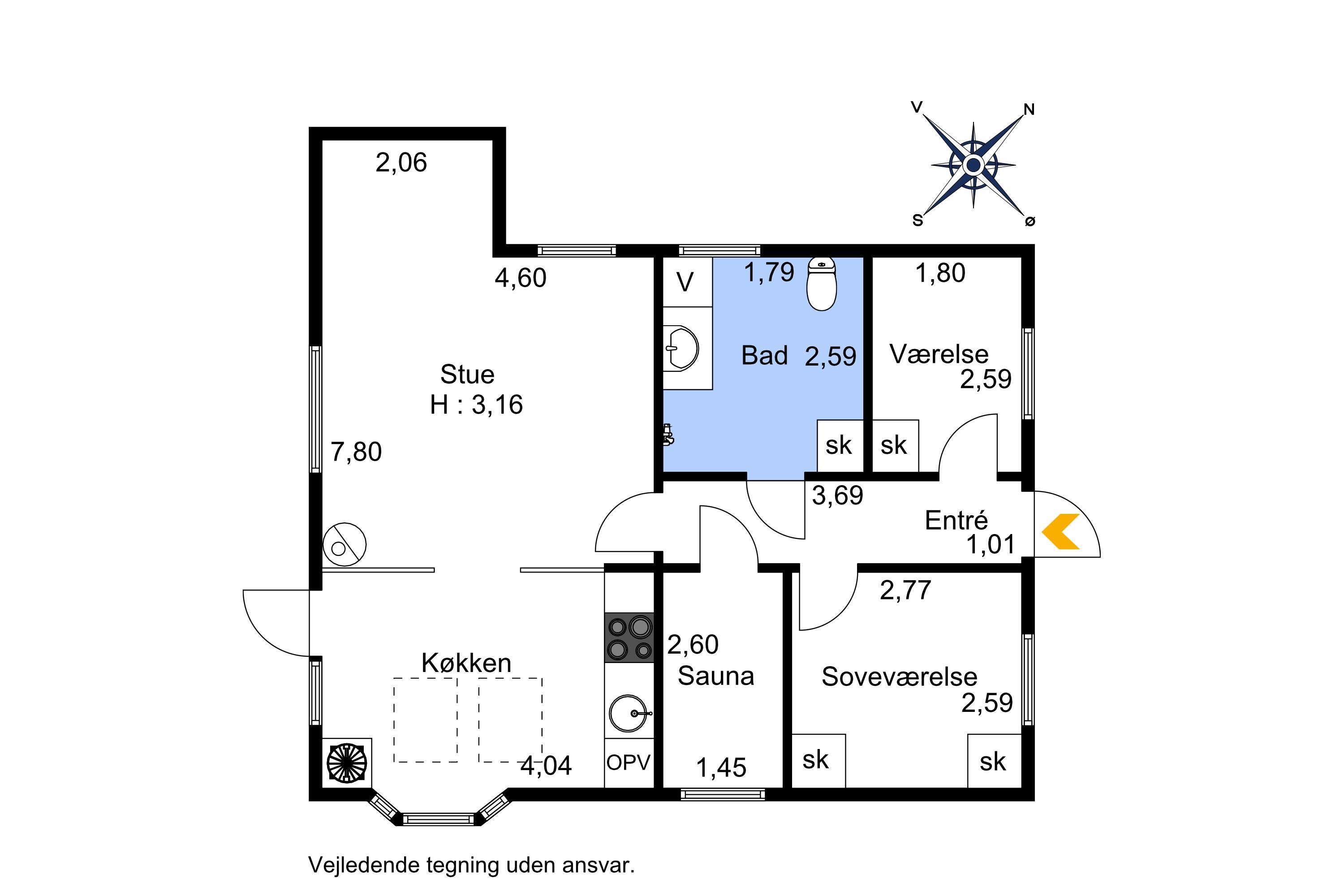 - 1 badeværelse
