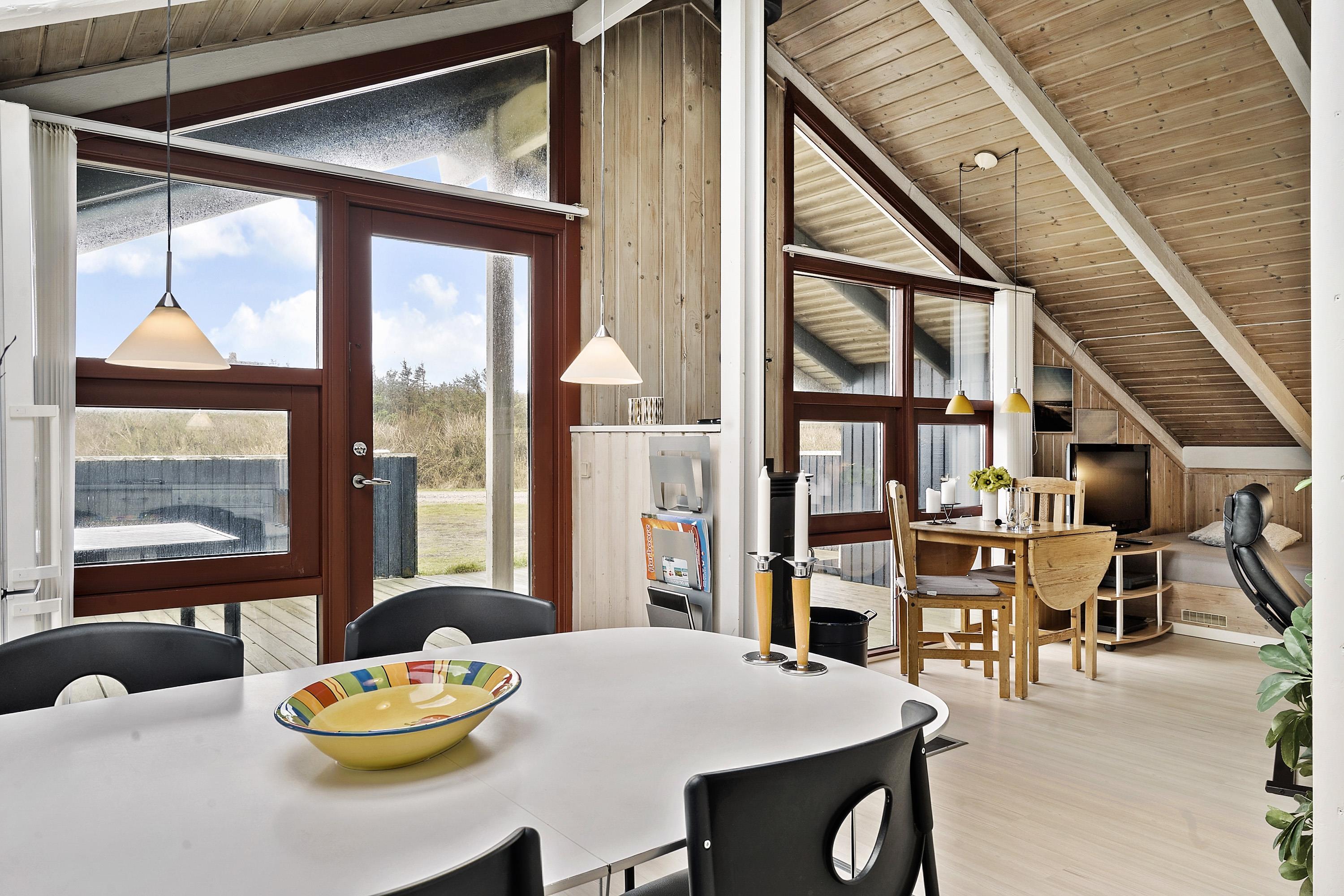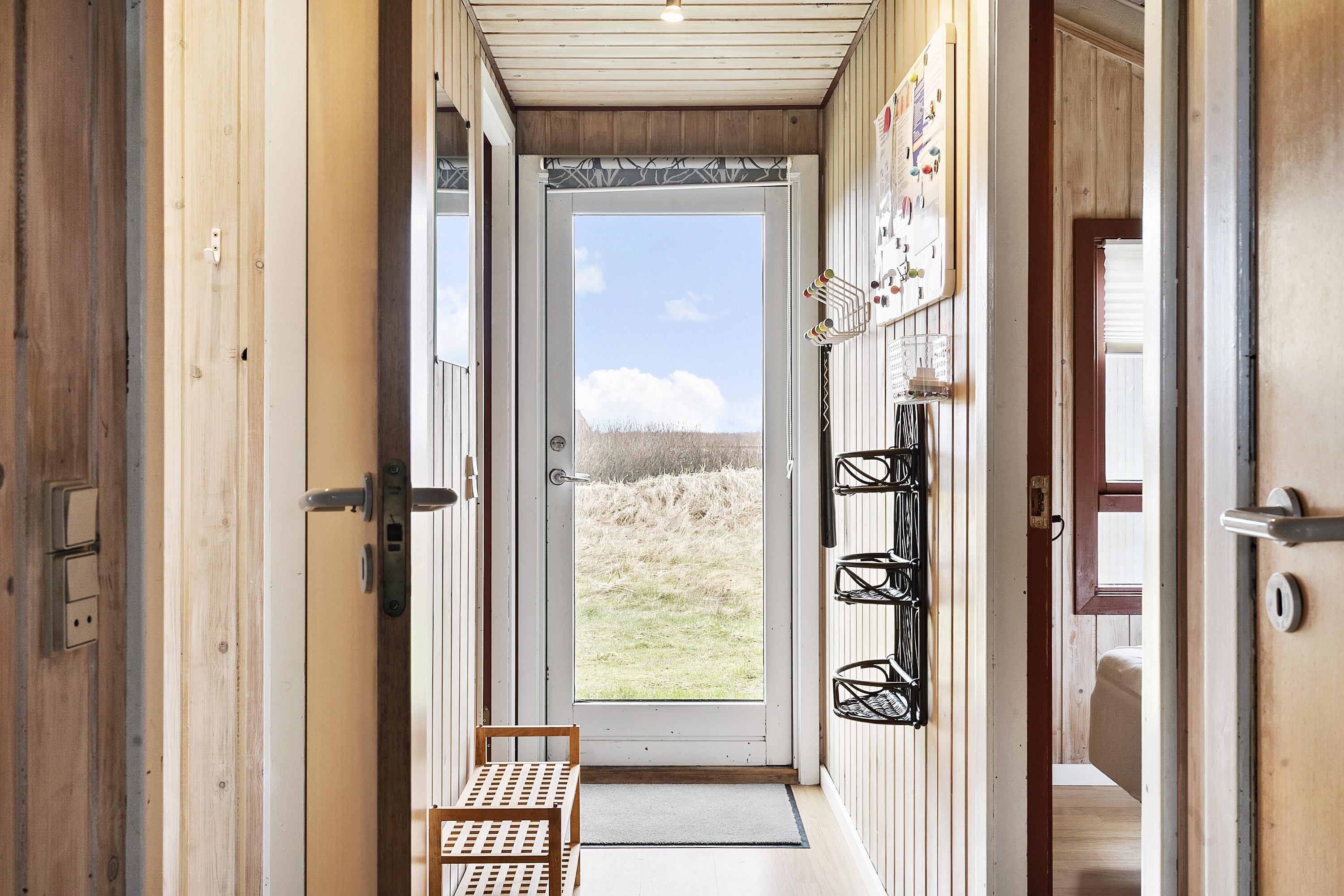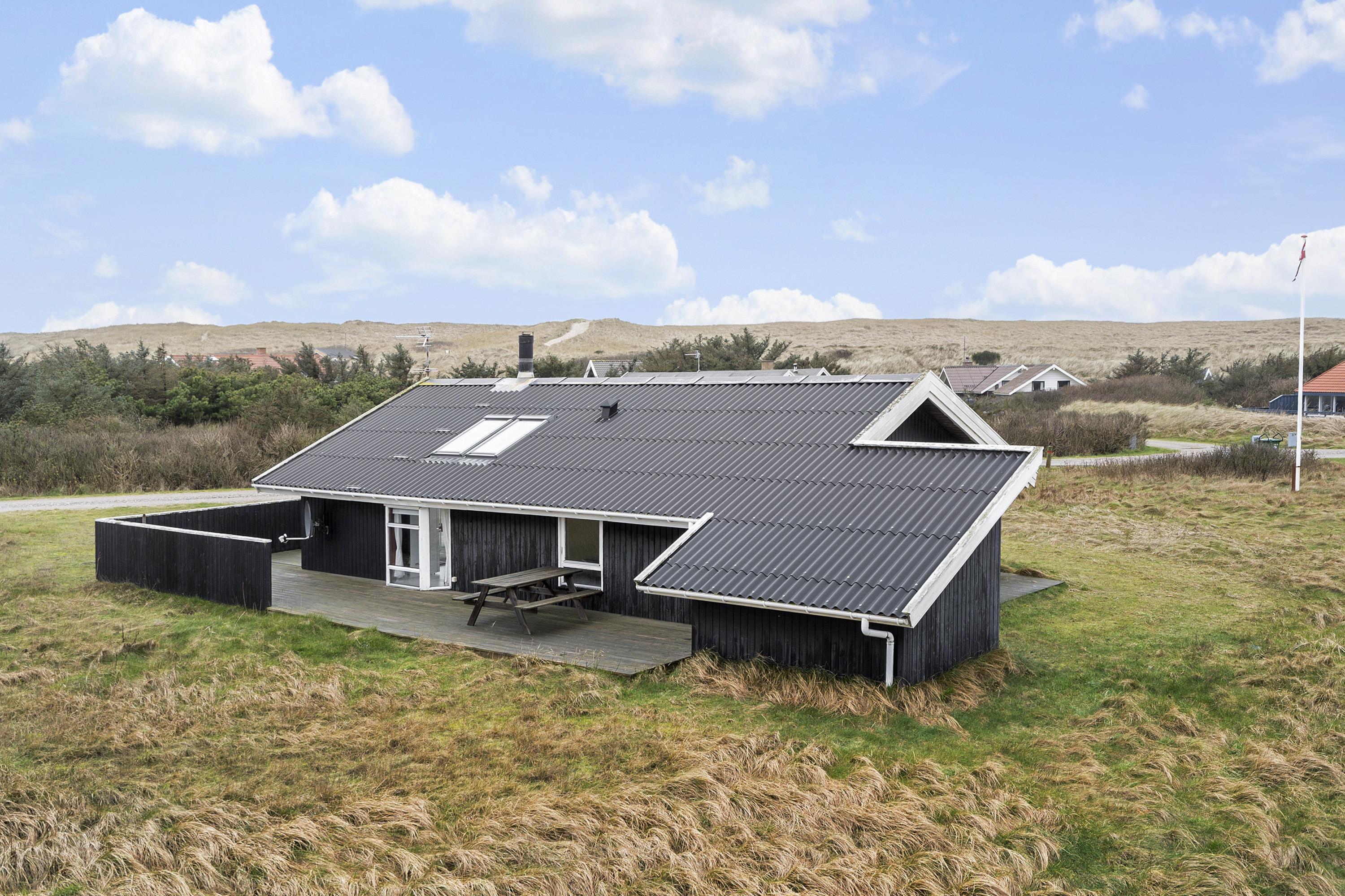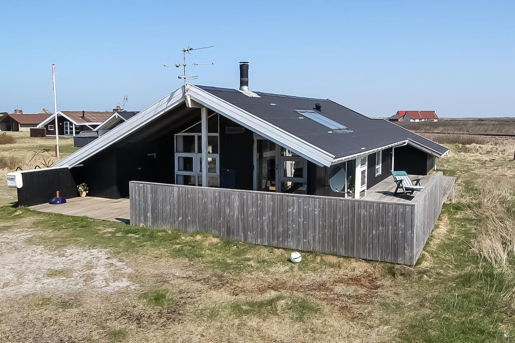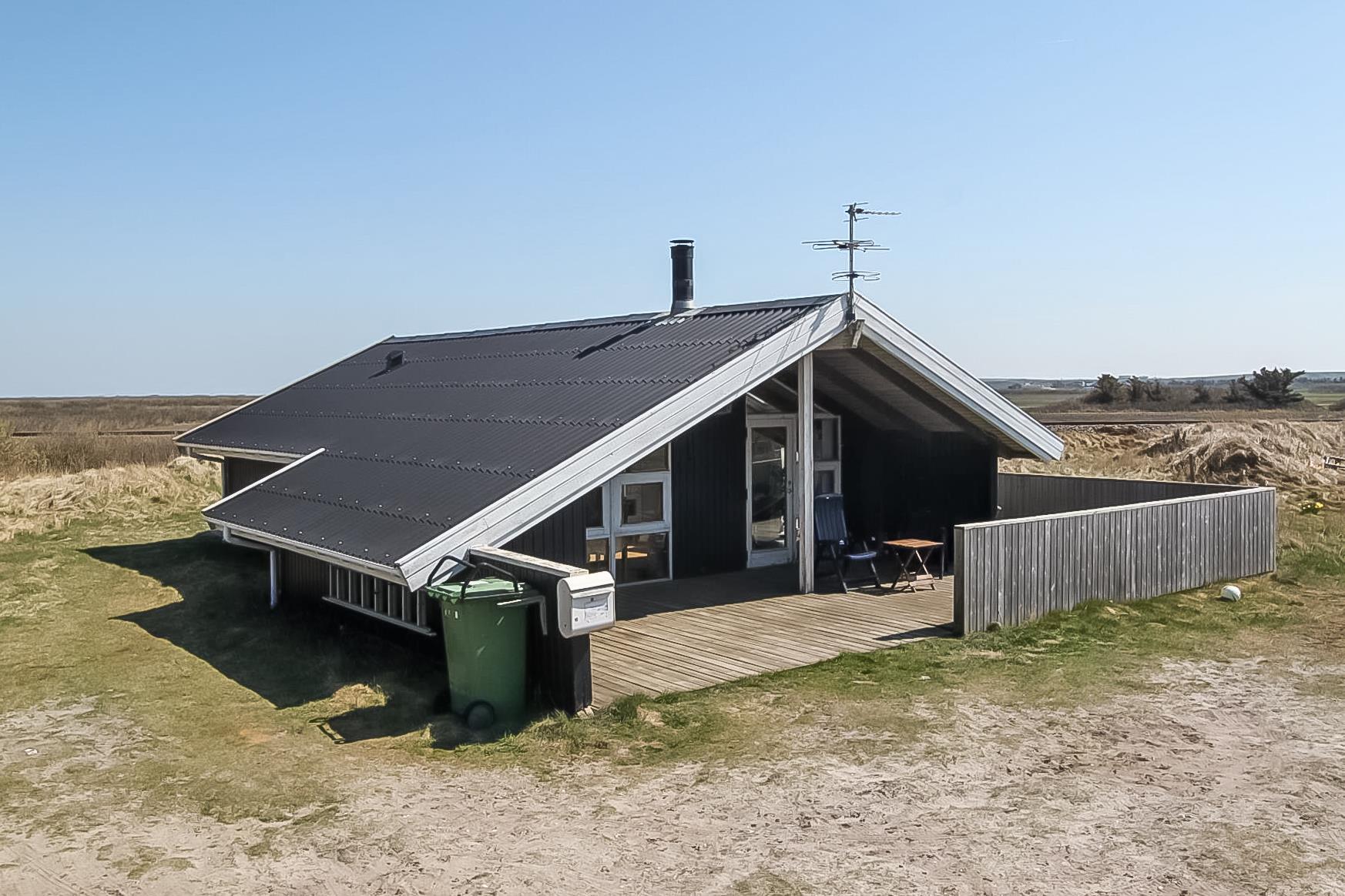 Husets overdækkede terrasse vender mod vest og der er direkte tilgang fra stuen. Dette gør det nemt at spise udenfor i havemøblerne, da man derved kan bringe forsyninger ud direkte fra stue og køkkenrummet. Det er også meget praktisk i mange andre henseender. På terrassen er der også en grill som standardudstyr. Fra huset er der ikke langt til klitterne og på den anden side venter en bred strand og Vesterhavet med mange muligheder. Her kan man bade, sole sig, vandre, samle rav, lystfiske eller flyve med drage. Det er altid en god start eller slutning på dagen at trave en tur over klitten og nyde synet. Der er omkring 1500 meter til nærmeste købmand, som kun har åbent i sommerhalvåret eller skal man begive sig de 4 km til Harboøre hvor der både er Aldi og Brugsen, som forøvrigt har åbent alle dage året rundt. Dette hus har et godt udgangspunkt til at udforske området fra hvadenten man gør det fra fods eller fra bil. Tag eventuelt med den Danmarksberømte jernbane VLTJ, som har et trinbræt 1000 meter fra huset ved Viktoria Street station. Ikke rygerhus