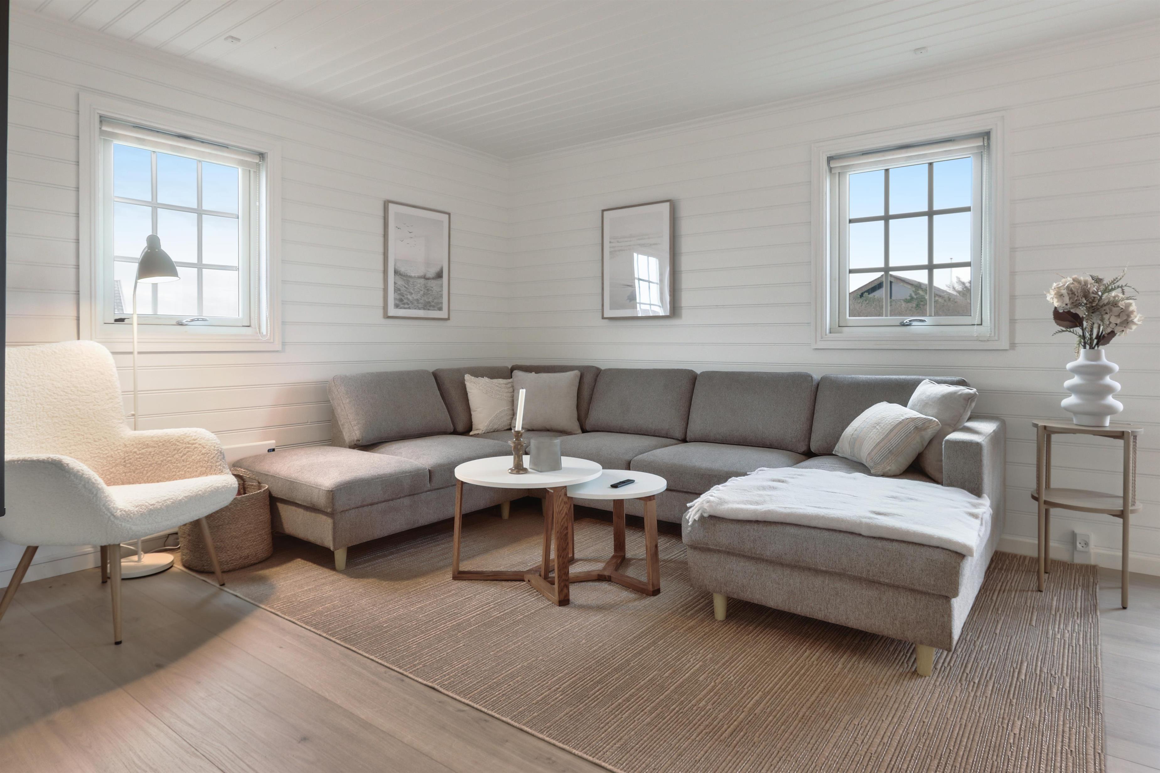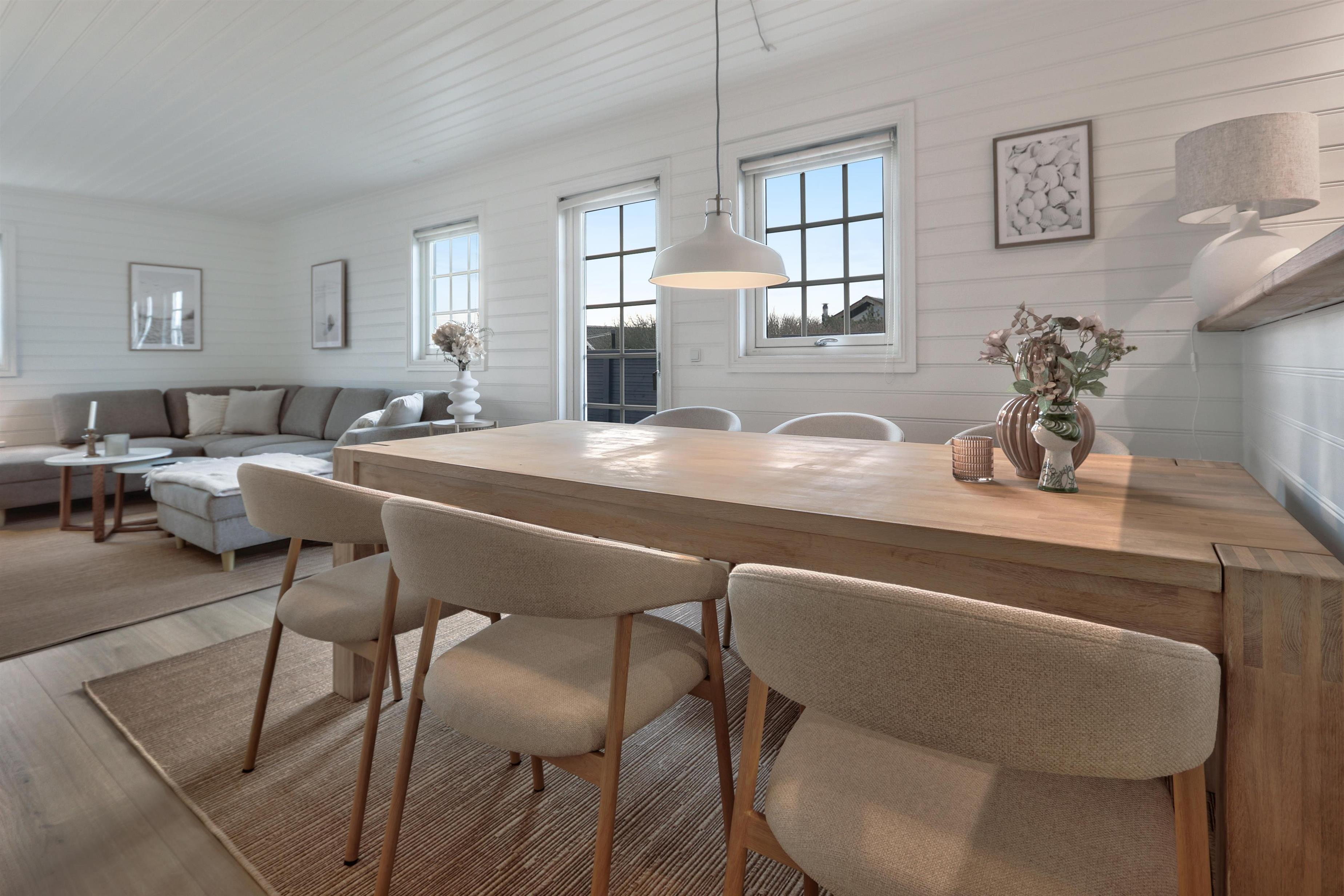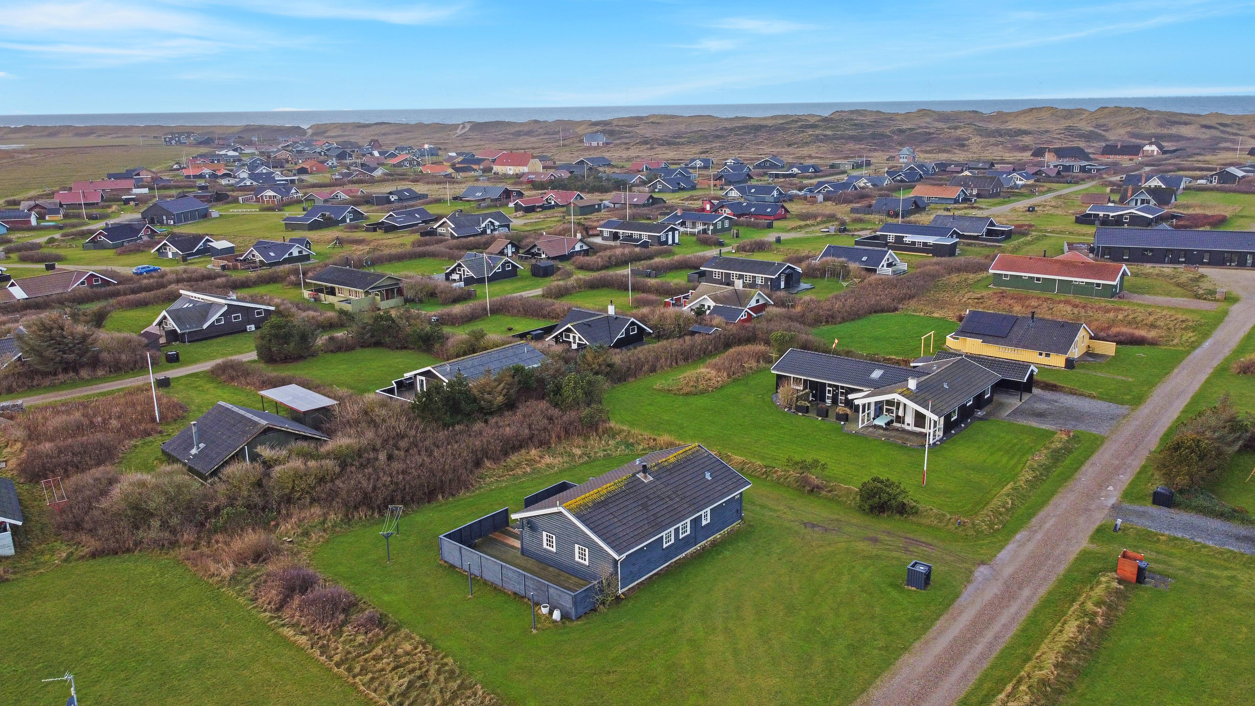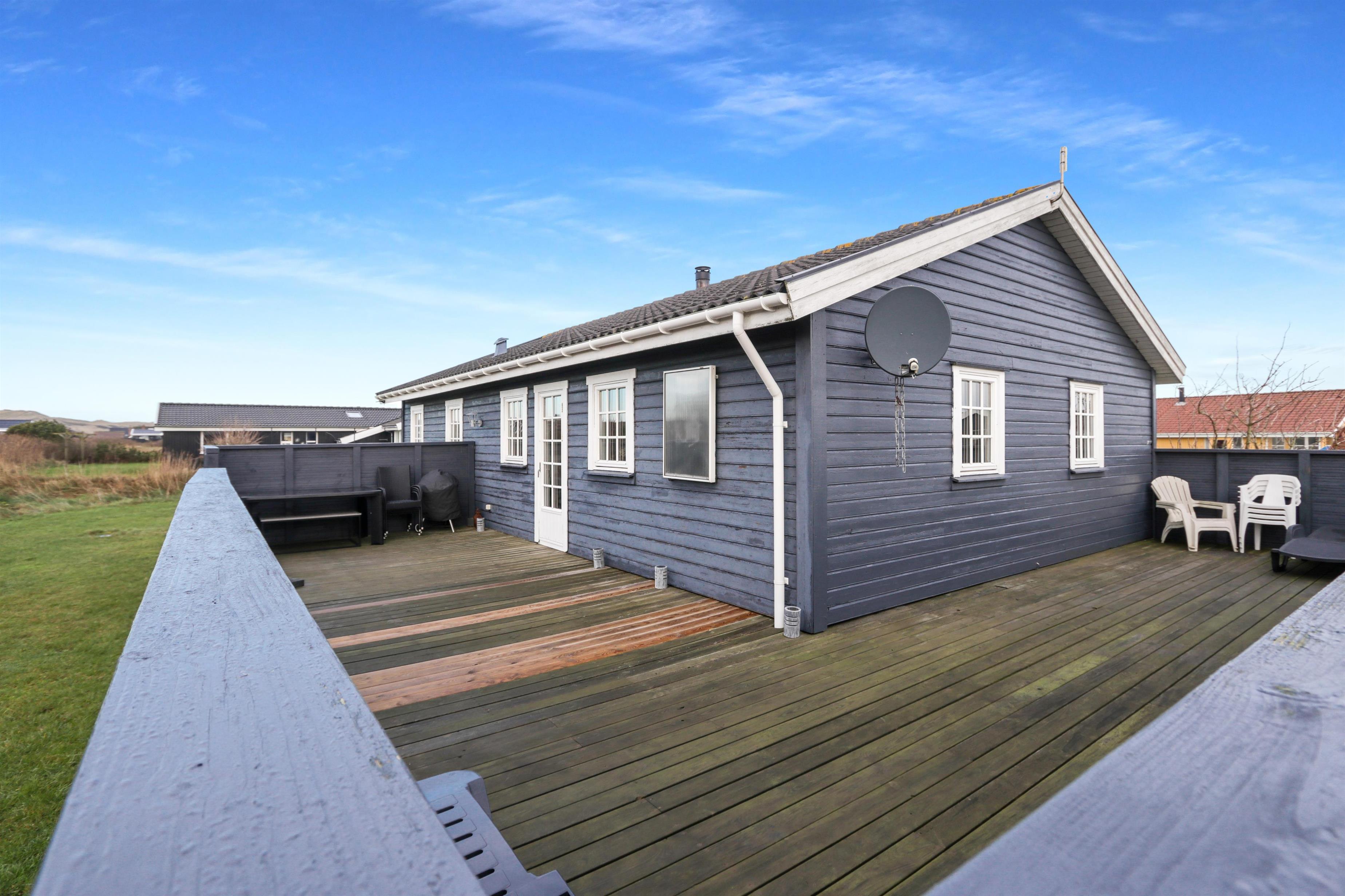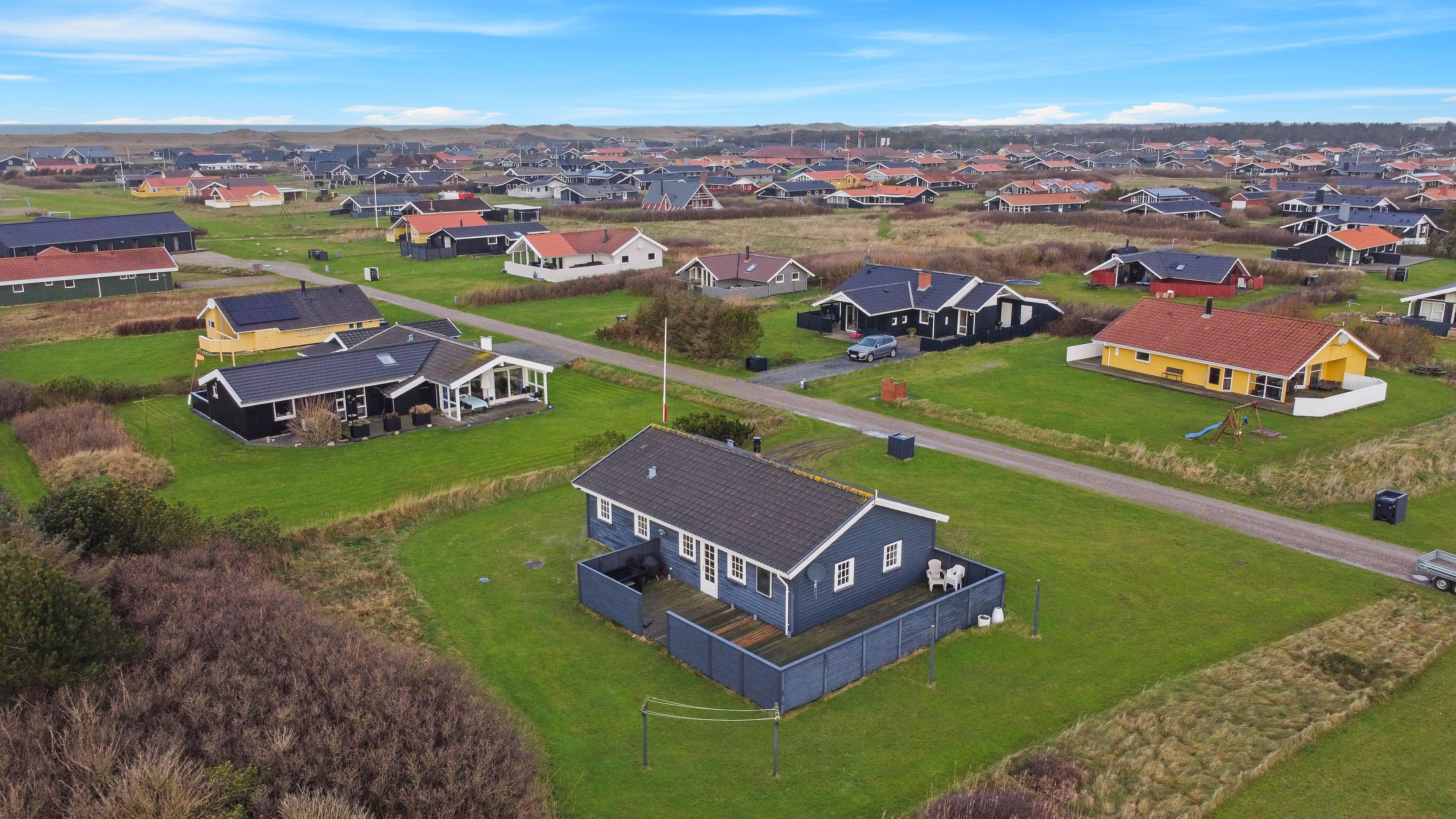 Huset ligger på en 900 m2 naturgrund, med kun 400 m til Vesterhavet. Der er en dejlig terrasse med havemøbler og solvogne som kan stilles efter behov så man altid kan finde et sted i læ eller i solen. Huset er også beliggende tæt på Ferring Sø som har en vandresti omkring hele søen, så man kan nyde naturen omkring hele søen. Stranden ved Vesterhavet ligger i gåafstand fra huset og her indbydes der til forskellige aktiviteter hver dag bl.a. badning, flyve med drager samler sten eller rav eller blot slentre langs vandkanten og nyde havets brusen. Ønsker man lidt mere i ferien kan vi varmt anbefale en tur til fiskerbyen Thyborøn eller den gamle handelsby Lemvig. Begge byer byder på flere gode restauranter og butikker. Alt i alt et særdeles godt tilbud til en eller to familier, der ønsker at tilbringe ferien sammen i rolige omgivelser.