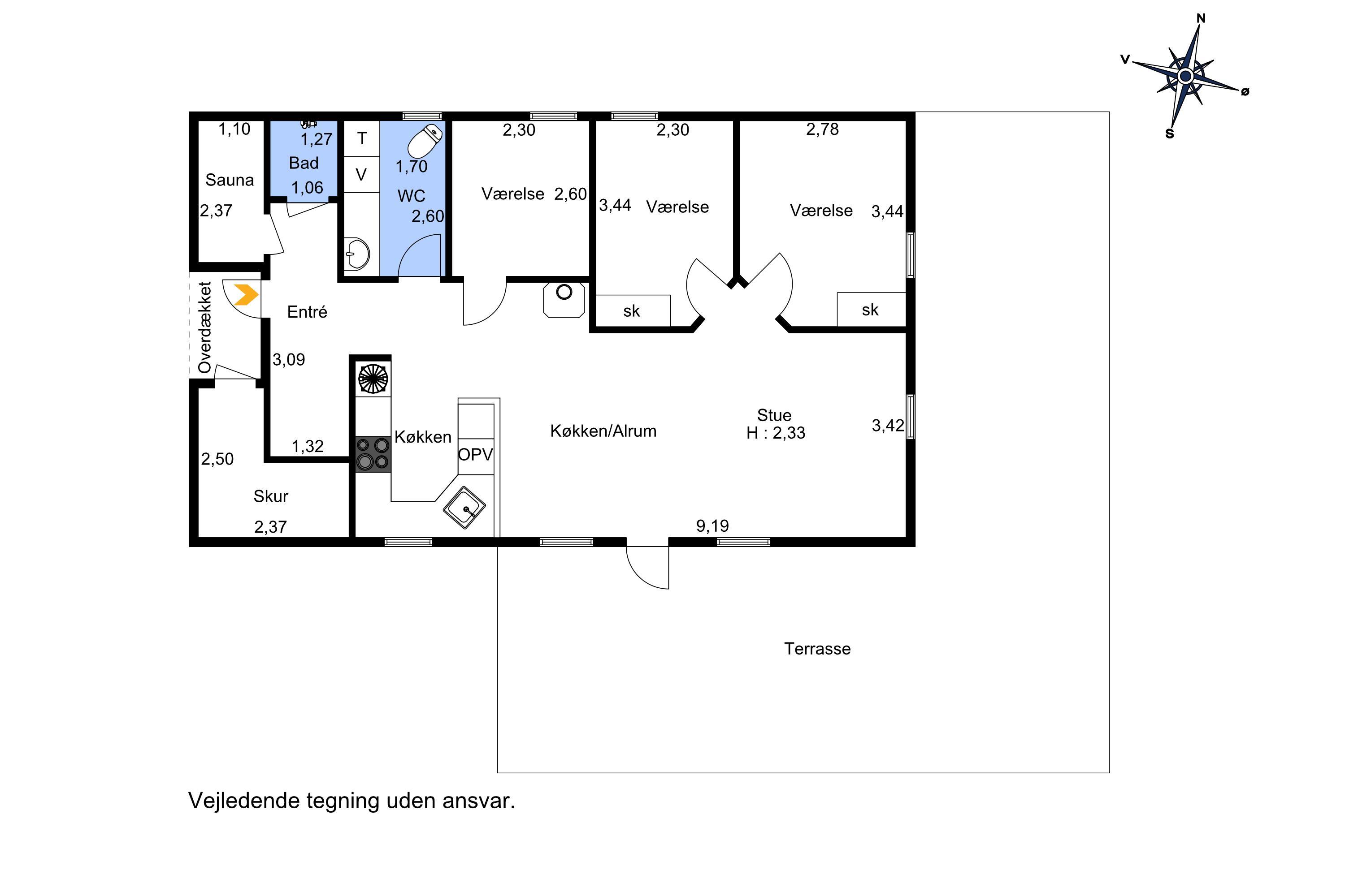 - 3 soveværelser