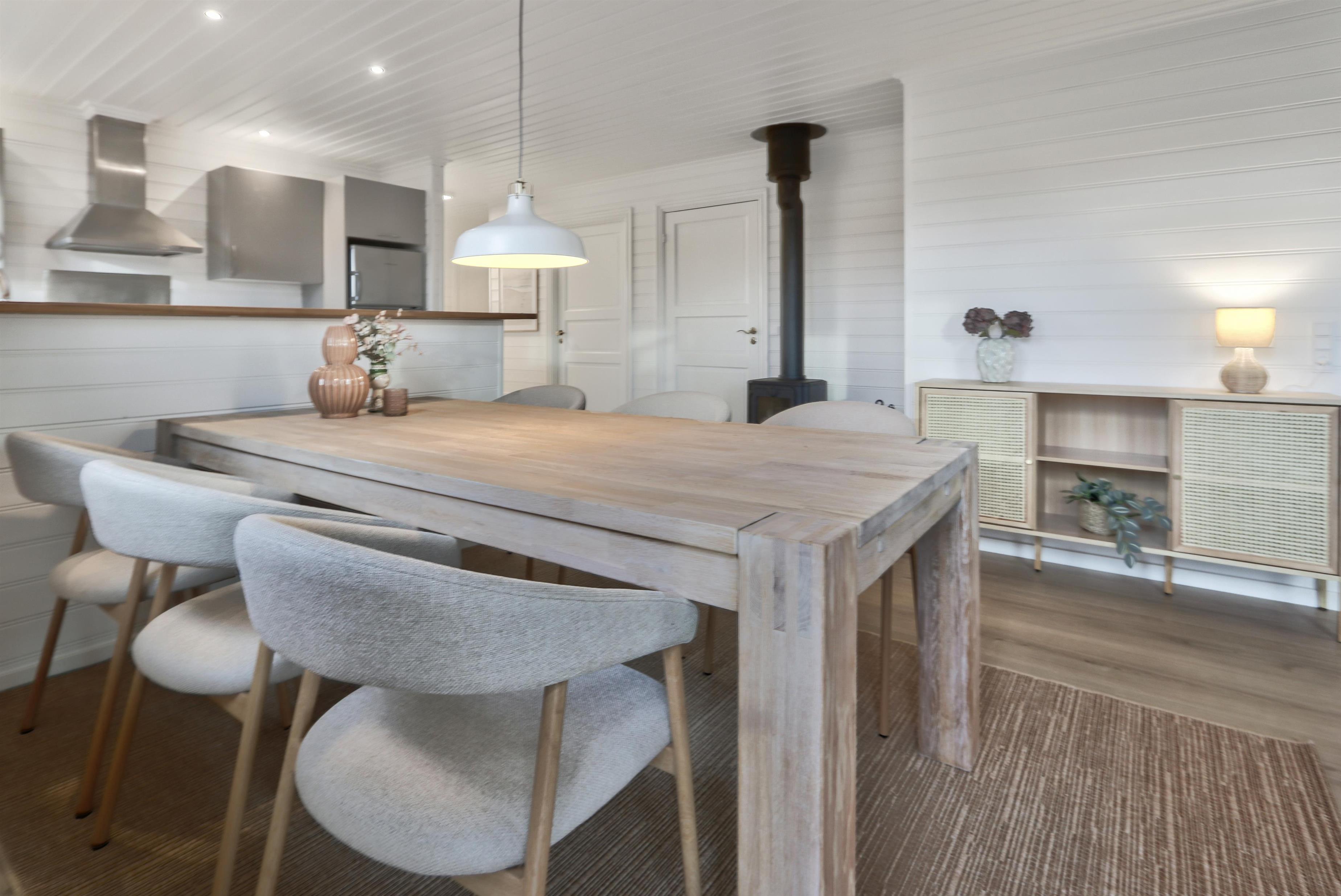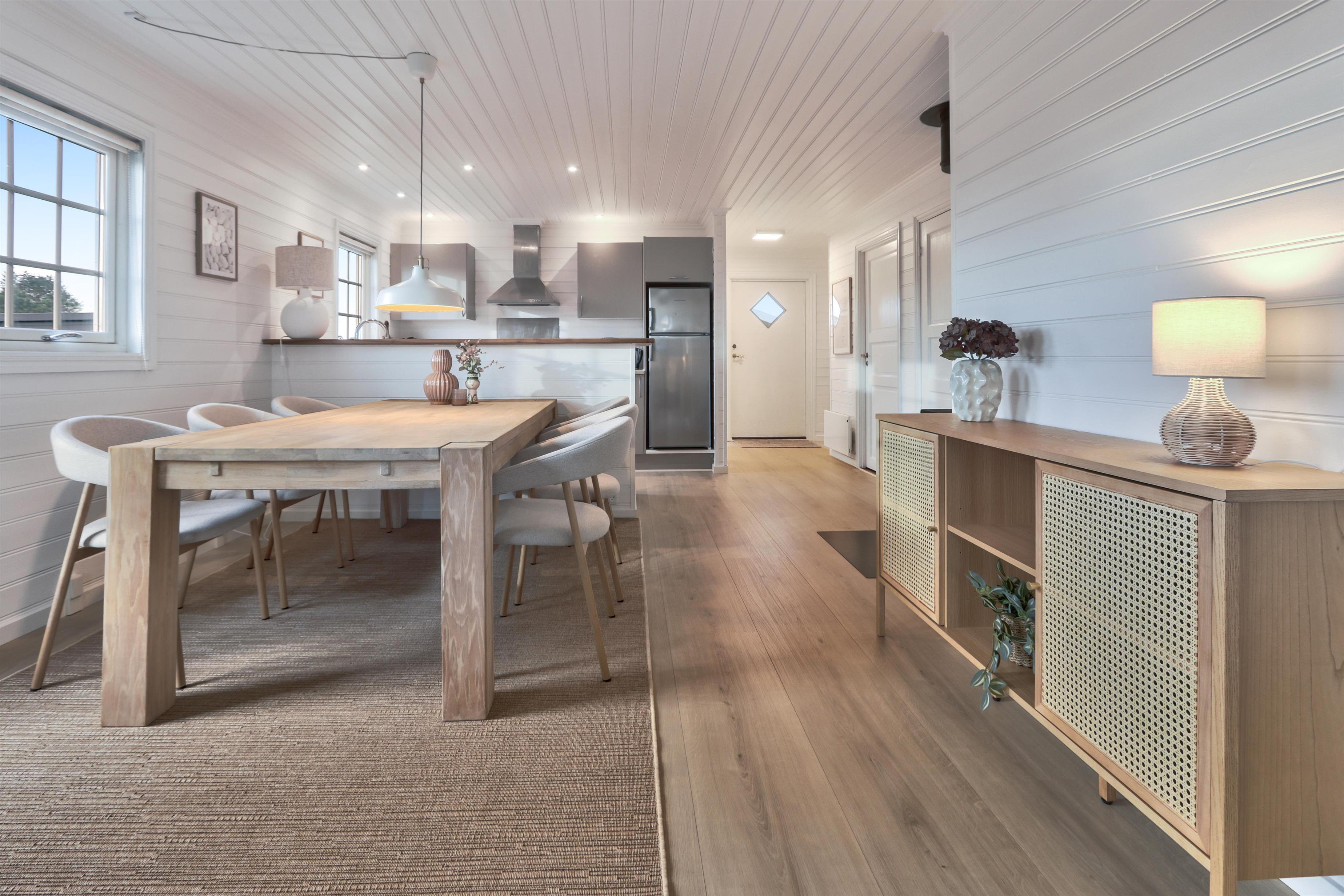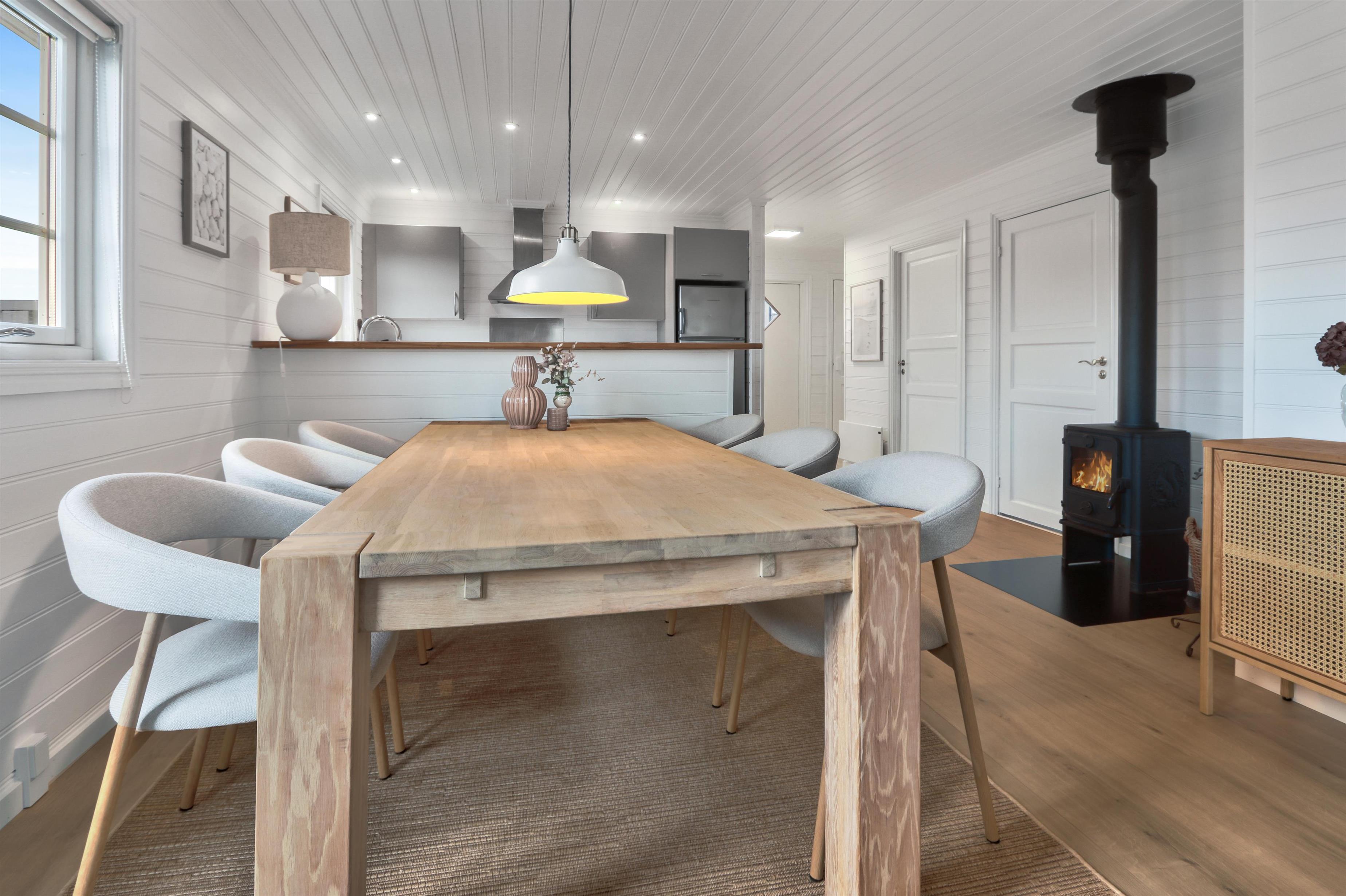 Dette dejlige feriehus i træ er bygget i 2003 og er personligt og smagfuldt indrettet delvis med klinkegulv og delvis vinylgulv. Stor hyggelig stue med brændeovn, kabel-TV, stereoanlæg med CD. Køkkenet er kombineret med stuen og er indrettet med el keramisk komfur, emhætte, mikroovn, køle-/fryserum samt opvaskemaskine. Meget lækkert badeværelse med toilet og håndvask samt vaskemaskine og tørretumbler. Der er et separat bruserum og egen indgang til husets sauna. Huset er indrettet med 3 soverum: 1DS + 1DS + 1DS. Der er trådløst internet. Ikke rygerhus. 1 husdyr (kun hund) er tilladt.