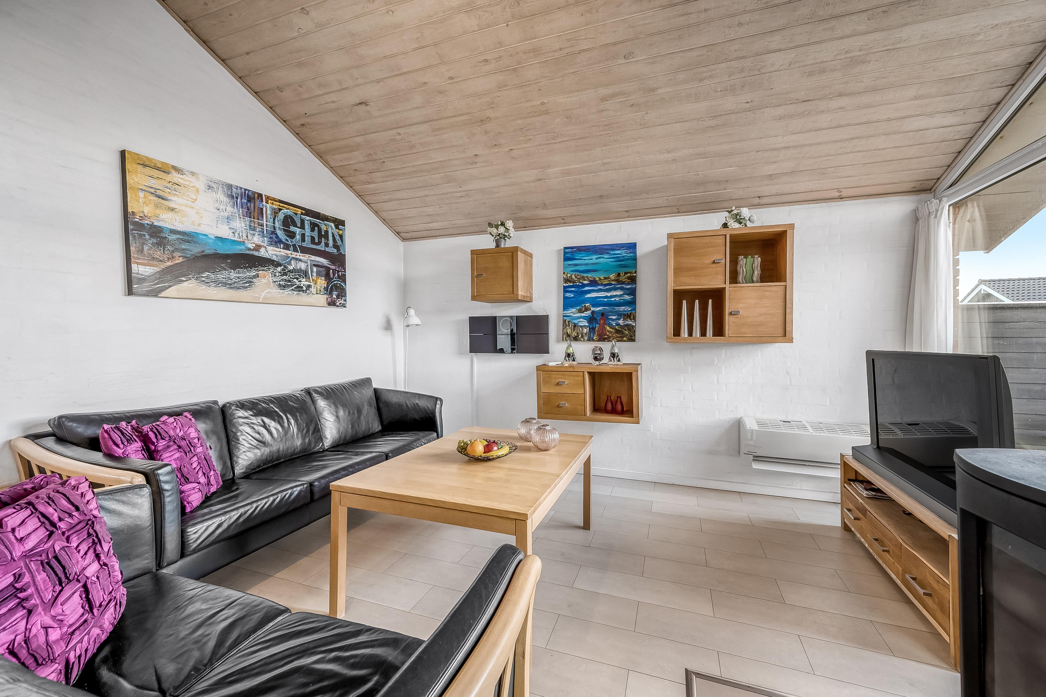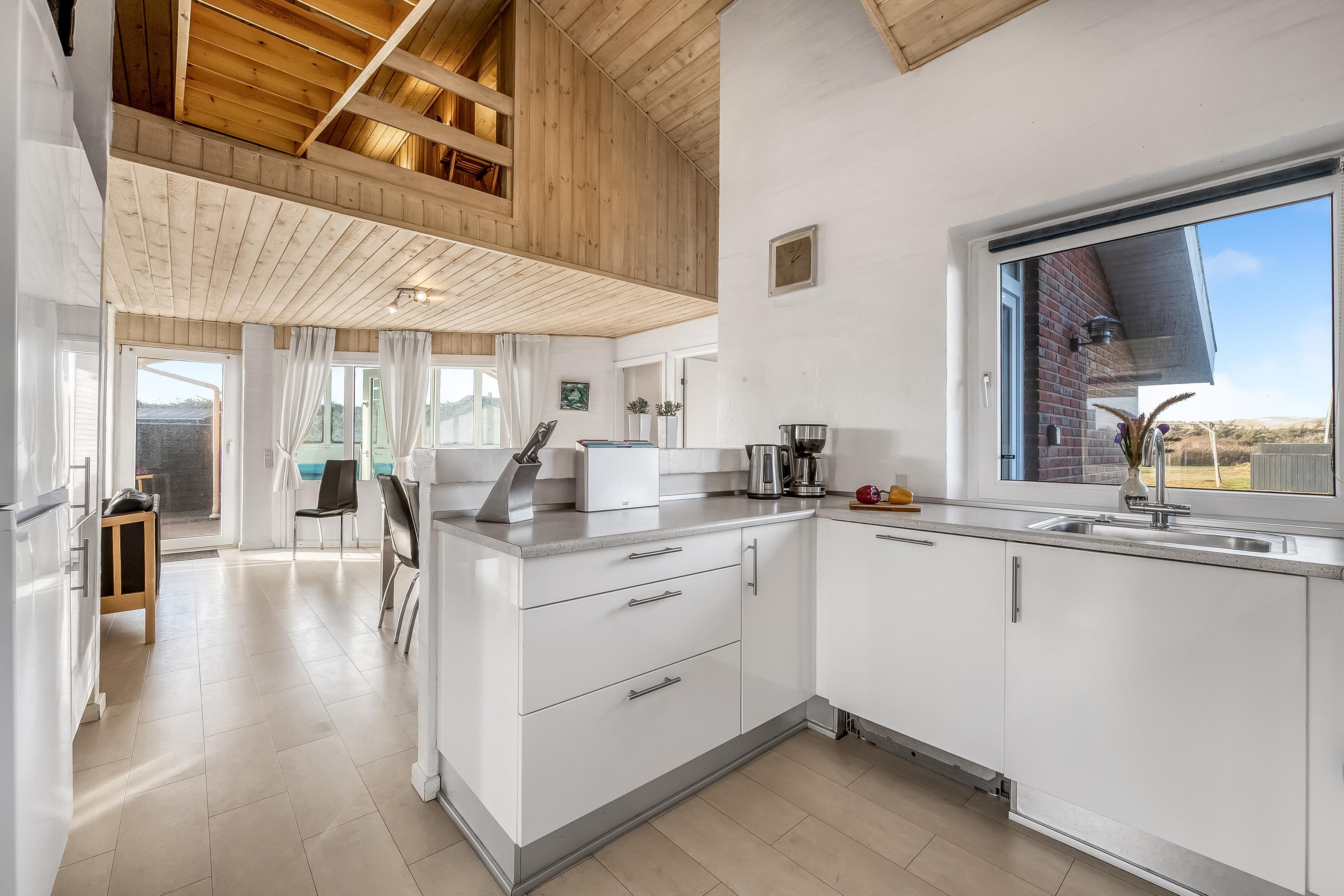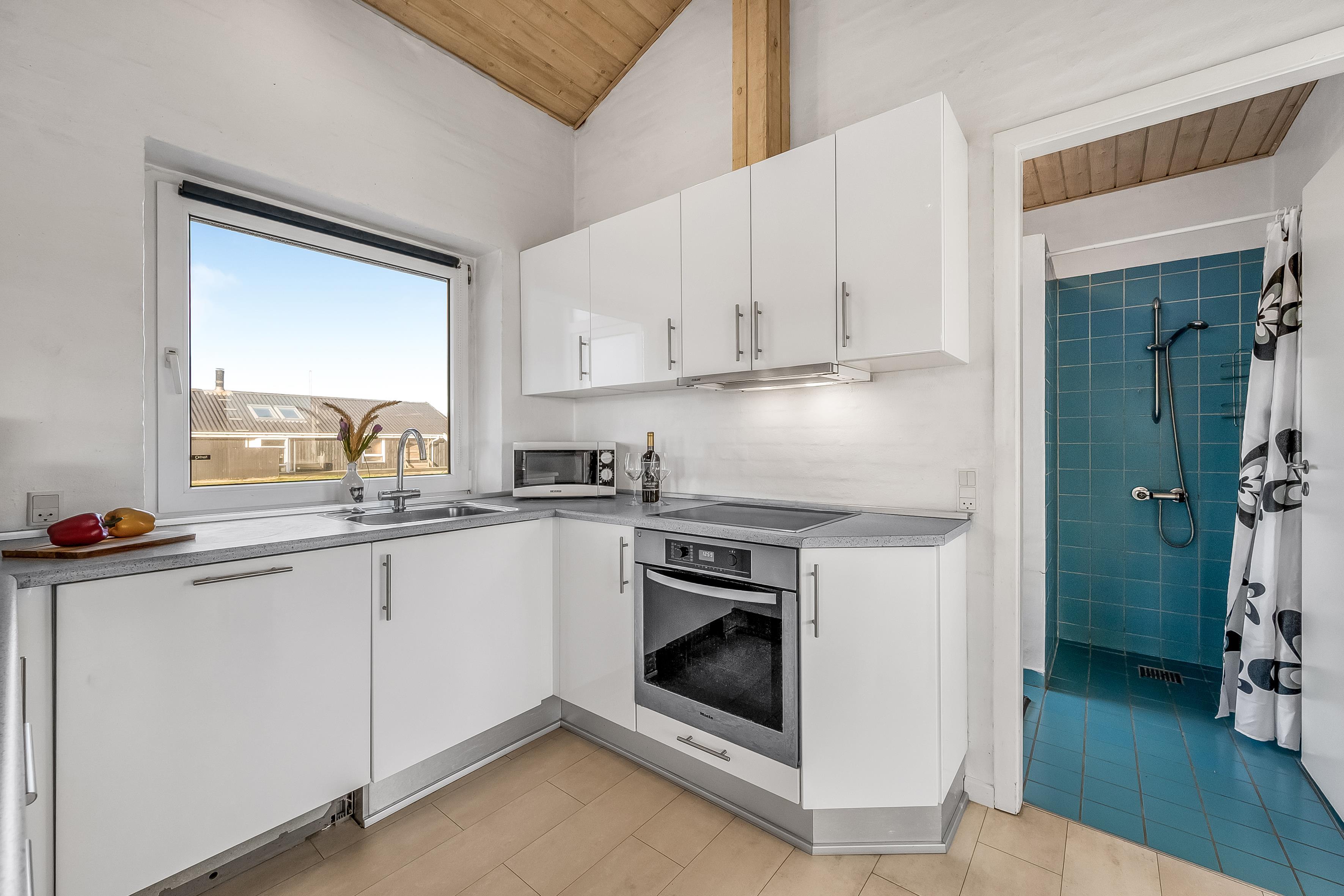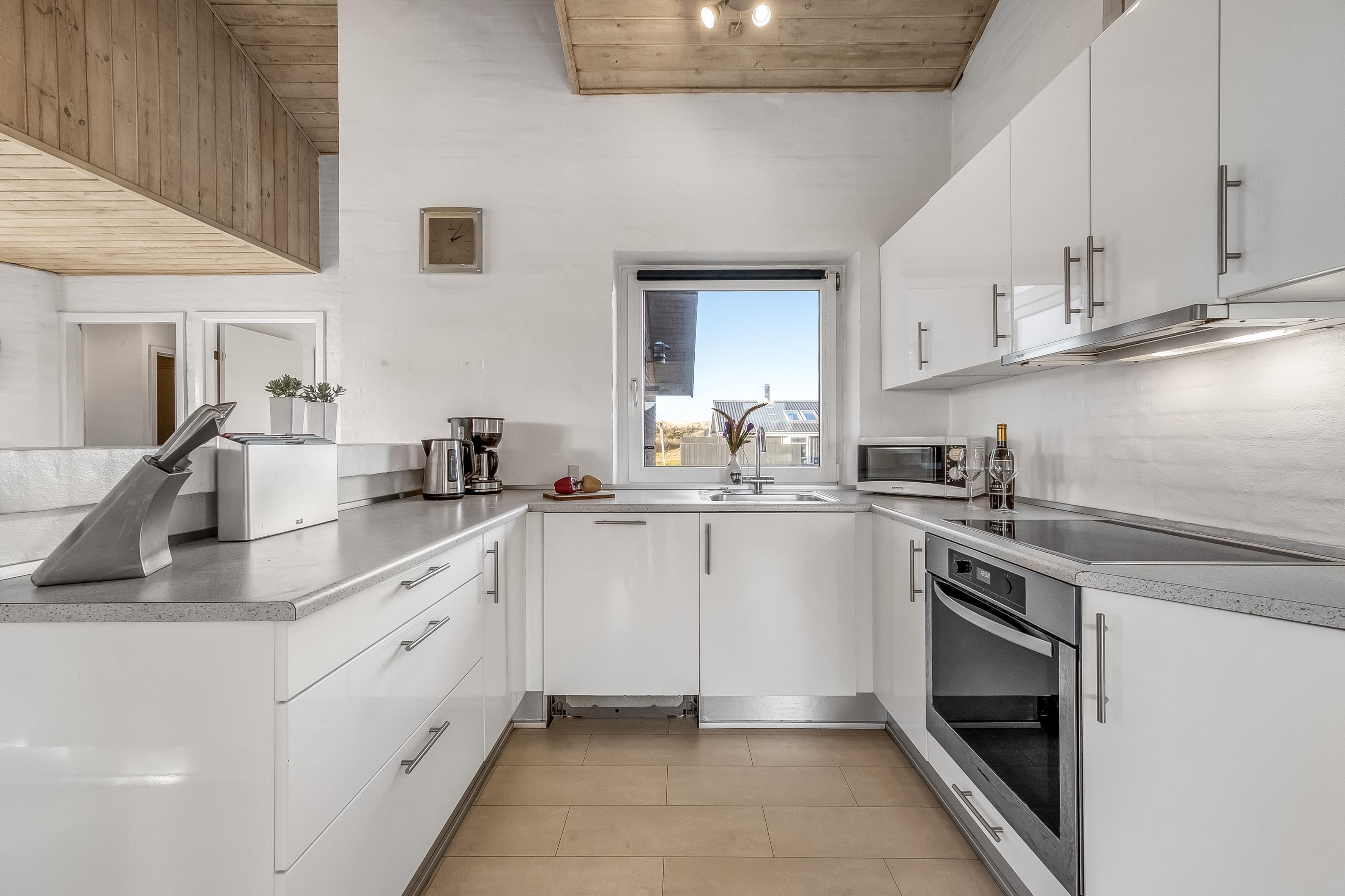Køkkenet er fuldt udstyret med moderne apparater, herunder mikrobølgeovn, ovn, keramisk komfur, opvaskemaskine, vaskemaskine og tørretumbler. Der er også et køleskab med fryser på 60 liter, så du kan opbevare alle dine madvarer og drikkevarer. Underholdning er også i fokus med et fjernsyn, der tilbyder både dansk og tysk TV, samt trådløst internet, så du kan holde forbindelsen med omverdenen.