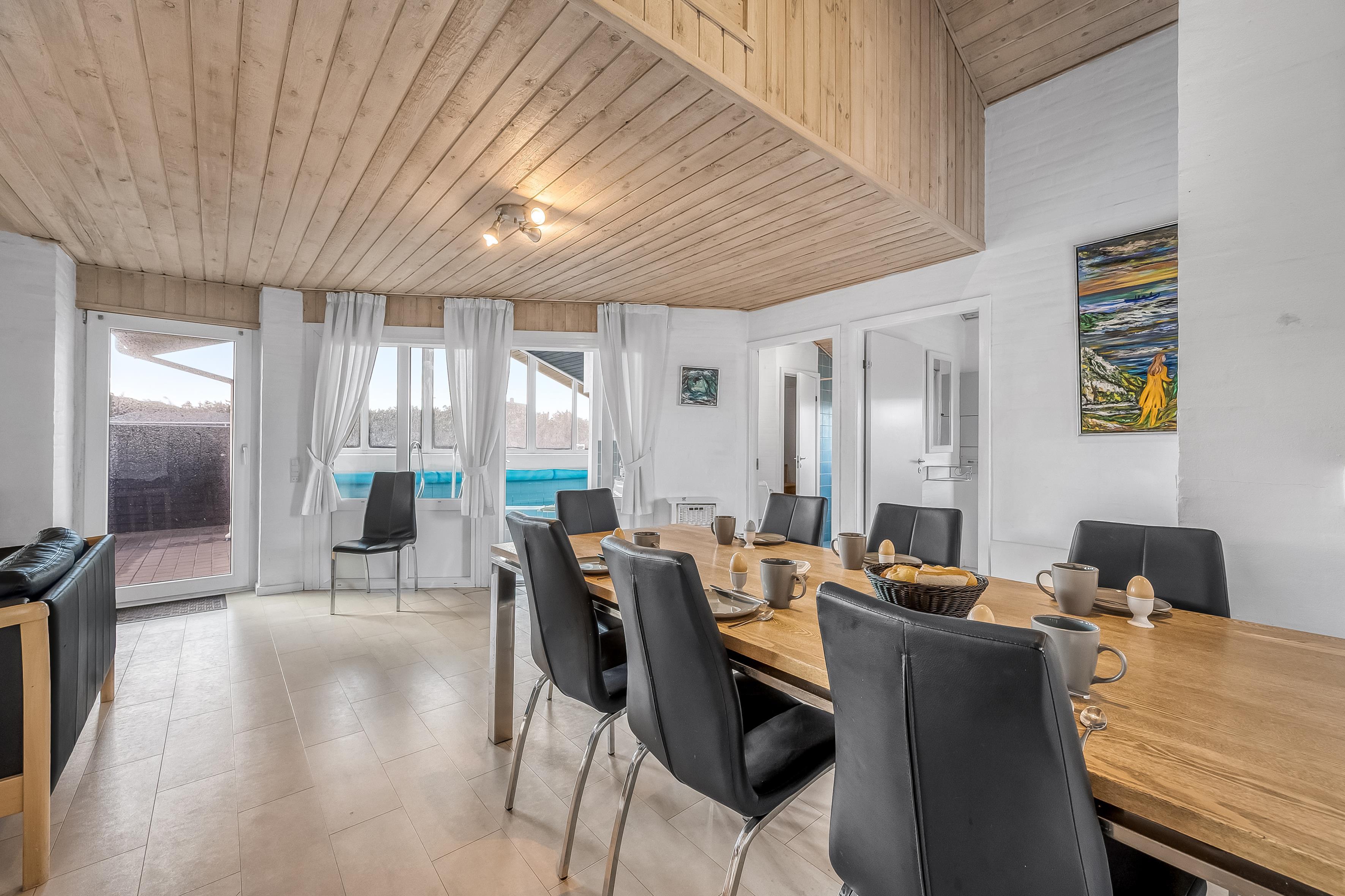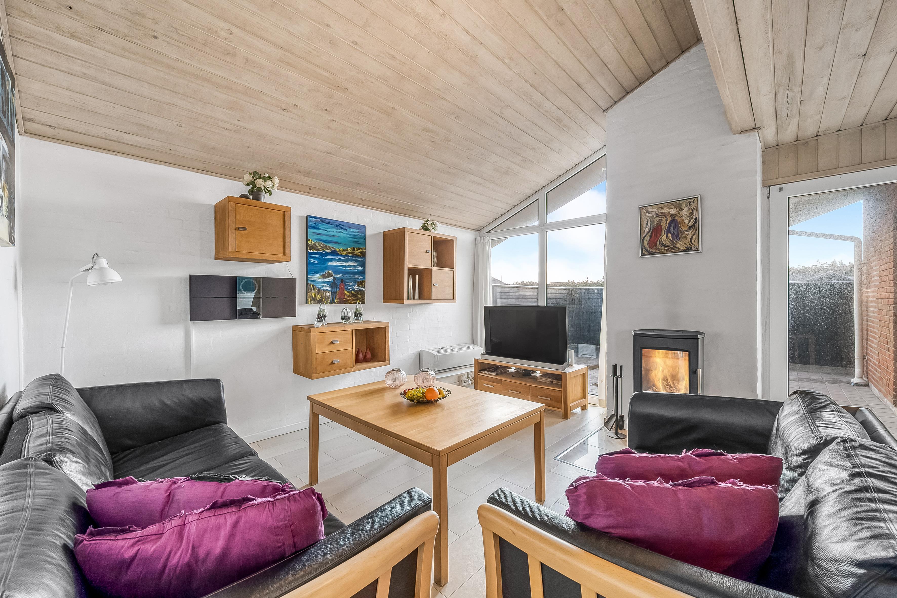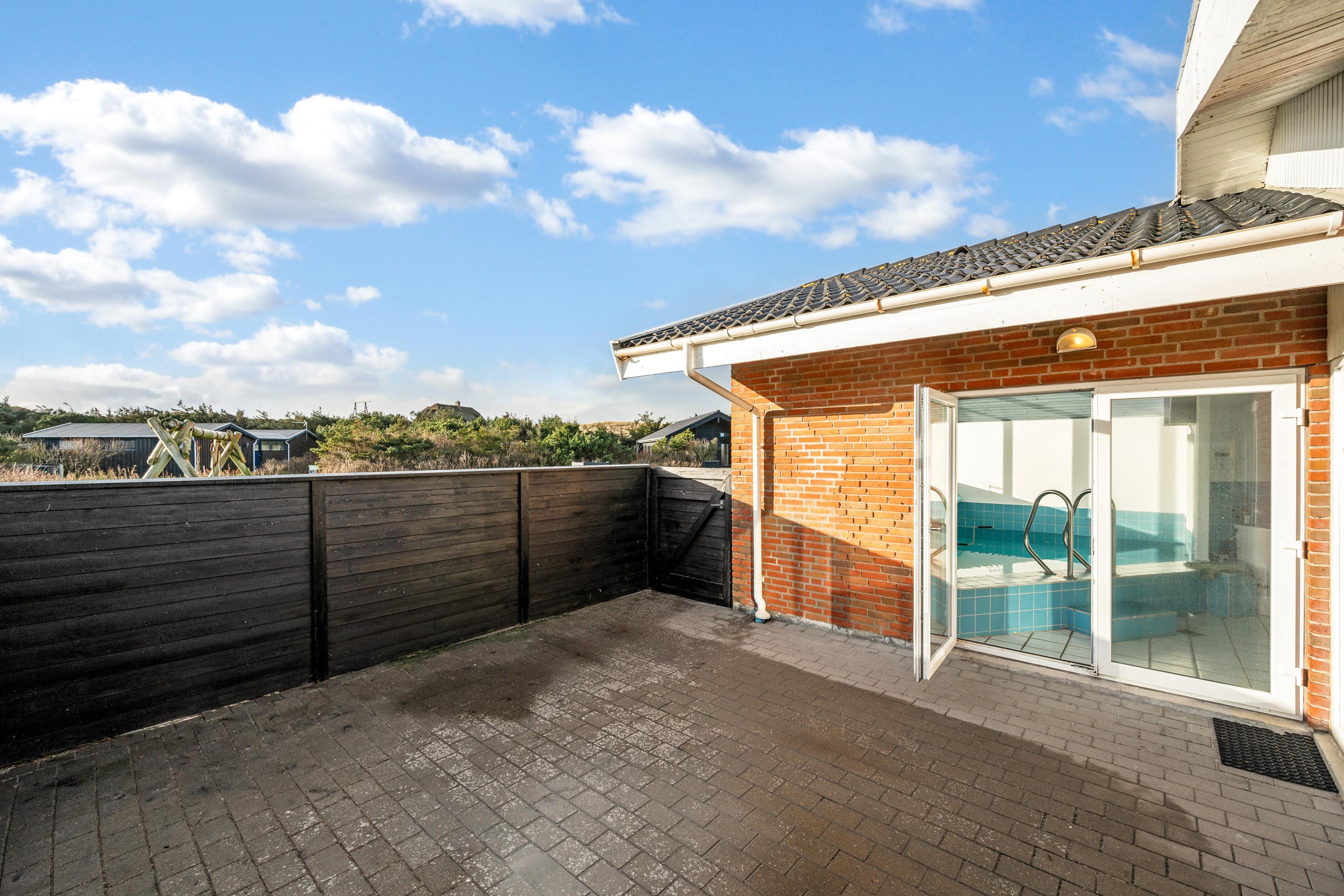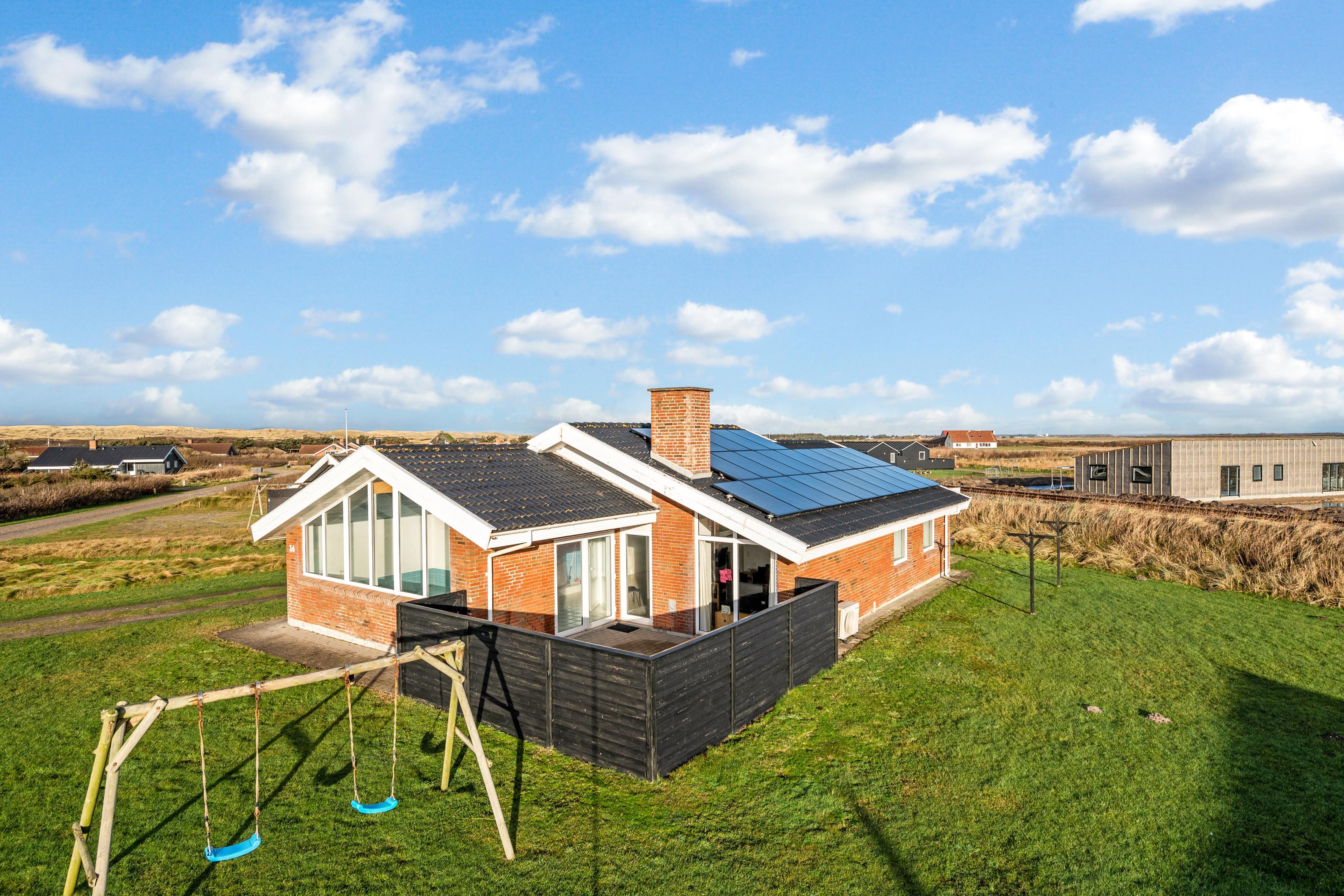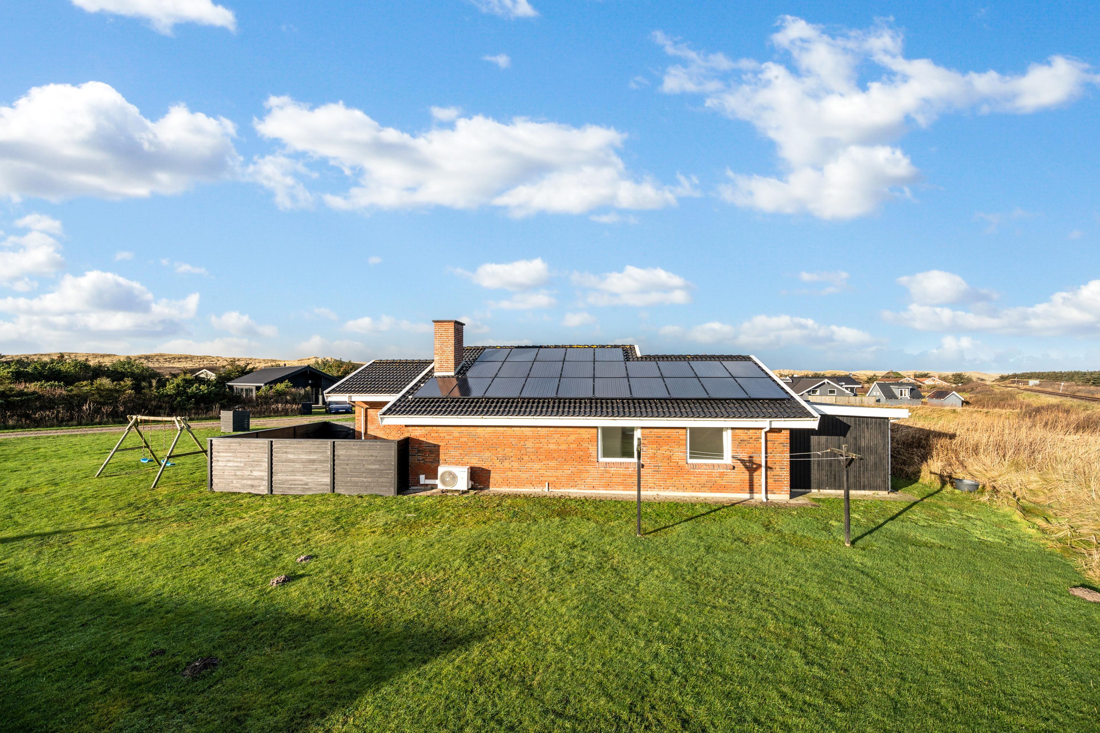 For dem, der elsker at underholde, er der en lukket terrasse, hvor du kan nyde måltider udendørs, samt en grill til at tilberede lækre retter. Børnene vil elske gyngerne på grunden, mens du kan tage en dukkert i den private pool - en fantastisk tilføjelse til din ferieoplevelse. Huset har også en brændeovn, elvarme og varmepumpe, der sikrer et behageligt indeklima året rundt.