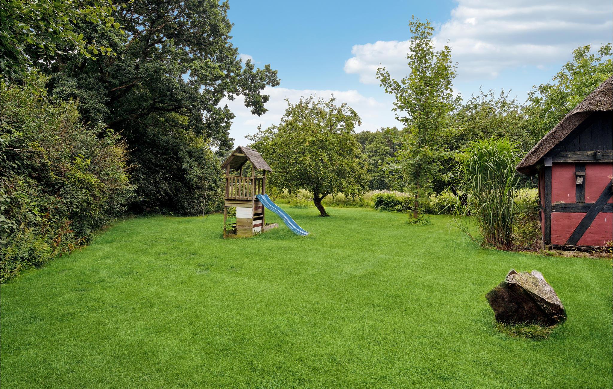 Glæd jer til en afslappende ferie på landet. Her kommer skuldrene ned! I husets hyggelige rum på to etager kommer I ikke til at mangle noget. Her er der plads til fælles madlavning med et glas vin til, til et væld af sjove aktiviteter, til at læse en god bog nær den hyggespredende brændeovn og til at lave ingenting. I sætter tempoet. Den store, spændende naturgrund er et paradis for både store og små. Her kan børnene lege i legetårnet, lege gemmeleg og spille fodbold. Haven er også helt perfekt til solbadning og en løbekonkurrence for hele familien. Harmoni og balance. Det finder I her.