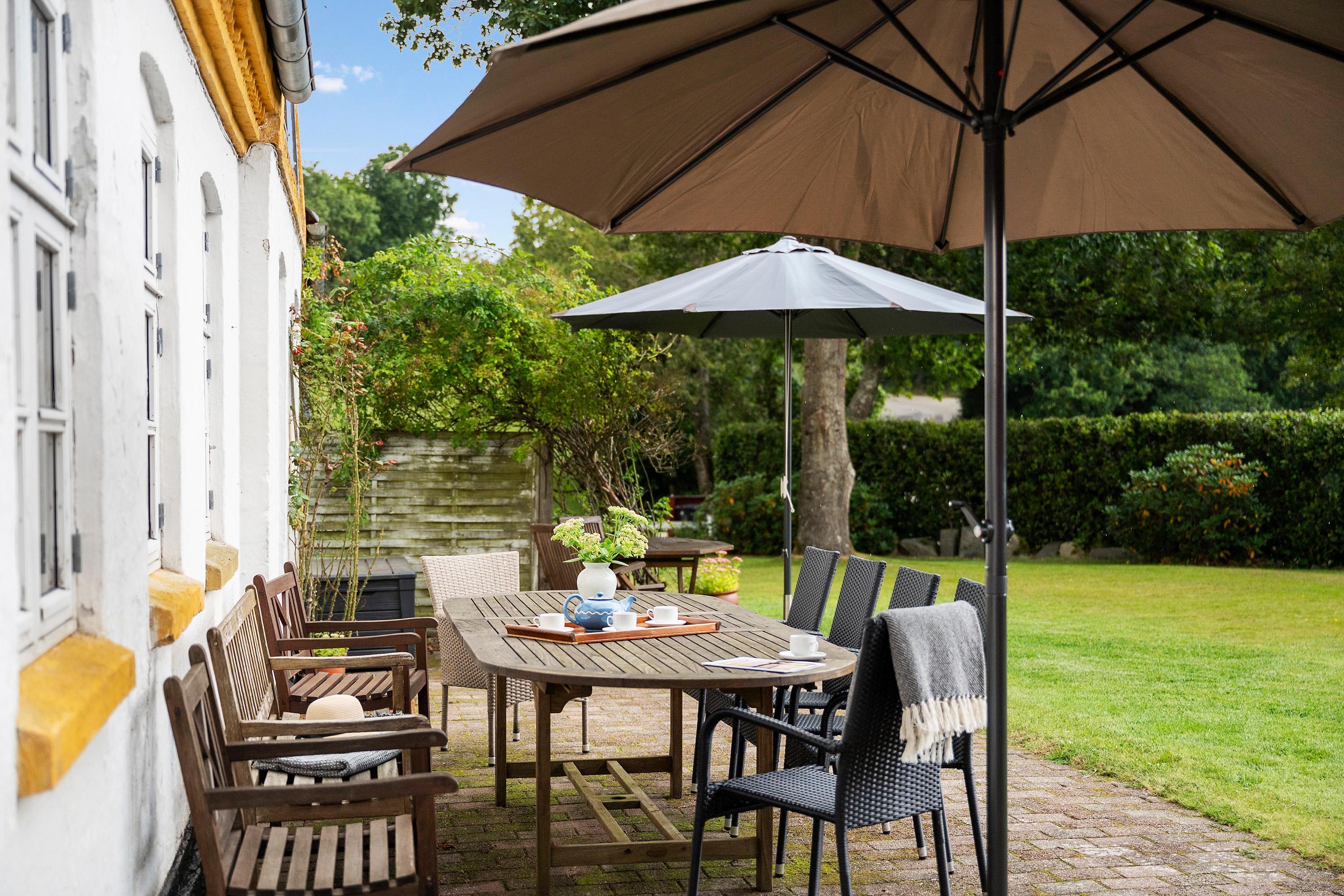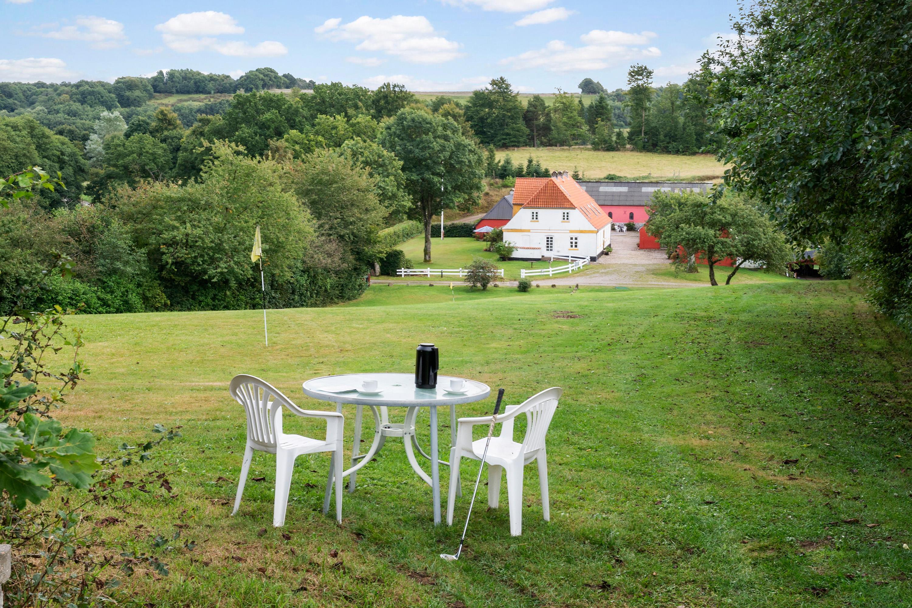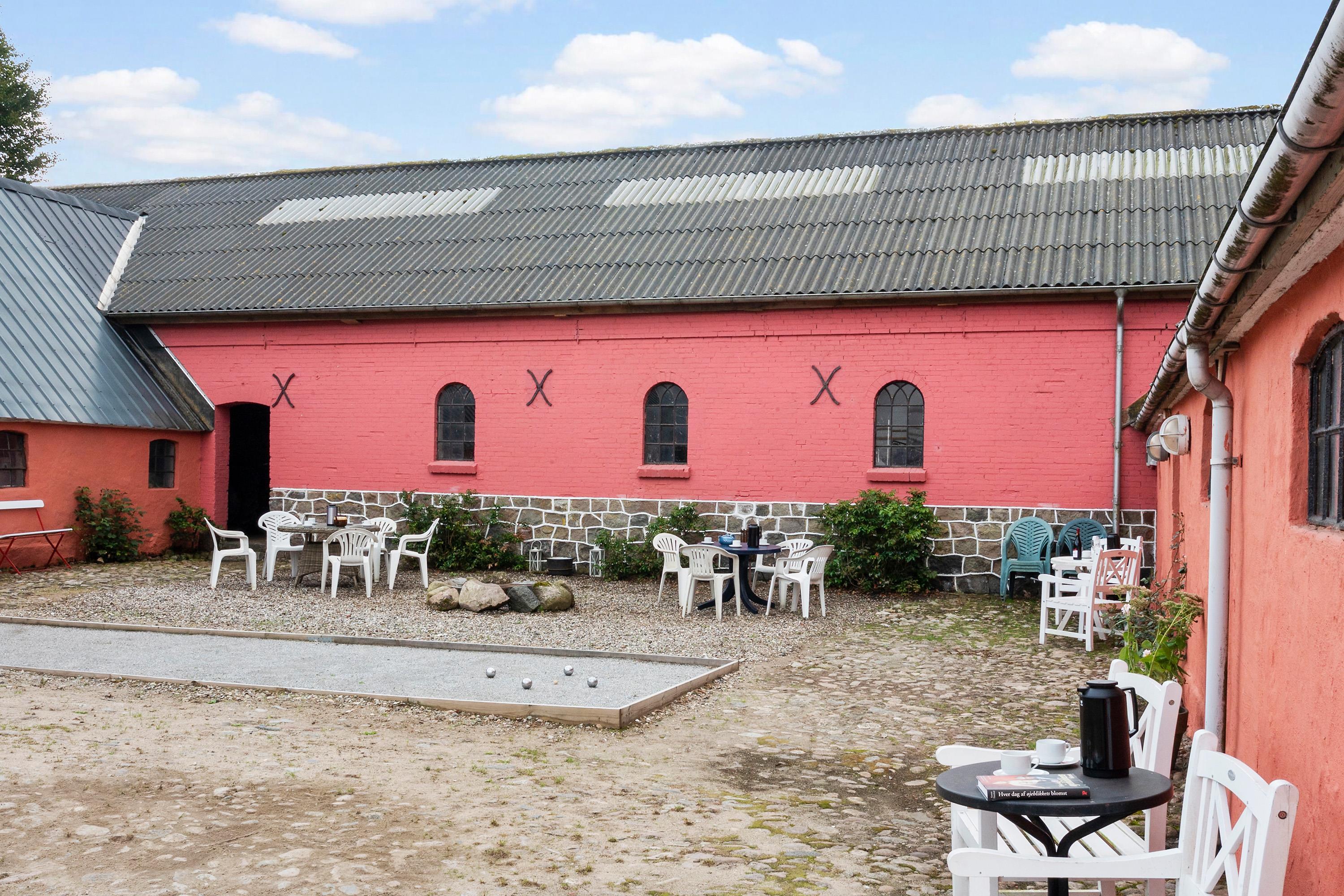 - Her kan I samles om festmåltider, spille spil, tage en runde petanque eller blot nyde udsigten og roen fra haven.