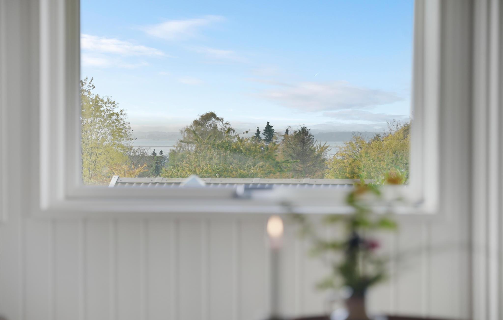 Dejligt sommerhus med træterrasser og smuk havudsigt nær fjorden i Skibby.