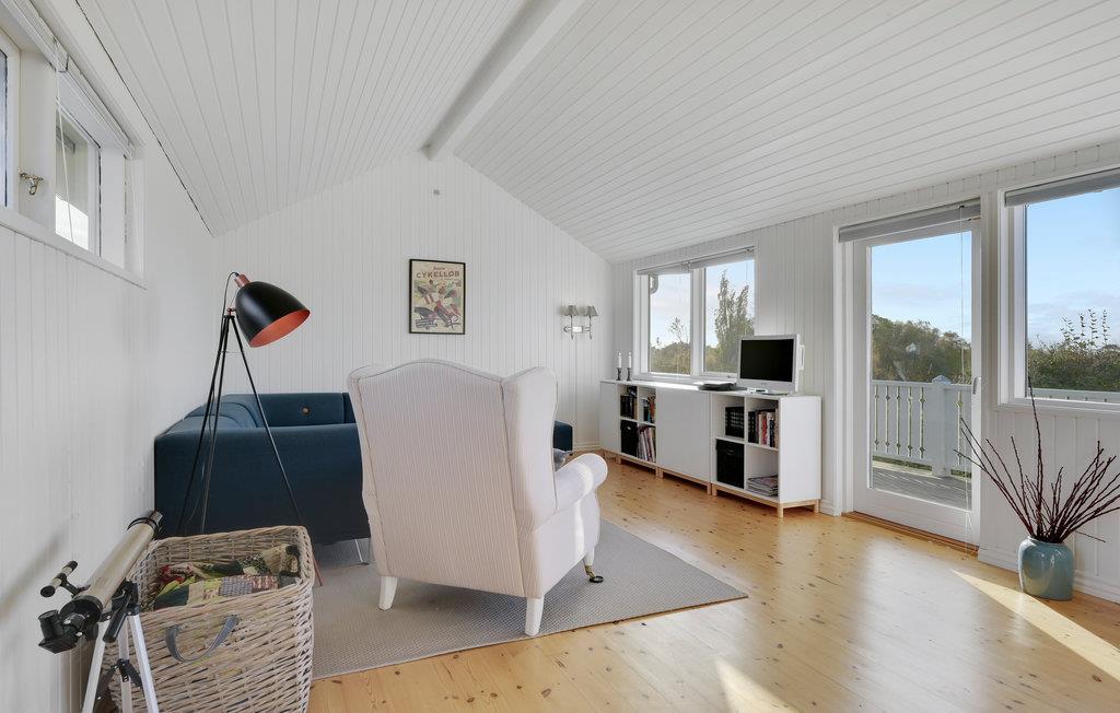 Glæd jer til at holde ferie i dette fine hus, med lyse rum og moderne indretning i flere plan. Spisestuen ligger i forlængelse af køkkenet og indbyder til mange hyggelige stunder med familien. Herfra er der et par trin ned til opholdsstuen, med brændeovn, lænestole og en blød sofa hvorfra I kan nyde udsigten over det smukke landskab.