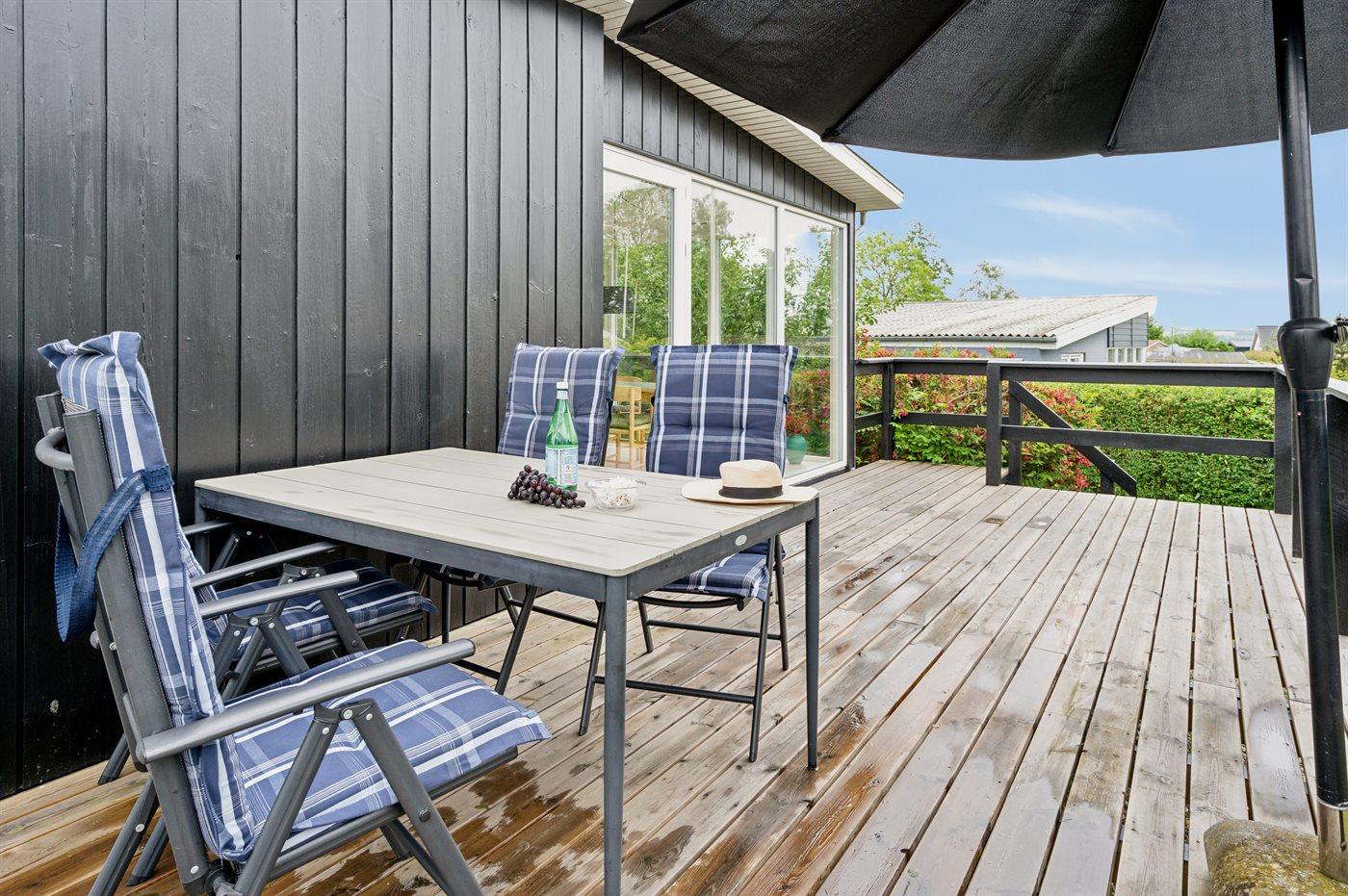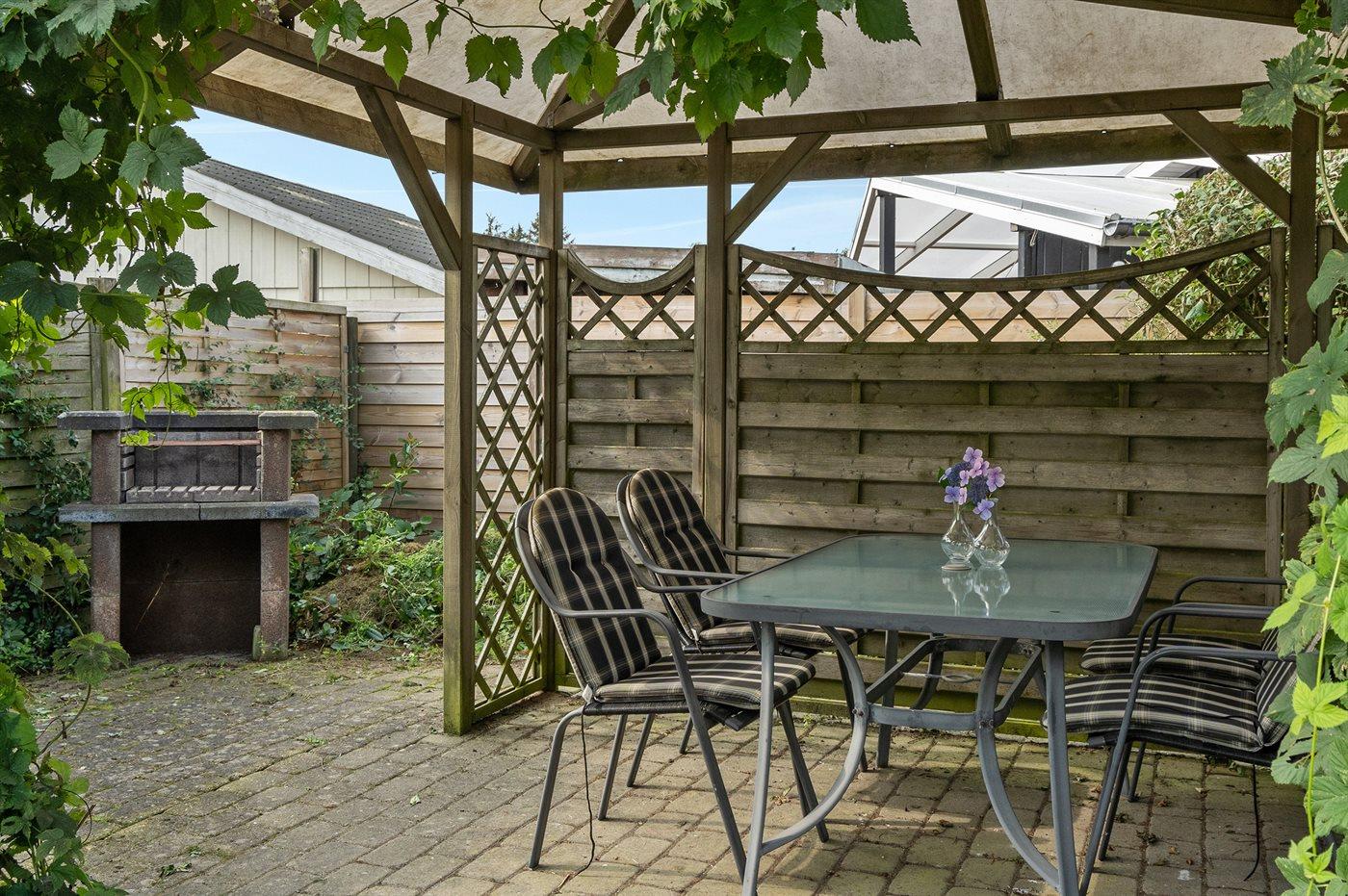 Ferieboligen er beliggende på en 700 m² stor havegrund. Grunden er indhegnet. Der er 250 m til havet. Nærmeste forretning er beliggende i en afstand af 2000 m. Til ferieboligen hører 30 m² terrasseareal. Ligeledes er der adgang til udestue. Grill til rådighed. Parkering ved ferieboligen.