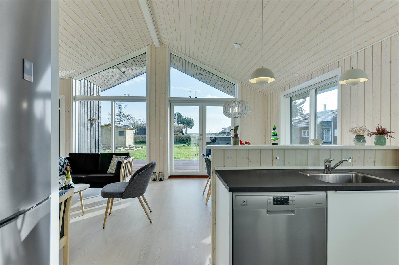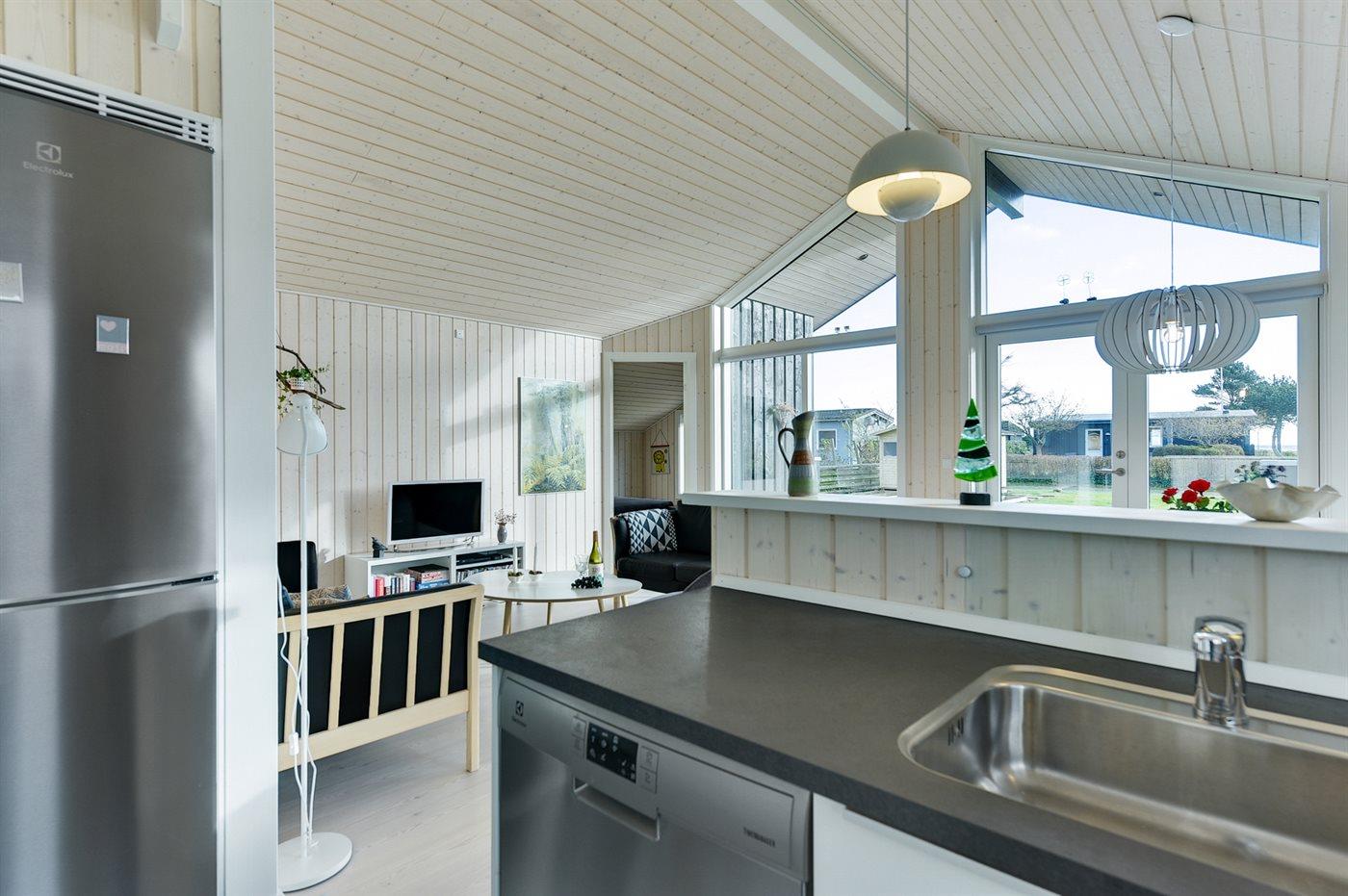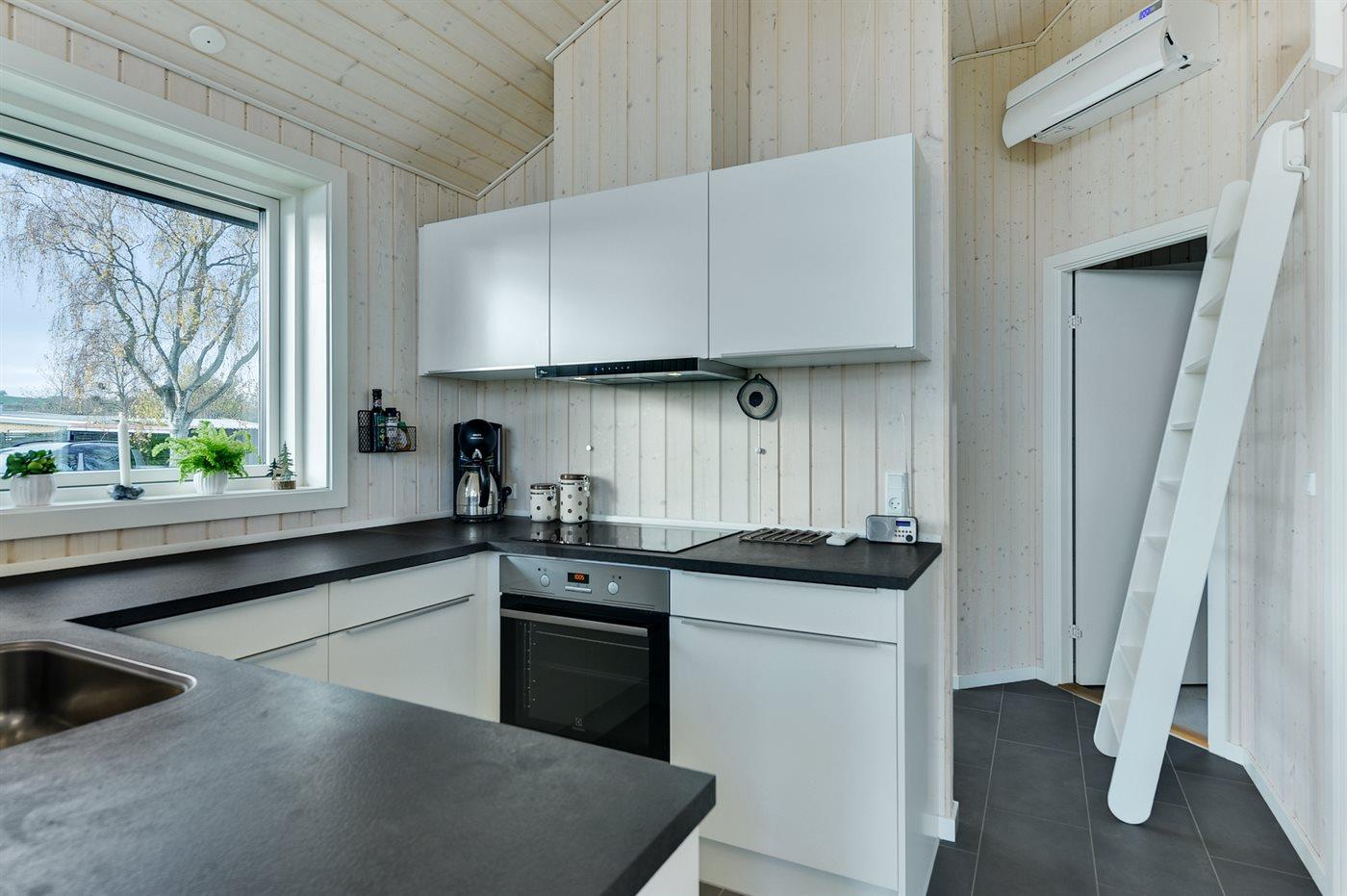 Køkkenet er udstyret med 1 køleskab. Der er 4 induktionskogeplader, varmluftovn samt opvaskemaskine.