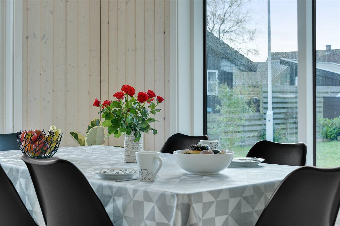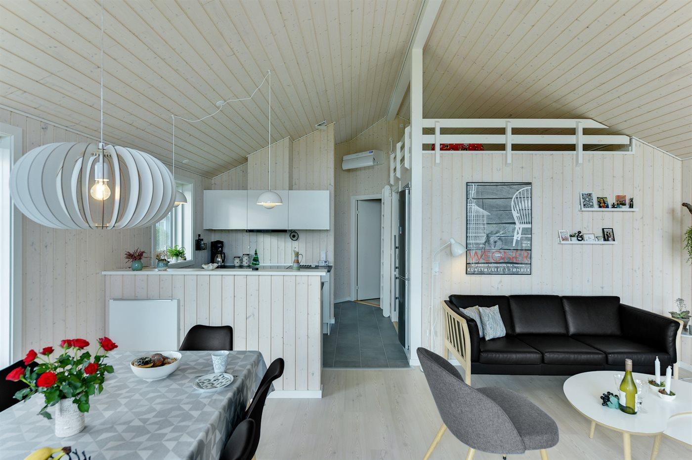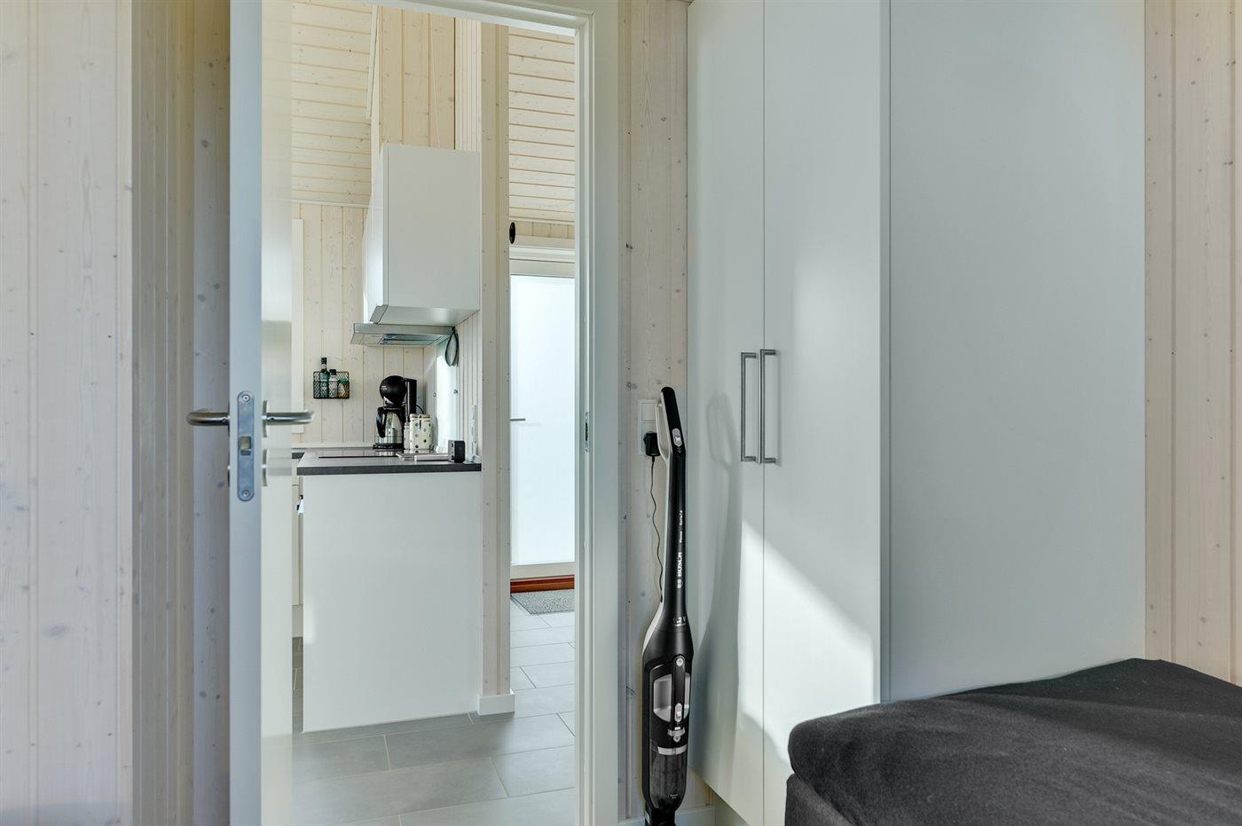 Køkkenet er udstyret med 1 køleskab. Der er 4 induktionskogeplader, varmluftovn samt opvaskemaskine.