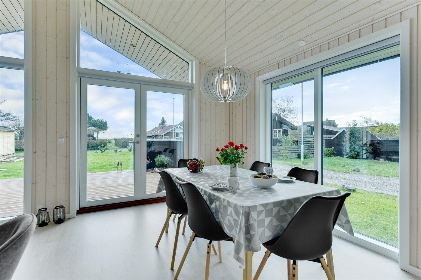 Nybygget sommerhus ved vandet med havudsigt og børnevenlig strand i naturskønt område.