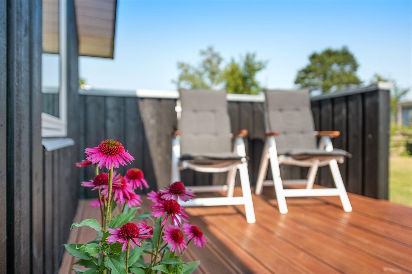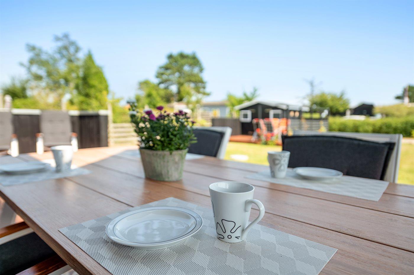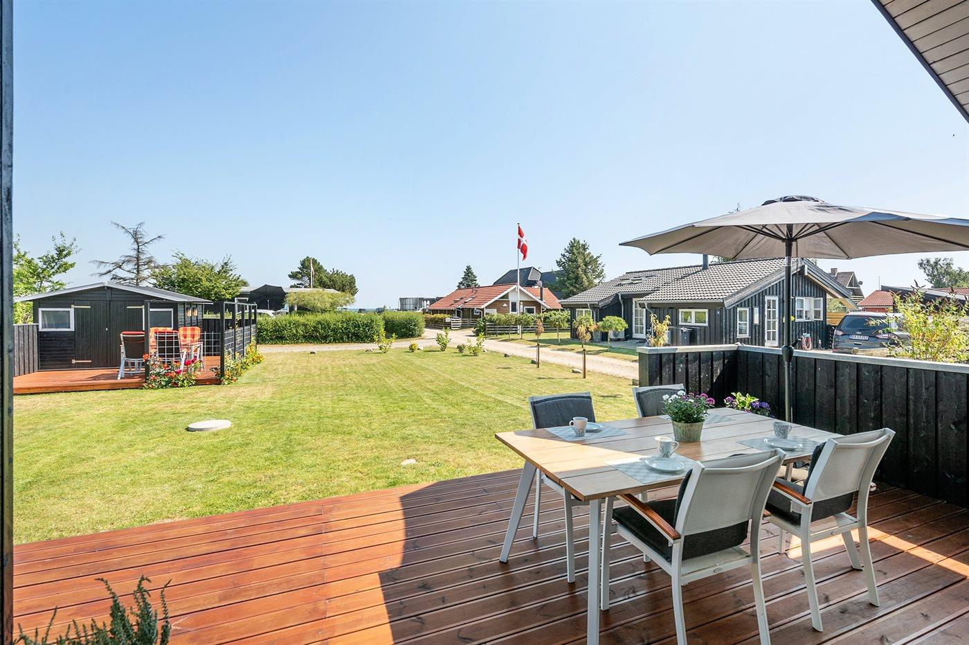 Ferieboligen er beliggende på en 537 m² stor naturgrund. Der er 150 m til havet. Nærmeste forretning er beliggende i en afstand af 1500 m. Til ferieboligen hører 30 m² terrasseareal. Desuden er der 11 m² overdækket terrasse. Grill til rådighed. Parkering ved ferieboligen.