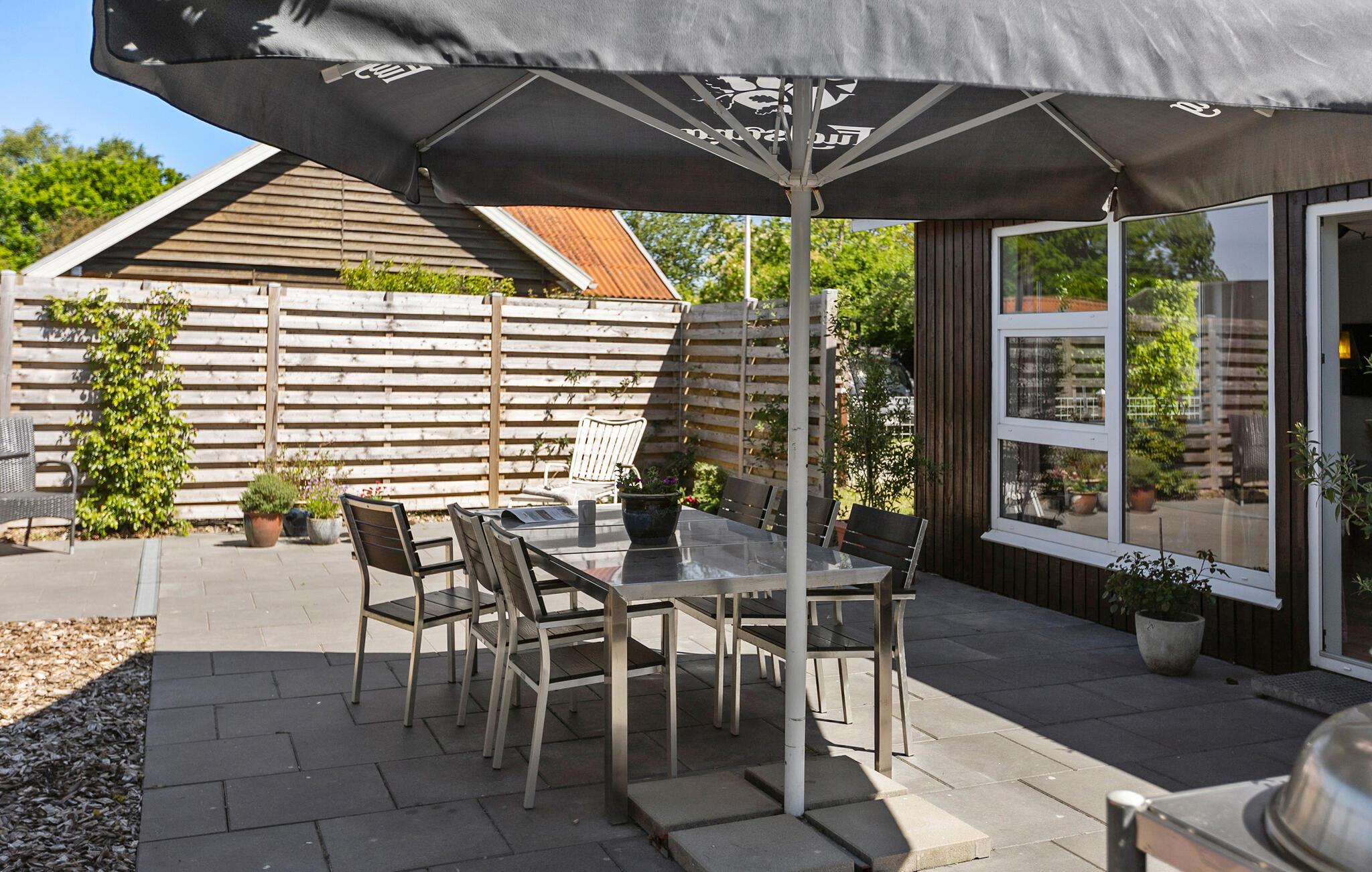 Udendørsområdet byder på en rummelig terrasse med spisebord og grillfaciliteter. Tilbring omgængelige timer udendørs eller lad børnene lege i den indhegnede have. Nærheden til stranden gør huset til et ideelt udgangspunkt for badeture og bygge sandslotte.