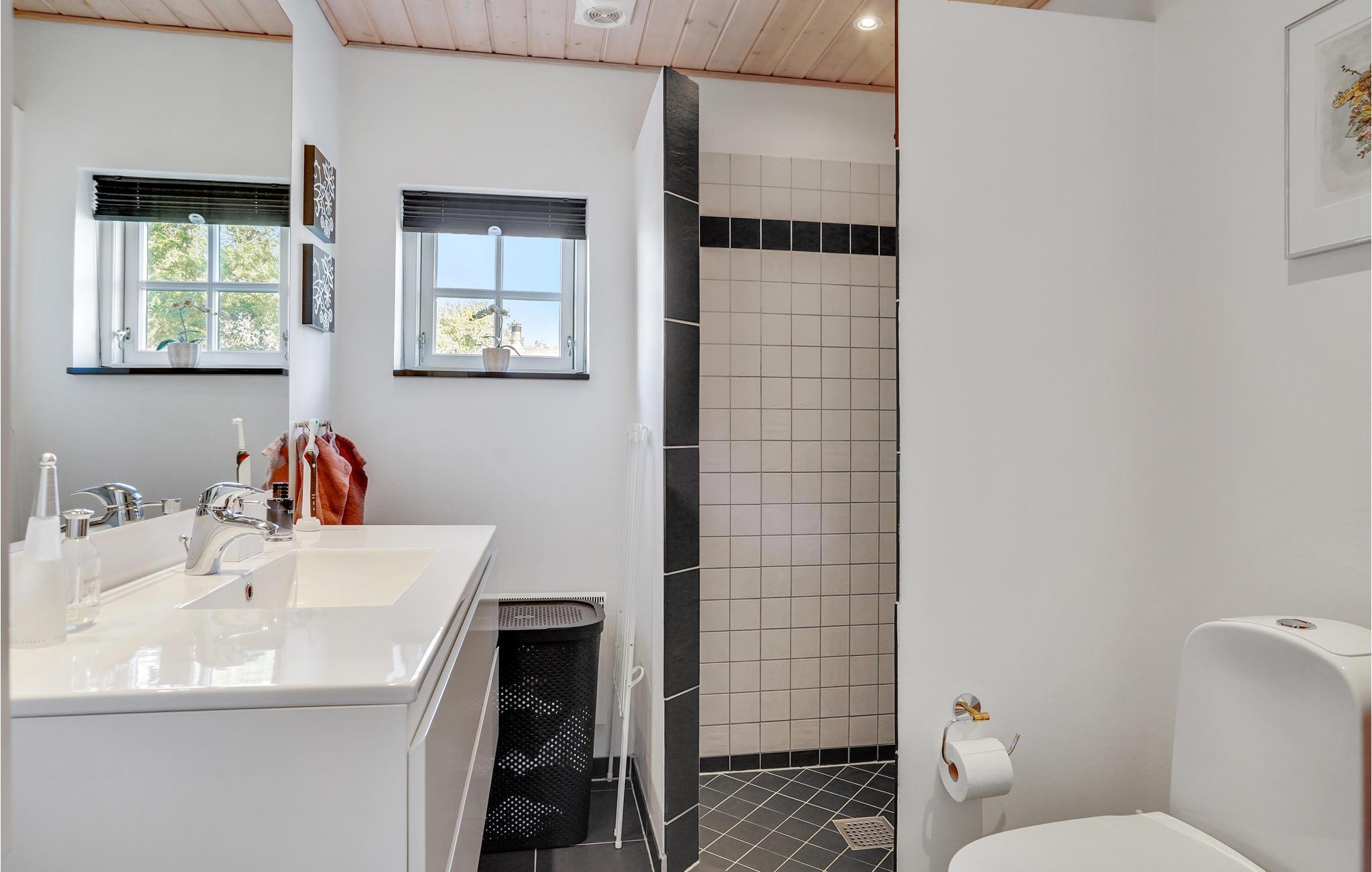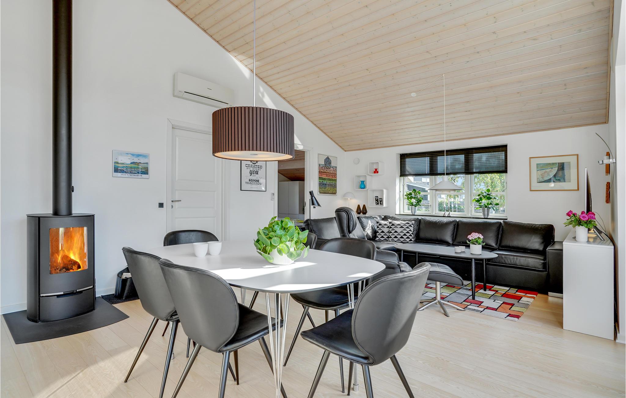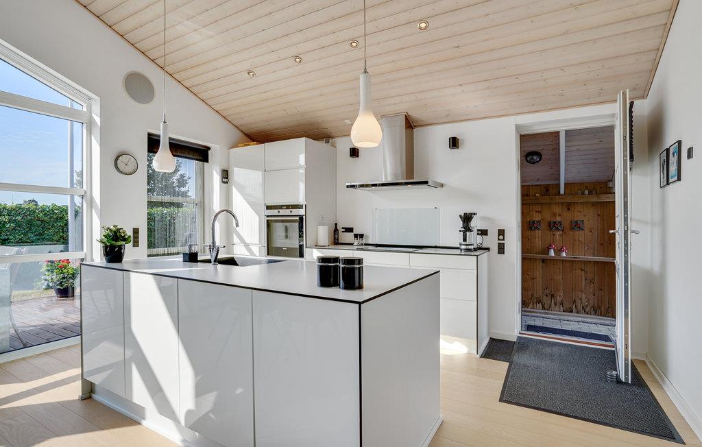 Moderne feriehus ved sandstranden i Vemmingbund med åben terrasse og hyggelig udestue.