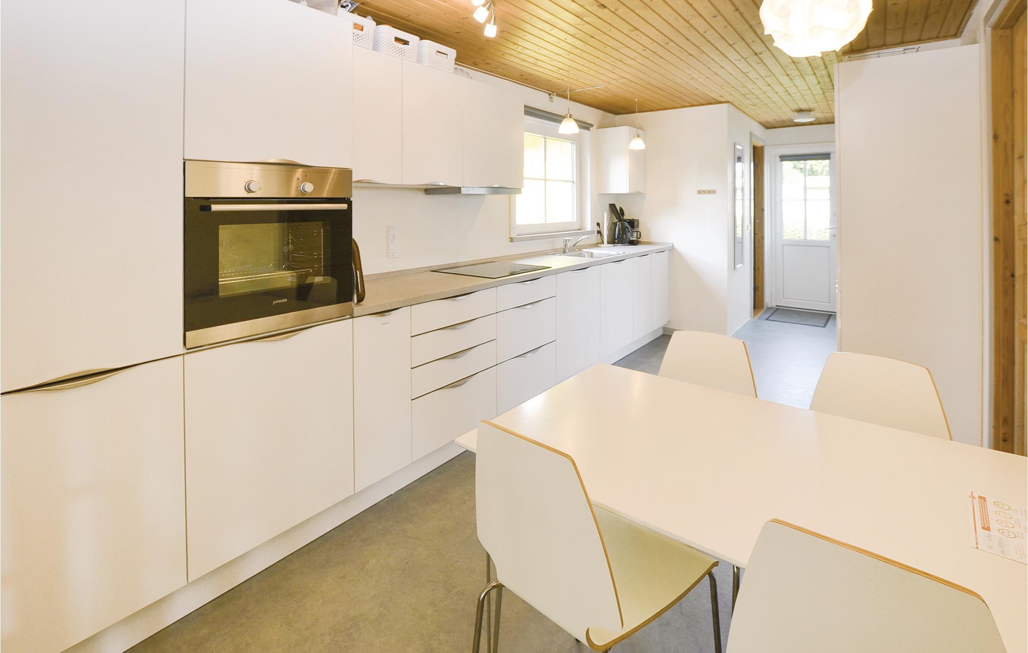 Dette dejlige feriehus er beliggende i det populære feriehusområde ved Vemmingbund Strand. Stranden, som er særdeles familievenlig, regnes for en af områdets allerbedste badestrande. Når I lejer dette feriehus, har I mulighed for at nyde et bad i et ægte Vildmarksbad i haven. At bade i et Vildmarksbad er behageligt uanset årstid. Om vinteren, når der er frost og sne, er det en helt speciel oplevelse, som I ikke må snyde jer selv for. Husets åbne og veludstyrede køkken ligger i åben forbindelse med spiseafdelingen og opholdsstuen. I den hyggelige opholdsstue er der en energivenlig pillebrændeovn, som I kan benytte på de kølige dage og aftener. Over alt i huset kan I benytte den trådløse internetforbindelse.
