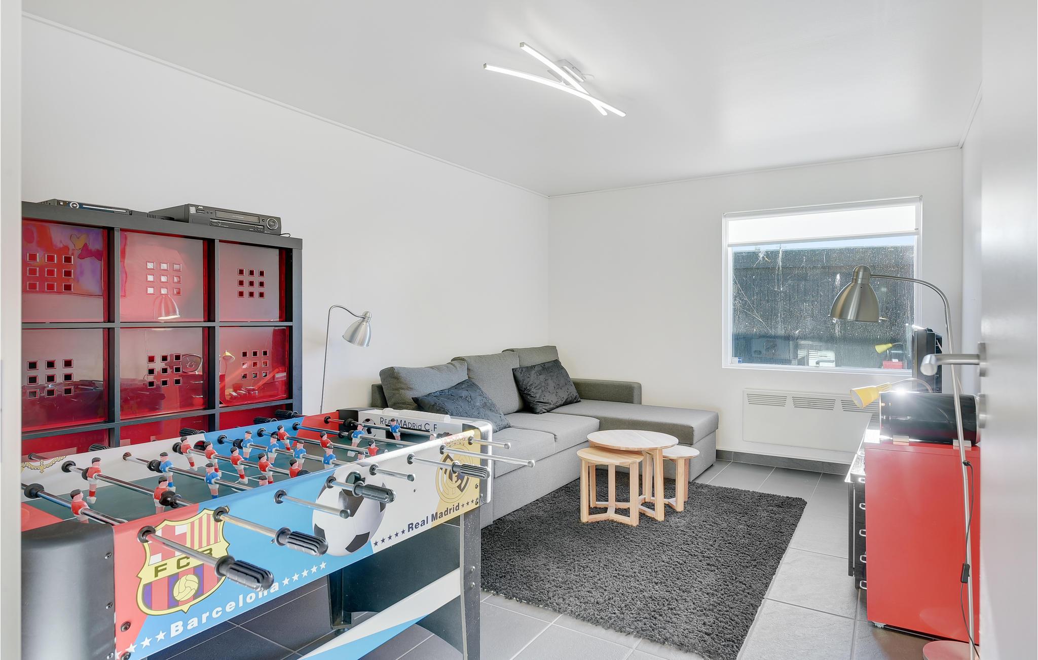Her er lyse rum med moderne indretning. Glæd jer til at slappe af i opholdsstuen, eller til at nyde middage med hele familien i den åbne spisestue, der ligger i forlængelse af køkkenet. Huset består desuden af 3 soveværelse og et badeværelse. Der er også endnu en opholdsstue med masser af underholdning som blandt andet TV, WiFi, Playstation 2, DVD og bordfodbold. Udendørs finder I en terrasse med havemøbler og grill til jeres rådighed. I haven er der masser af aktiviteter at tage fat i, her finder I blandt andet bålplads, fodboldmål og badmintonketsjere, så her kommer I bestemt ikke til at kede jer.