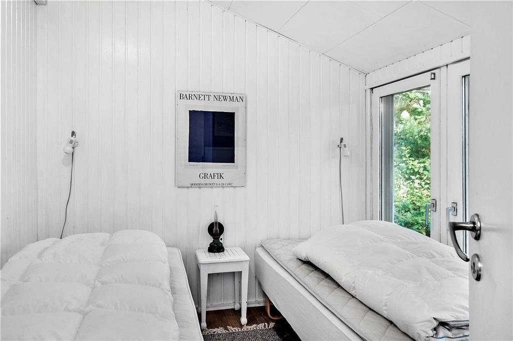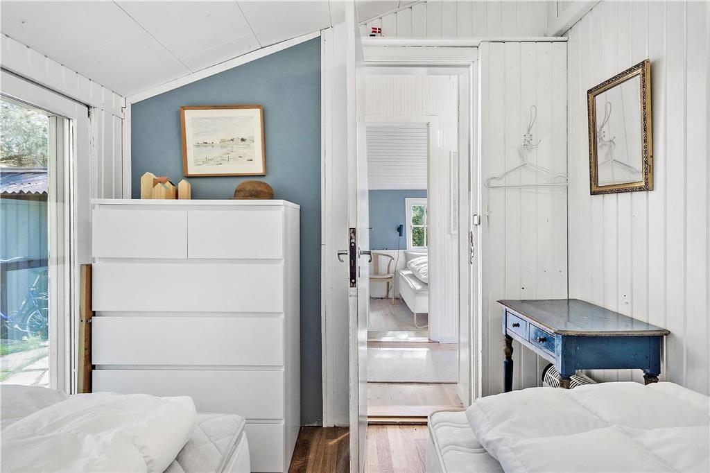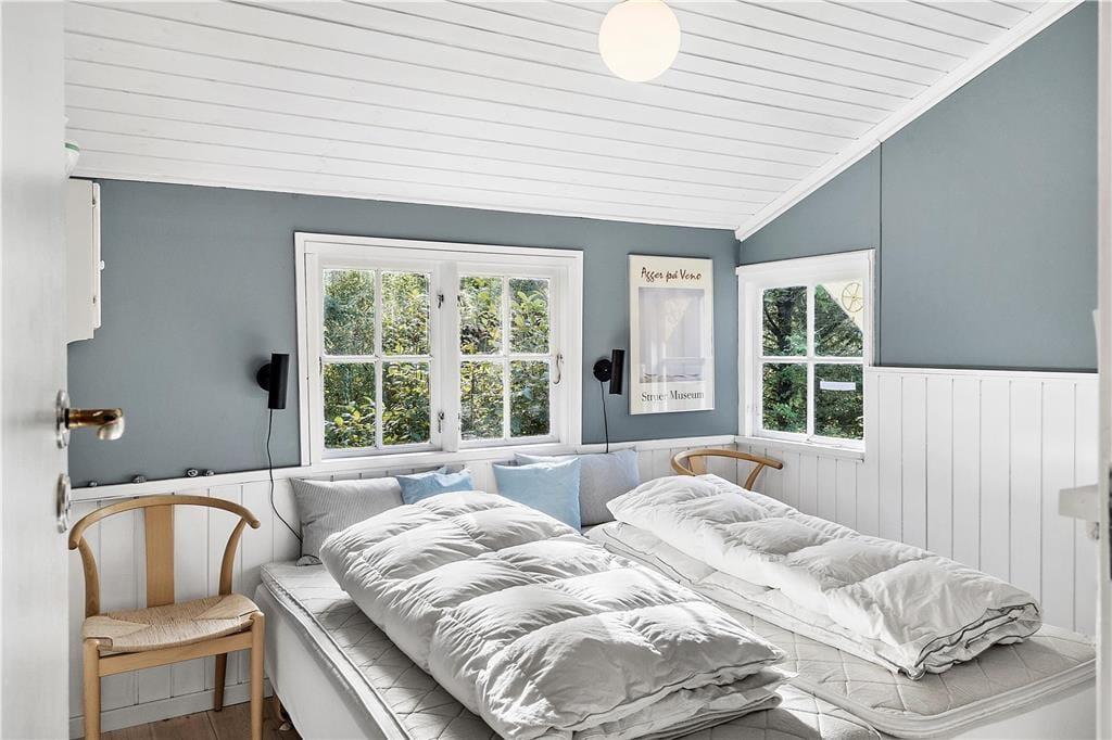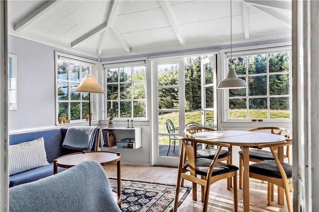 Sommerhuset er den perfekte feriedestination for jer, der drømmer om at koble fuldstændigt af og føle jer i pagt med naturen for en stund. Selv når I opholder jer inden døre kan I nyde de uspolerede omgivelser, for gennem sprossevinduerne kan I se lige ud på høje træer, grønne marker og fjordens blå vand. Efter en nænsom istandsættelse i 2020 præsenterer sommerhuset sig på særdeles skøn vis. Der er fundet en perfekt balance mellem romantisk sommerhuscharme og moderne komfort, og de velindrettede rum indbyder både til total afslapning og hyggeligt samvær. Når I ikke bare sidder med kaffen og kigger ud af vinduerne i udsigtsstuen, kan I se film på fladskærms-tv’et, der har indbygget Chromecast. Feriehyggen kan også bestå i at kræse om maden i det skønne, lyse køkken, og mon ikke der bliver god tid til at sove længe på de to soveværelser, der i alt har fire sengepladser. Badeværelset er udstyret med bruser og vaskemaskine, og huset byder i øvrigt på en varmepumpe, der kan køle eller varme alt efter behovet.
