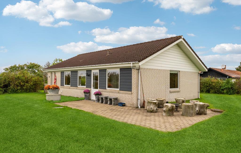 Charmerende sommerhus nær Limfjordens strand med åben terrasse og brændeovn til afslappende feriedage.