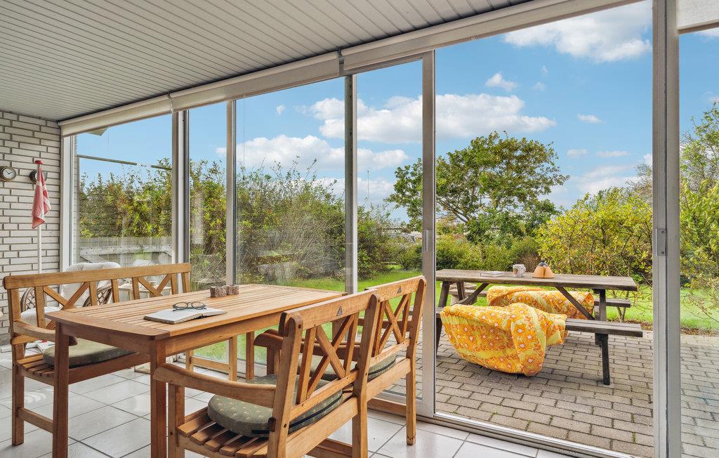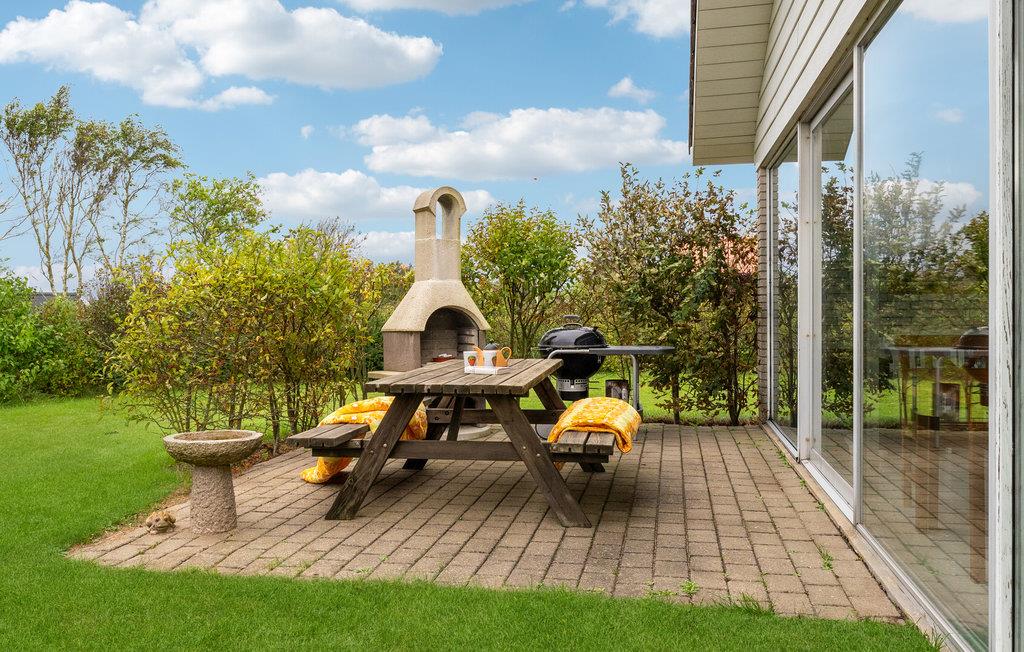 Dette tiltalende hus med en skøn beliggenhed inviterer til uforglemmelige feriedage nær fjordens friske vand. I det store, lyse og åbne opholdsrum med behagelige møbler og klassisk sommerhuscharme er der skruet op for hyggen, og her vil I føle jer hjemme. Lad jer fortrylle af den vidunderlige udsigt over haven, mens I spiser sammen foran de store panoramavinduer fra gulv til loft. Om aftenen bliver det endnu mere hyggeligt, når I tænder op i brændeovnen og gør klar til aftenkaffen. Husets udendørsområde har også meget at byde på. Gå en tur ud i haven om morgenen og indånd den friske luft. Senere kan I slikke sol på terrassen. Nyd de lange, lune sommeraftener udenfor med lækre retter fra grillen og glæd jeres børn med et hyggeligt bål, når mørket sænker sig.