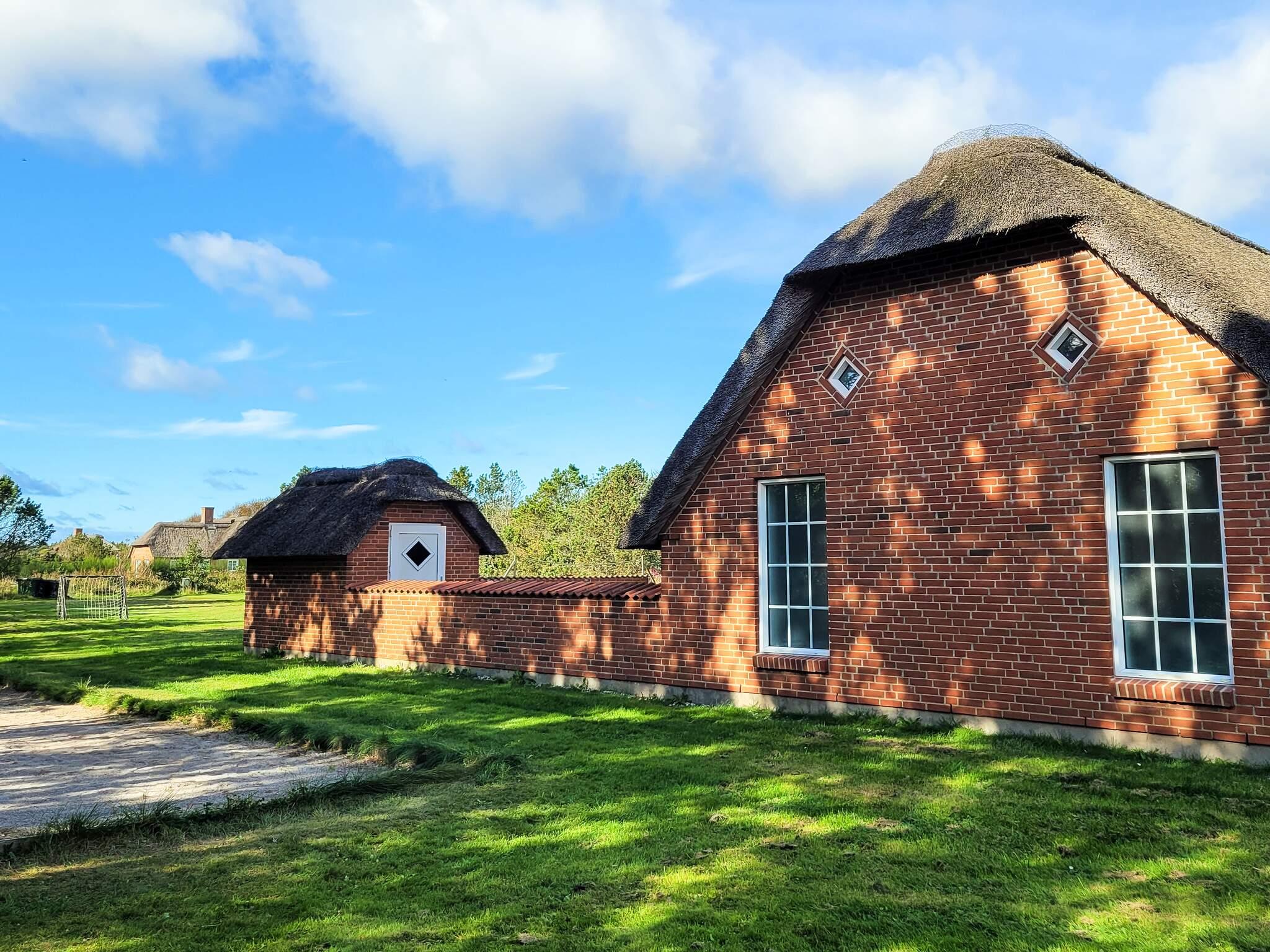 Hyggeligt og energivenligt sommerhus med egen pool, opført i charmerende klitgårdsstil med stråtag. Huset ligger ca. 1600 m fra Vesterhavets skønne strande ved Vester Husby og er ideelt til familieferien.