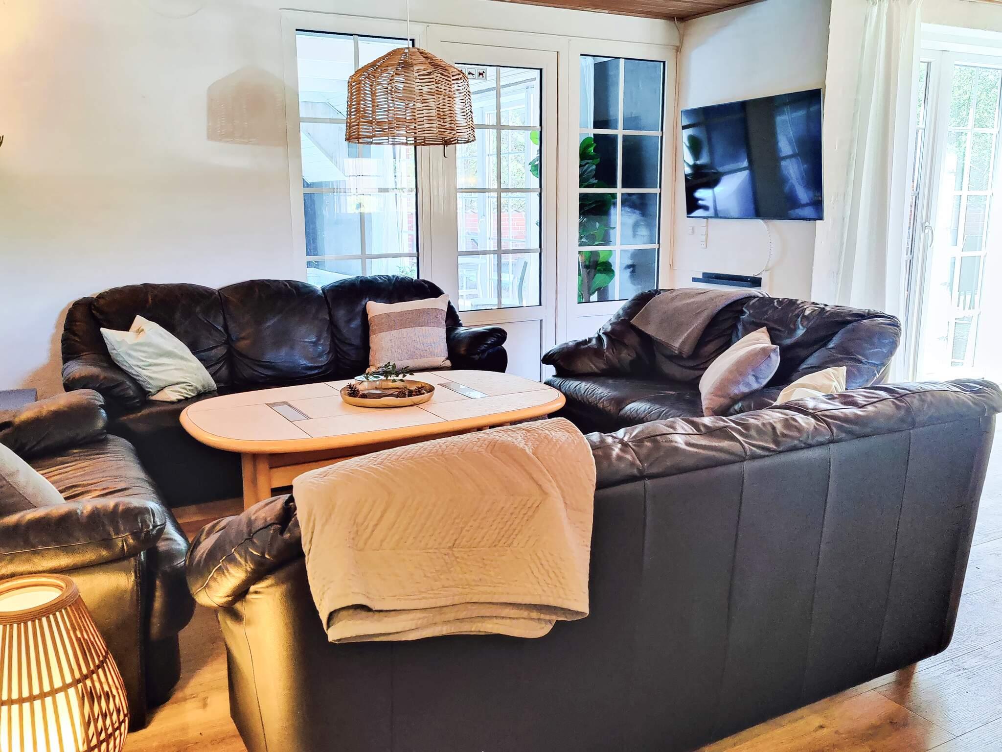 Køkkenet er rummeligt og veludstyret med stort køle-/fryseskab, keramisk kogeplade, varmluftsovn, mikrobølgeovn samt både almindelig kaffemaskine og Nespresso-maskine. Opholdsstuen har plads til 12 personer og er udstyret med stort fladskærms-tv med Chromecast samt hurtigt internet i hele huset.
