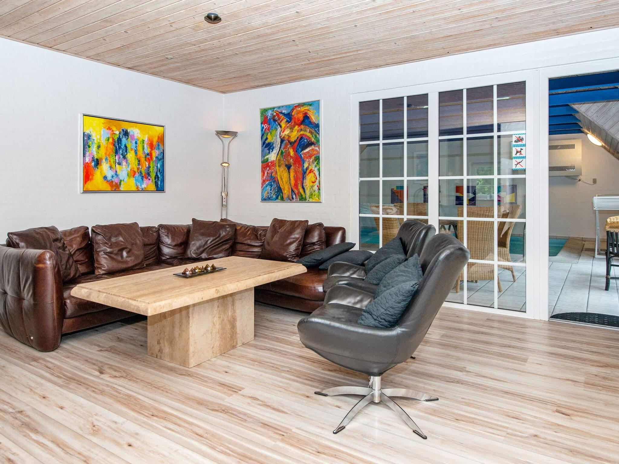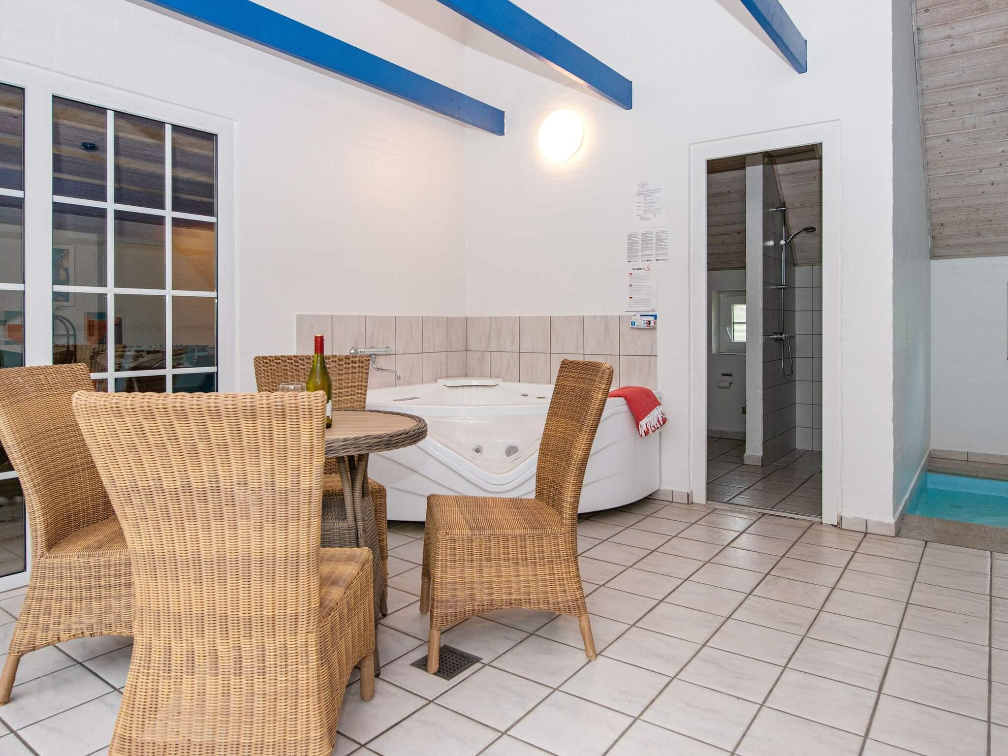 Indenfor er hjemmet udstyret med en swimmingpool, spabad og sauna, der tilbyder uendelige muligheder for afslapning, sjov og wellness. To miljøvenlige varmepumper sørger for effektiv opvarmning i hele huset, hvilket gør det ideelt til ferier på alle årstider. Det åbne design og møbler af høj kvalitet skaber en indbydende atmosfære, hvor alle kan slappe af og nyde tiden sammen.