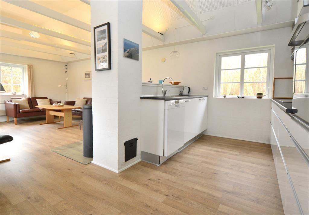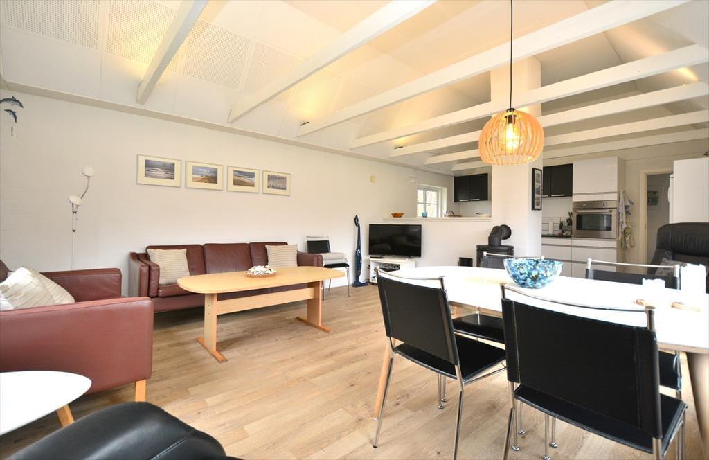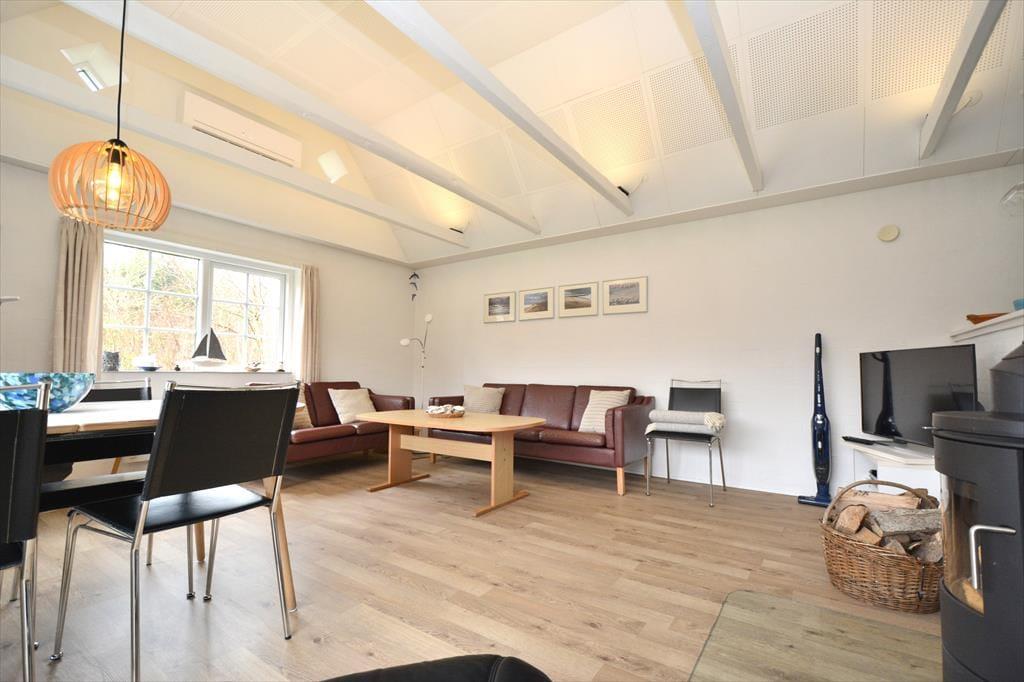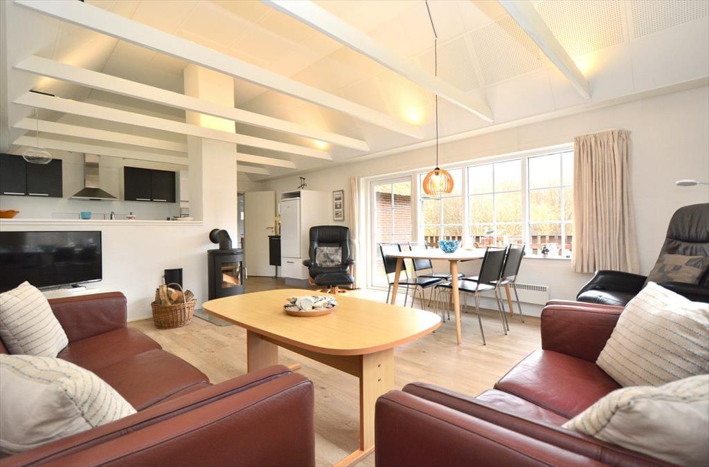 Højt til loftet og en herlig plads til afslapning og hyggelige stunder med familien. Sæt jer i den lyse opholdsstue der ligger i åben forbindelse med køkkenet, her kan nogle af jer nyde et slag kort imens andre udfolder deres kulinariske evner i køkkenet. Smid jer i den dejlige sofa foran brændeovnen og nyd de varme stråler og den hyggelige knitren, her kan I virkelig sænke skulderne og nyde roen der hersker over huset. Her er der plads til hele familien, inklusiv jeres pelsklædte ven.