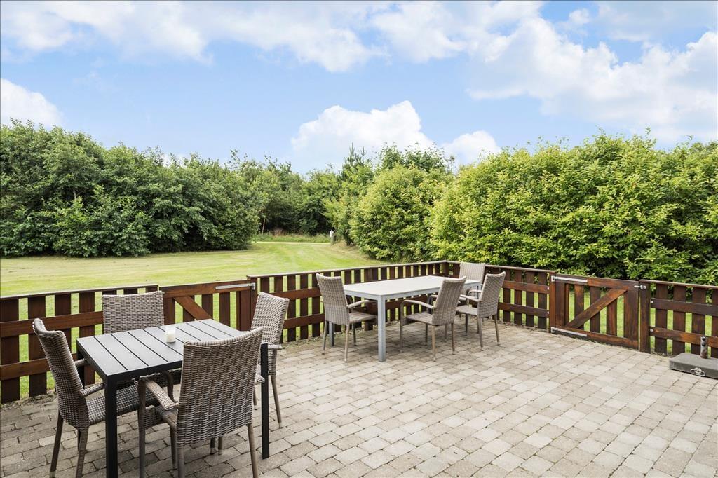 Nyd den store sydvendte terrasse, her kan I sidde i sol det meste af dagens timer og da den er indhegnet, kan de mindste lege frit og det samme med hunden uden bekymringer. Trænger I til at få lidt sved på panden så sæt gang i en fodboldkamp i den store have, her er der rigeligt med plads at boltre jer på. Når aftenen nærmer sig så sæt jer på den dejlige terrasse og lad maden simre på grillen, imens I lytter til fuglenes sang og børnenes latter der spreder sig.