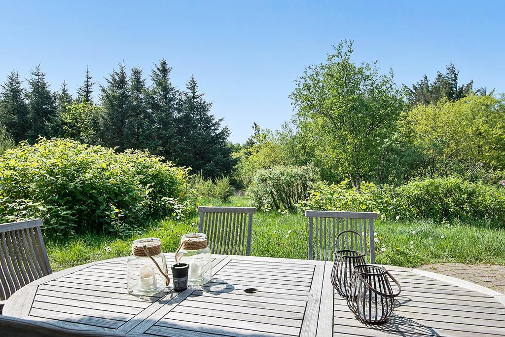 Den store næsten lukkede naturgrund ligger i naturskønne omgivelser for enden af en stikvej, så her får I en dejlig fred og ro uden forstyrrelser. På grunden er der mange buske og træer der gør det ideelt for jer at tage en omgang gemmeleg for hele familien. Der er tre gode terrasser hvor der kan tilbringes mange timer i den fantastiske sol. Tag aftensmaden med udenfor og lav den på den store grill, nyd den lækre duft af mad der stiger op og blander sig med den friske havluft der hersker over området, og skulle det ske at regne en dag så sæt jer på den delvist overdækkede terrasse.
