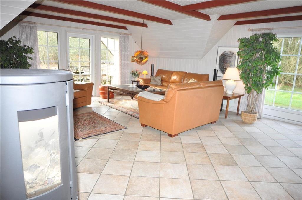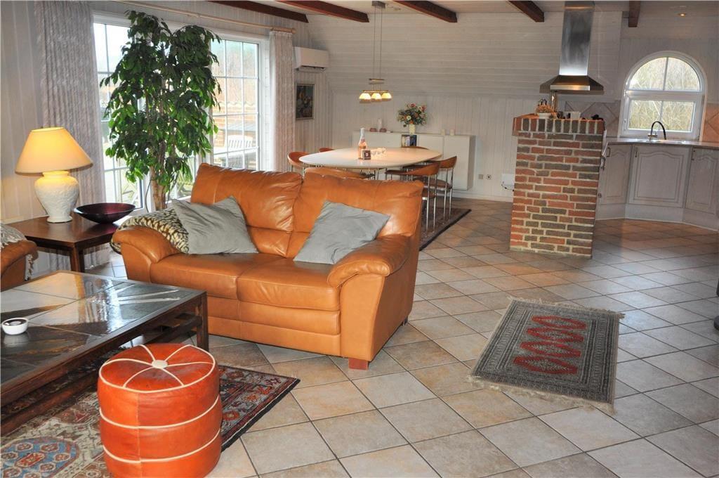 Gå på opdagelse i dette skønne feriehus, her er der plads til hygge og godt samvær for hele familien. De rå mursten skaber en hyggelig atmosfære og giver en dejlig varme til huset. Det store køkken alrum ligger op til mange timer sammen for hele familien, lav maden uden at stoppe samtalen der flyder rundt om det store spisebord eller nyd brændeovnens lune stråler og hyggelige knitrende lyd i køkkenet også. Lav morgenkaffen på den fantastiske espressomaskine og nyd den i stuen imens I kigger udover den smukke grund gennem vinduerne. Tag et velfortjent hvil i den lækre spa og nyd dens varme og behagelige bobler, og slut dagen af med en tur i den varme sauna og bliv varmet godt igennem.