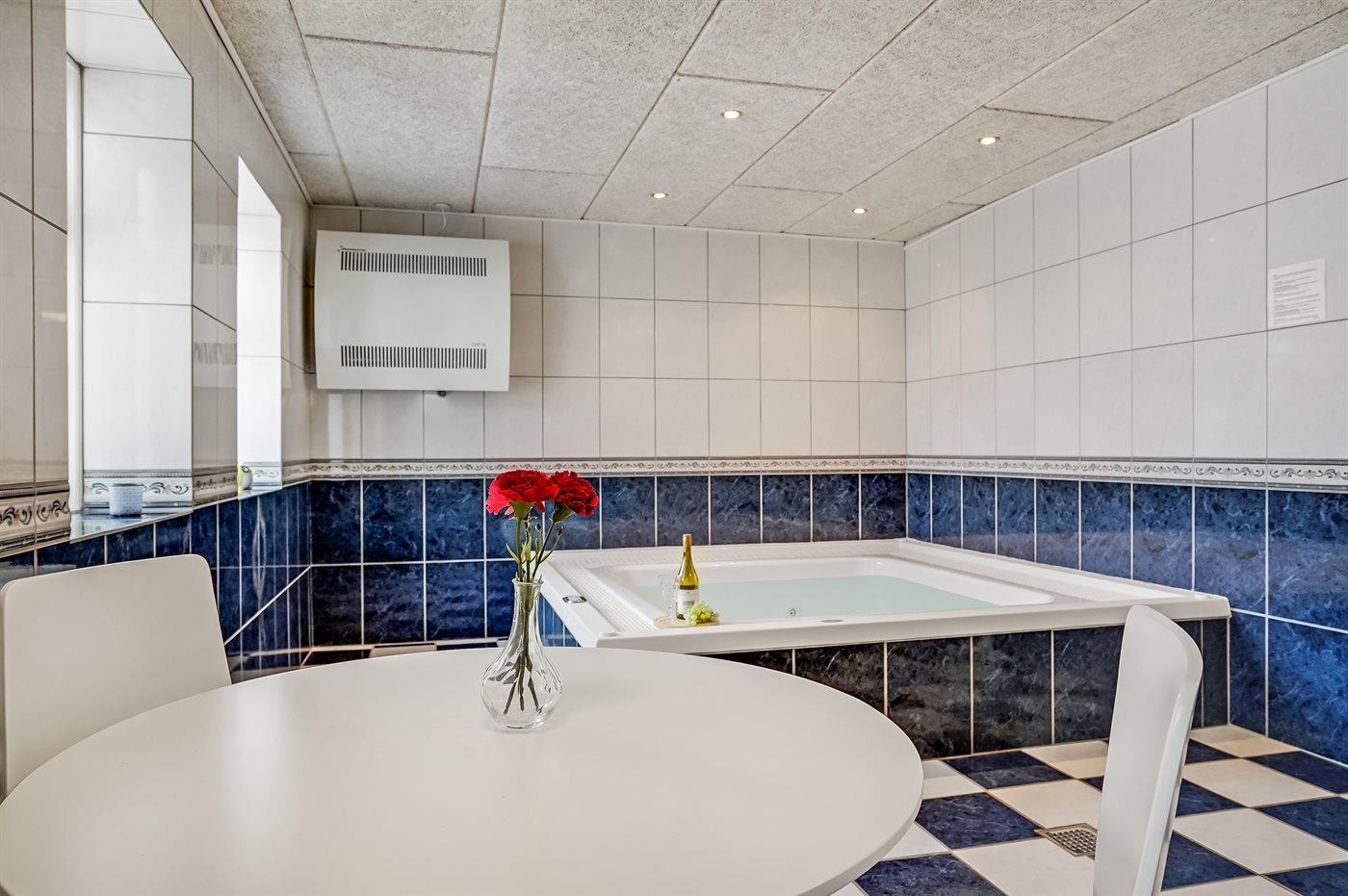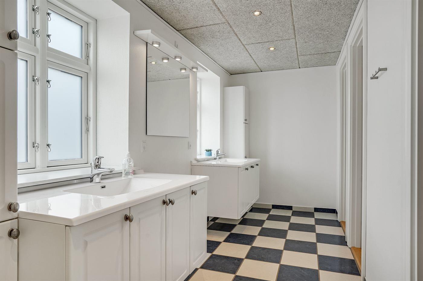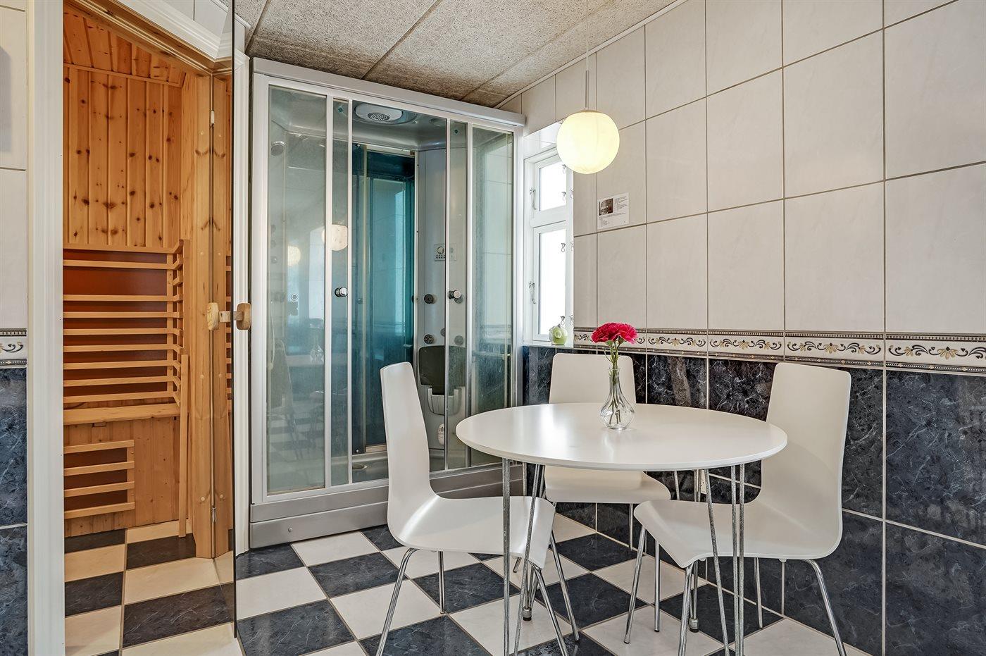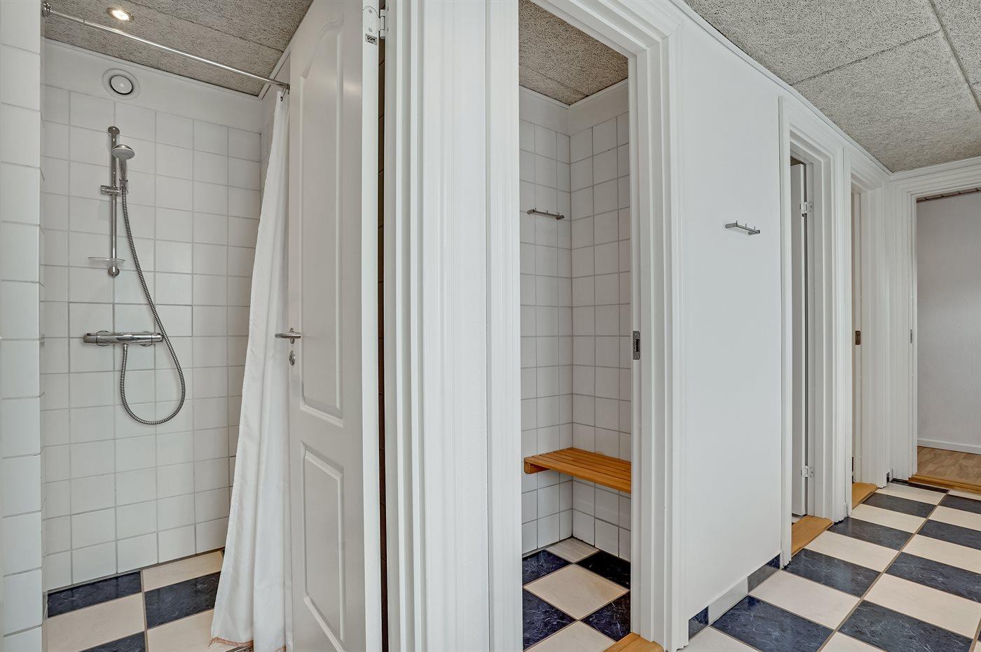 Der er 5 badeværelser med bruseniche og 5 toiletter. Der er gulvvarme på 1 badeværelse. I saunaen er der mulighed for afslapning.