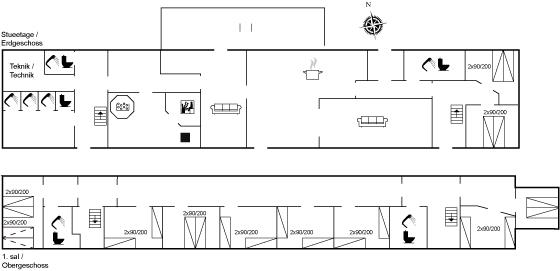 Der er i alt 10 soveværelser. Sovepladserne fordeler sig på: 10 sovepladser i dobbeltsenge. 10 sovepladser i enkeltsenge. 2 sovepladser i sovesofa (dobbelt). Derudover er der 1 stk. barneseng.