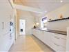 Lyst og veludstyret køkken i åben forbindelse med stue