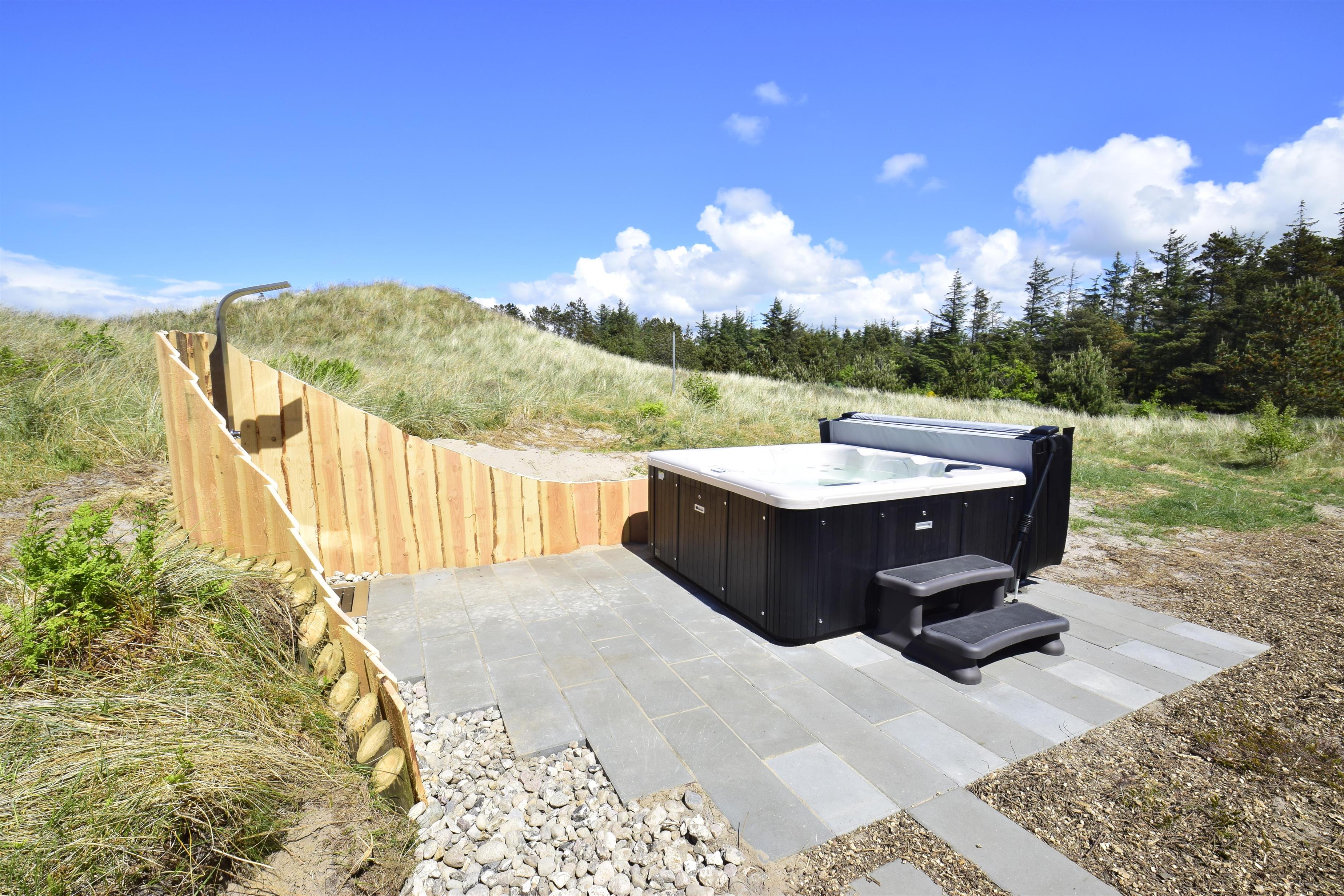 I forbindelse med den nordvestvendte terrasse er der et stort 6 personers ude spa, hvor der er mulighed for at få alle musklerne godt masseret, en helt speciel oplevelse i klar måneskin, eller når stjernerne lyser på himmelen. Spabadet er topisoleret.