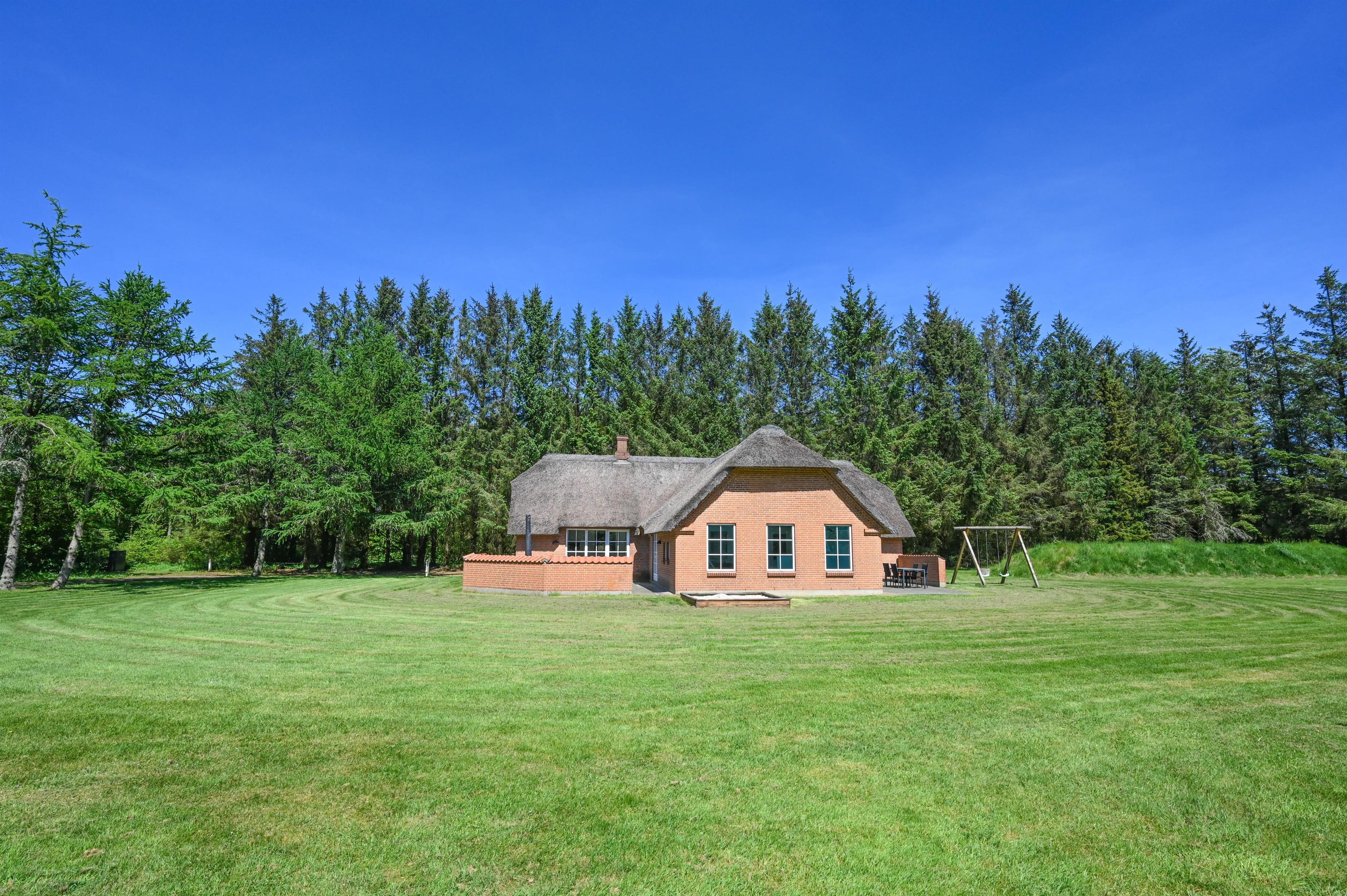 Søger I en ferie i fredelige og rolige omgivelser med mulighed for at opleve naturen på tætteste hold, så er dette dejlige beliggende feriehus et oplagt valg. Feriehuset er beliggende for enden af en blind vej på en 5.000 kvm grund med høje træer i udkanten af Husby Klitplantage.