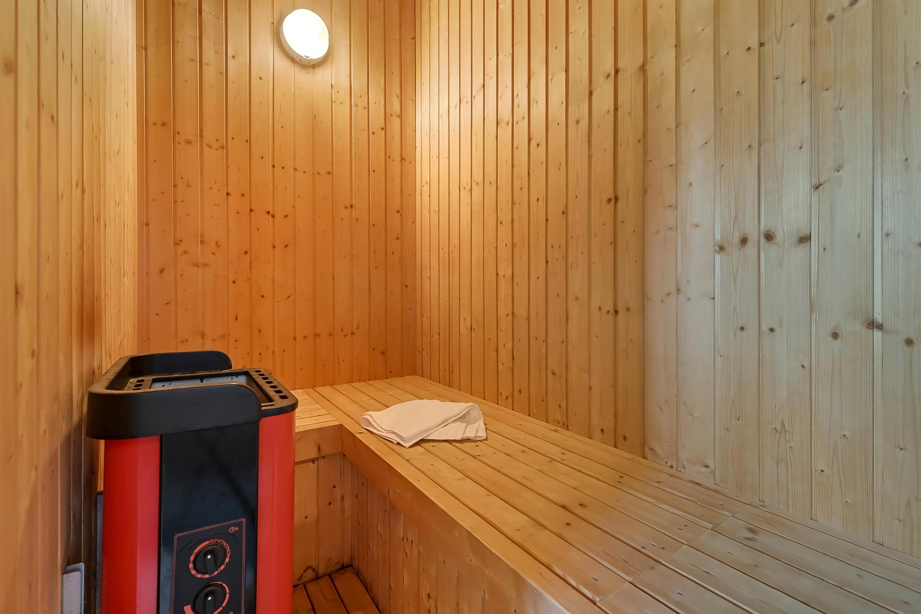 Badeværelse med spa, sauna, bruser og gulvvarme