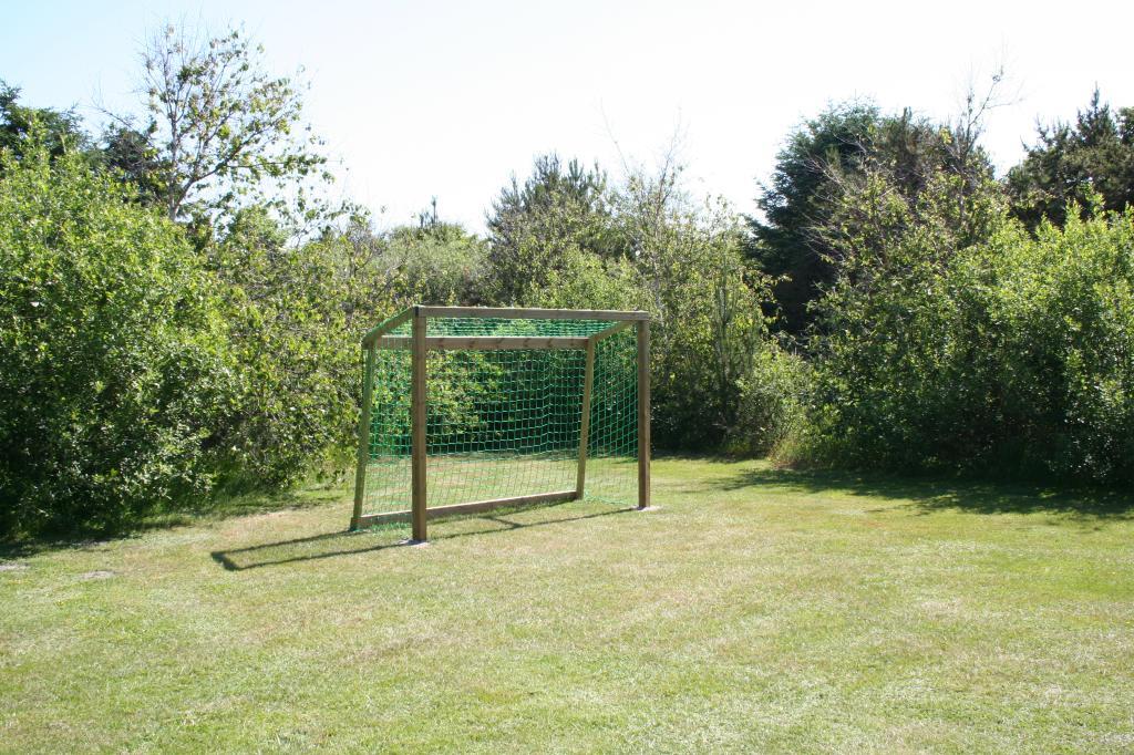 På den store græsplæne er der fodboldmål og masser af plads til leg og boldspil – og når aftenen falder på, kan I nyde stilheden og den friske vestjyske luft.