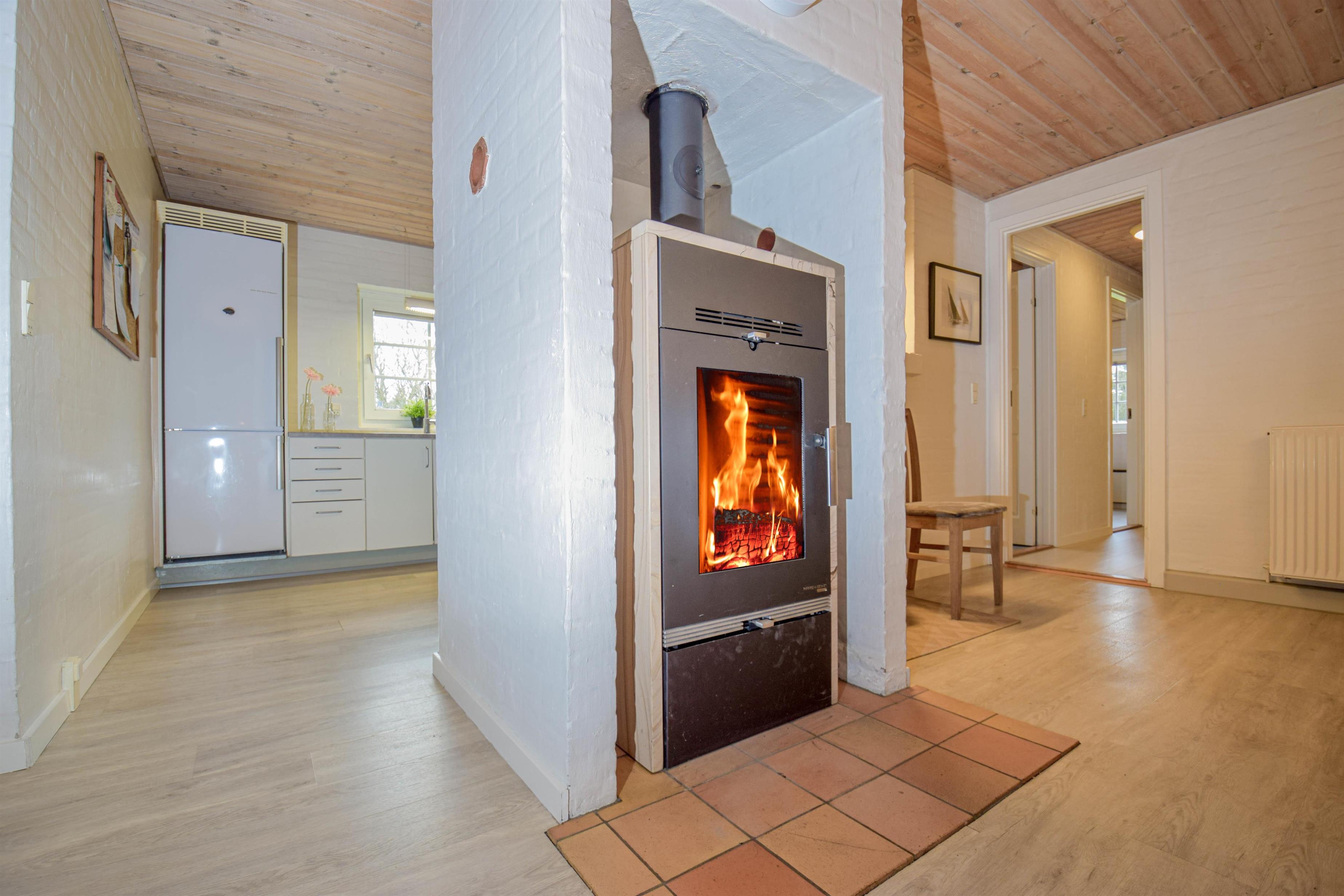 Når dagen går på hæld, kan I tænde op i brændeovnen og nyde varmen, mens solen langsomt forsvinder bag trækronerne.