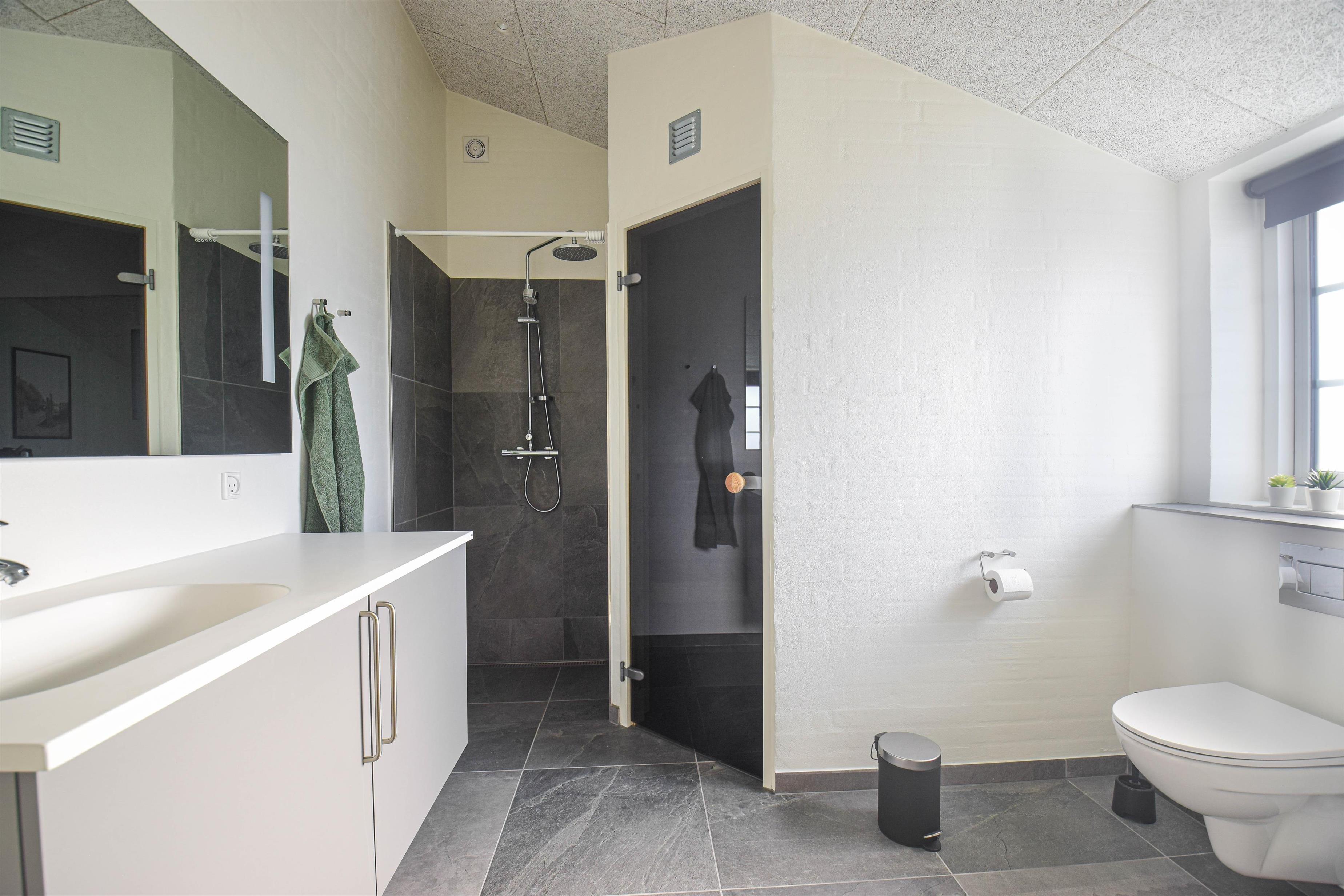 De 8 sovepladser fordeler sig på, 2 soveværelser, som er indrettet med dobbeltsenge, 2 soveværelser som er indrettet med to enkeltsenge. Huset har et stort badeværelse, med sauna, spa, brus. Derudover er der også et lille badeværelse med brus i huset. Der er gulvvarme i hele huset.