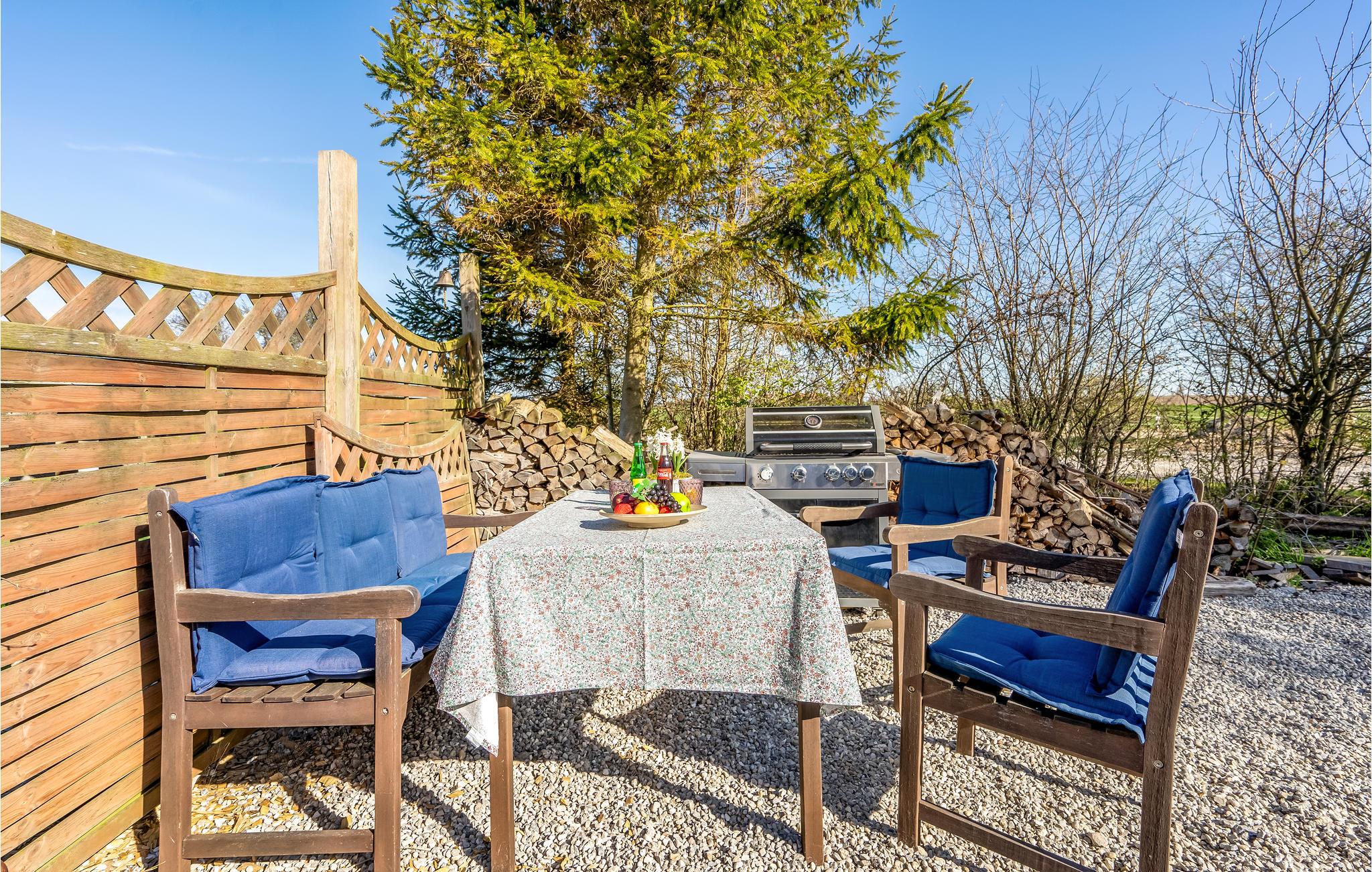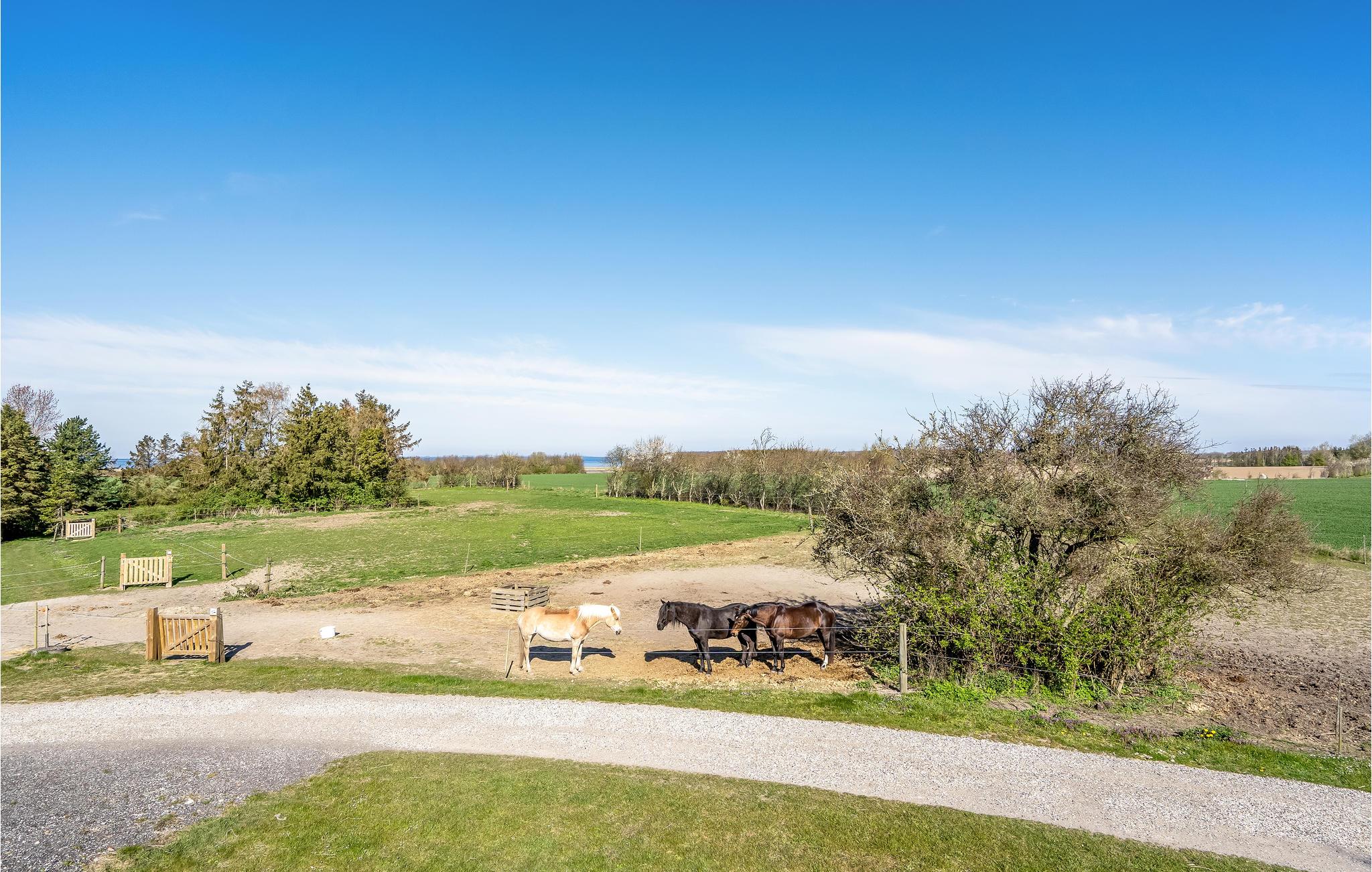 I har adgang til en dejlig, åben grund, som deles med ejeren. Her kan I nyde nogle af feriens måltider, sole jer, læse en god bog eller lege og spille bold og udendørsspil. Der er også hestefolde på dele af grunden. I bor tæt på kysten ved Vester Kippinge, hvor I kan bade ved den børnevenlige strand og fiske fra kysten.