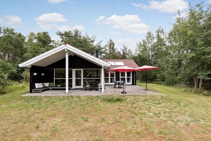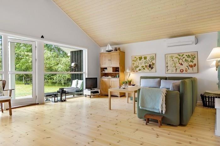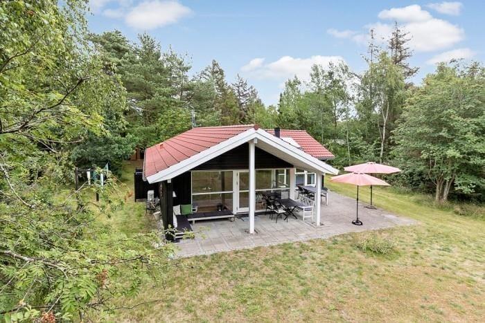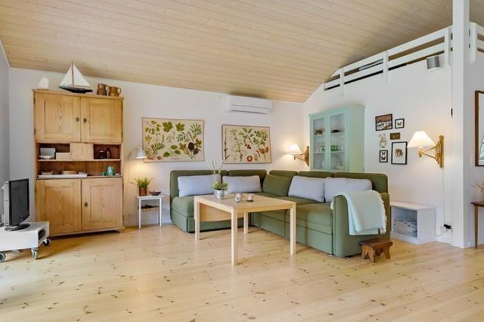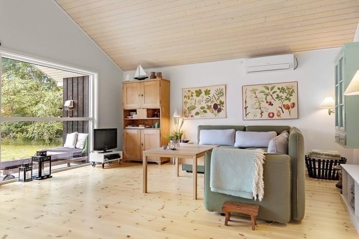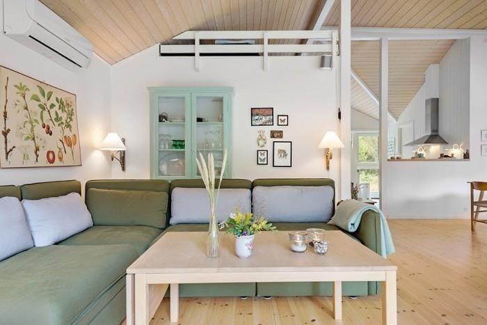 I dette velindrettede sommerhus med højt til loftet og hems som ekstra legeareal til børnene får du masser af plads. Hvis du er morgenmenneske, kan du snige dig ud på terrassen og nyde dagens første kop kaffe, inden resten af familien vågner. I stuen er der store panoramavinduer mod terrassen og haven, og der er masser af plads til alle. Fra køkkenet, kommer du nemt ud på terrassen, hvor du kan servere aftensmaden eller en kølig drink før aftensmaden.