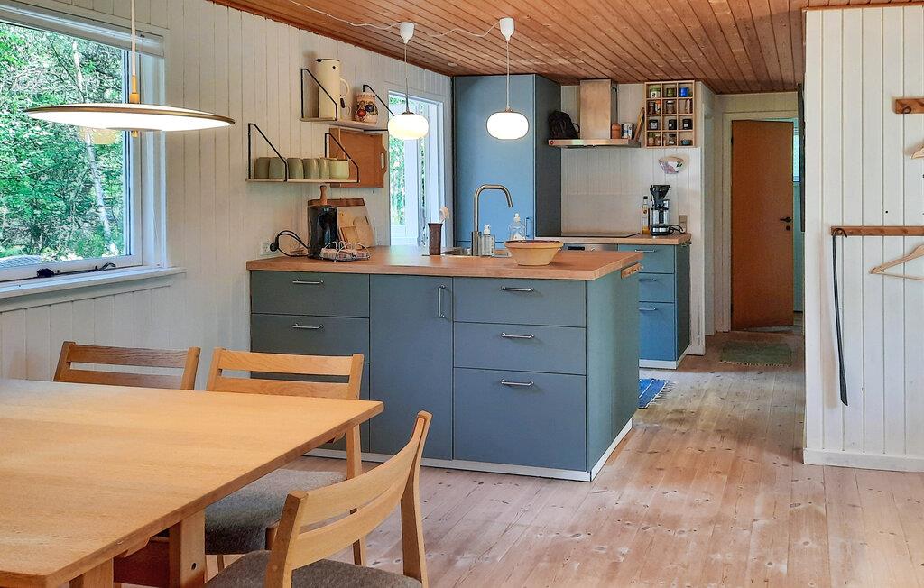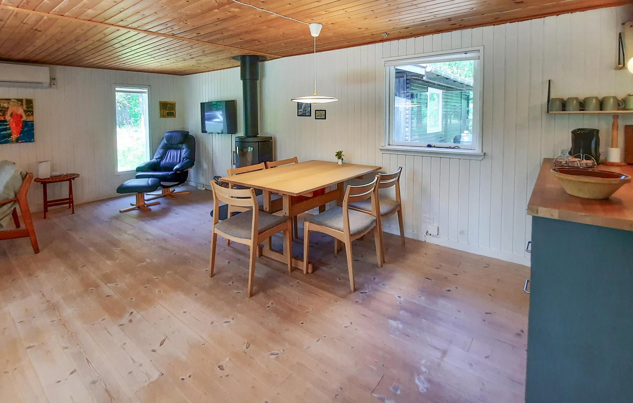 Tilbring jeres næste ferie i dette hyggelige sommerhus tæt på Vesterø Havn. Huset ligger på en stor naturgrund og er det oplagte sted til en afslappende ferie midt i naturen. Her er plads til at slænge sig i sofakrogen med en film på tv’et eller spille sjove spil om spisebordet. Når aftenen nærmer sig, kan I i fællesskab lave lækker mad i det åbne køkken. En del af terrassen er overdækket, så I kan sidde udenfor selv på regnfulde dage eller bruge de lange sommeraftener udenfor uden duggen bliver generende.