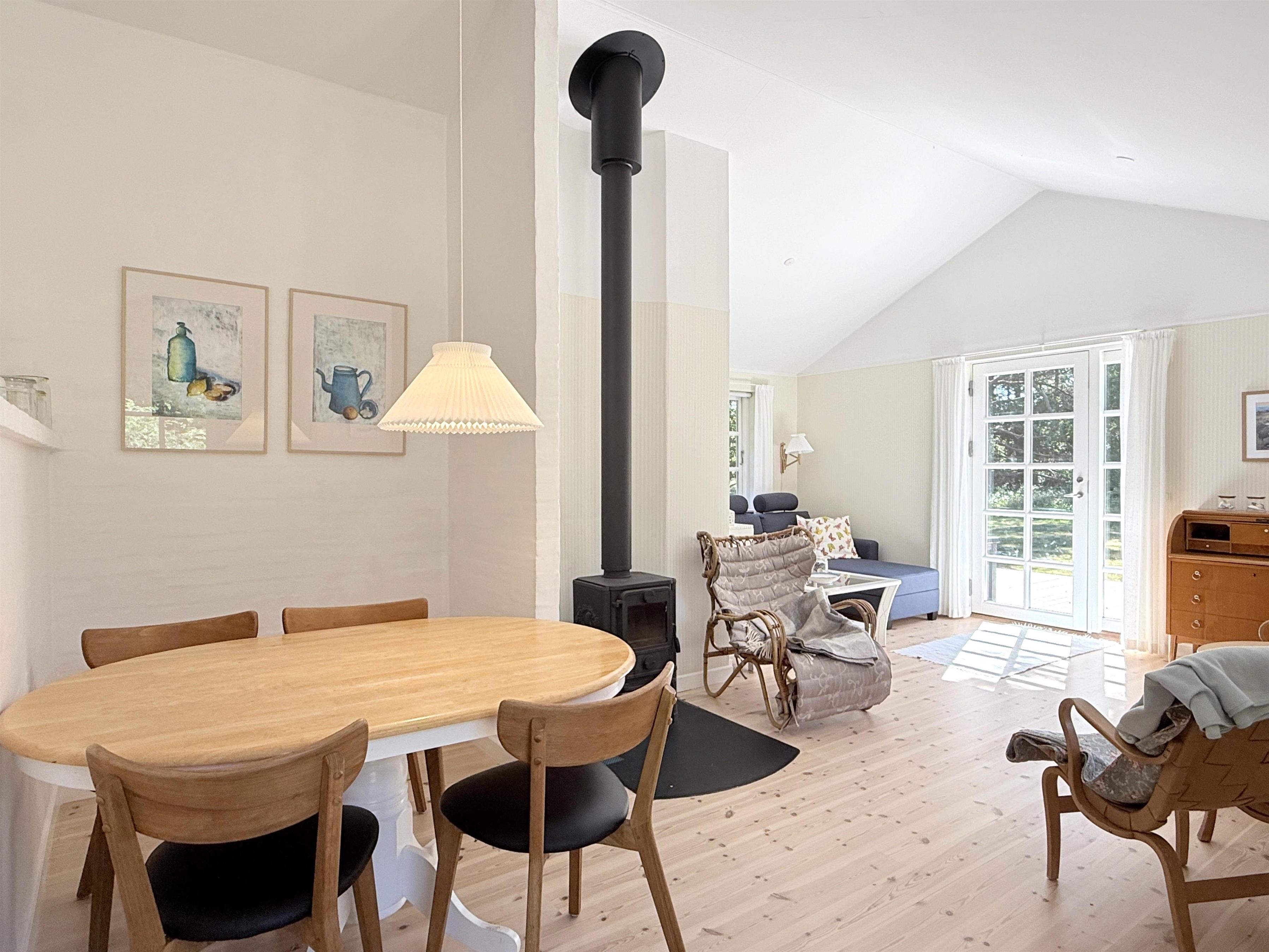 Et rigtig dejligt, lyst og lækkert sommerhus beliggende ved Kongestranden i Vesterø på en skøn naturgrund. Huset er praktisk og komfortabelt indrettet med et hyggeligt køkken/alrum/stue og to soveværelser med dobbeltsenge. Der er badeværelse med brus og vaskemaskine samt sauna. Husets TV har bl.a. DR, tysk tv samt chromecast til streaming. Huset er smagfuldt indrettet og med den helt rigtige sommerhusatmosfære.