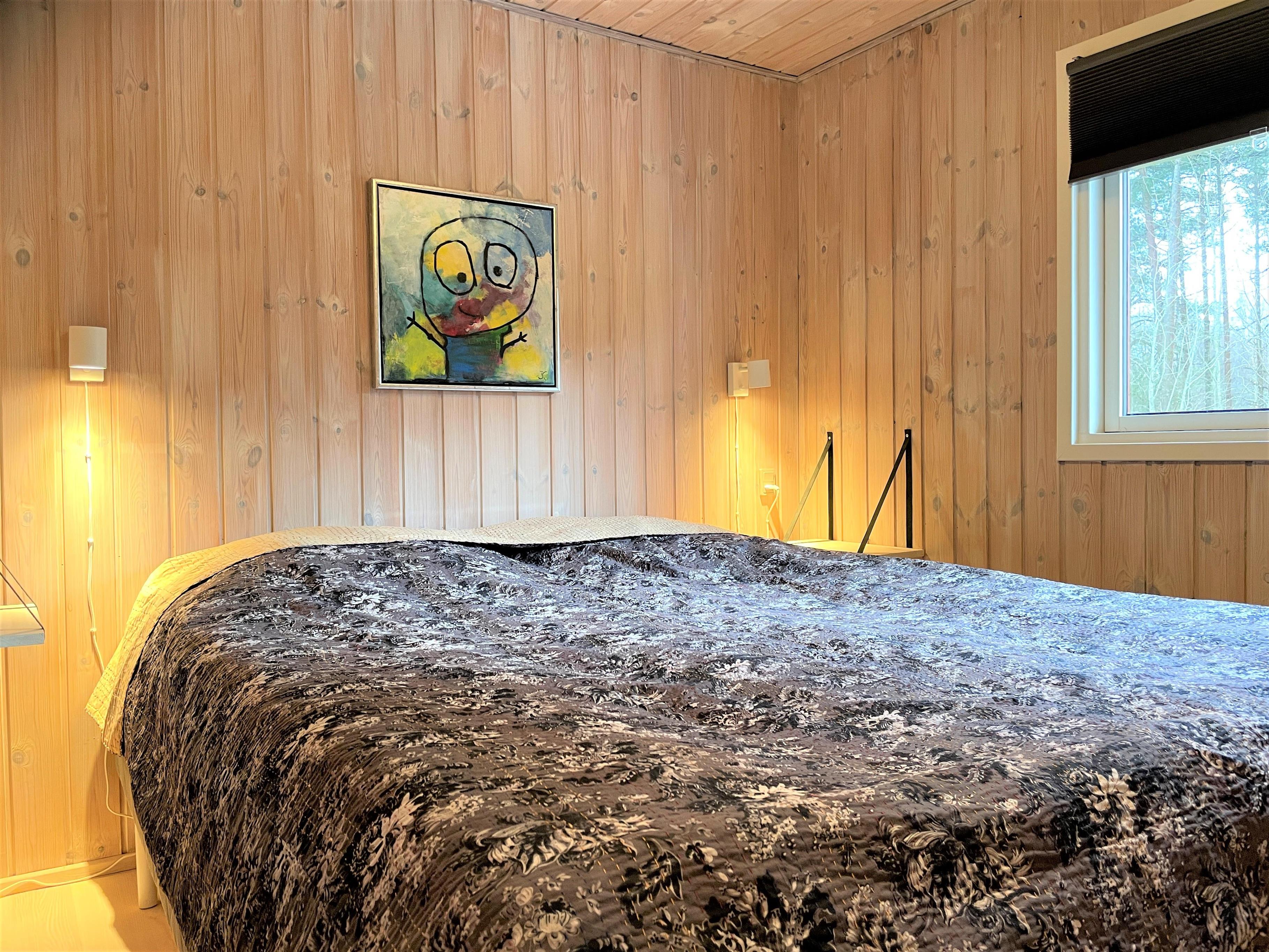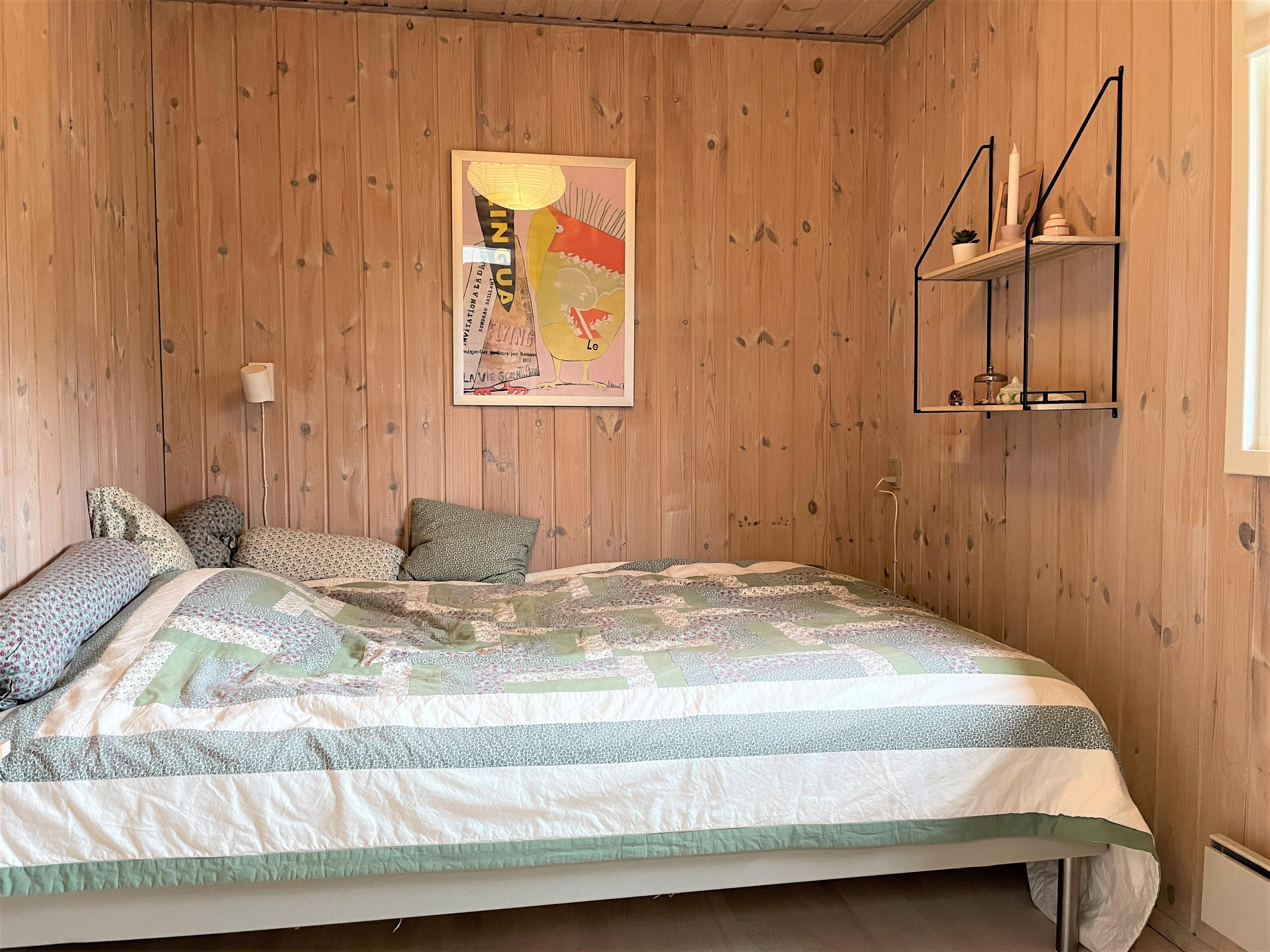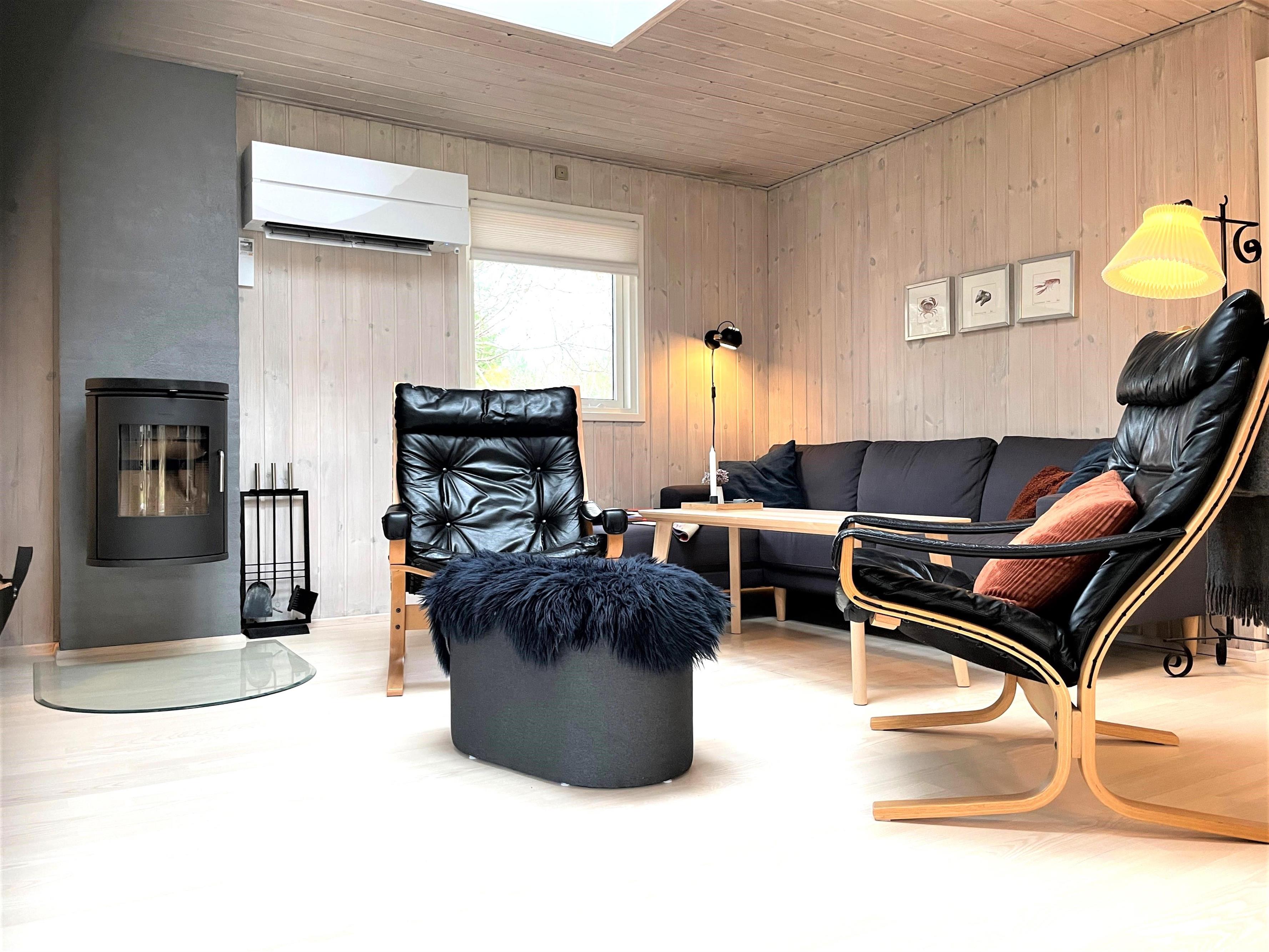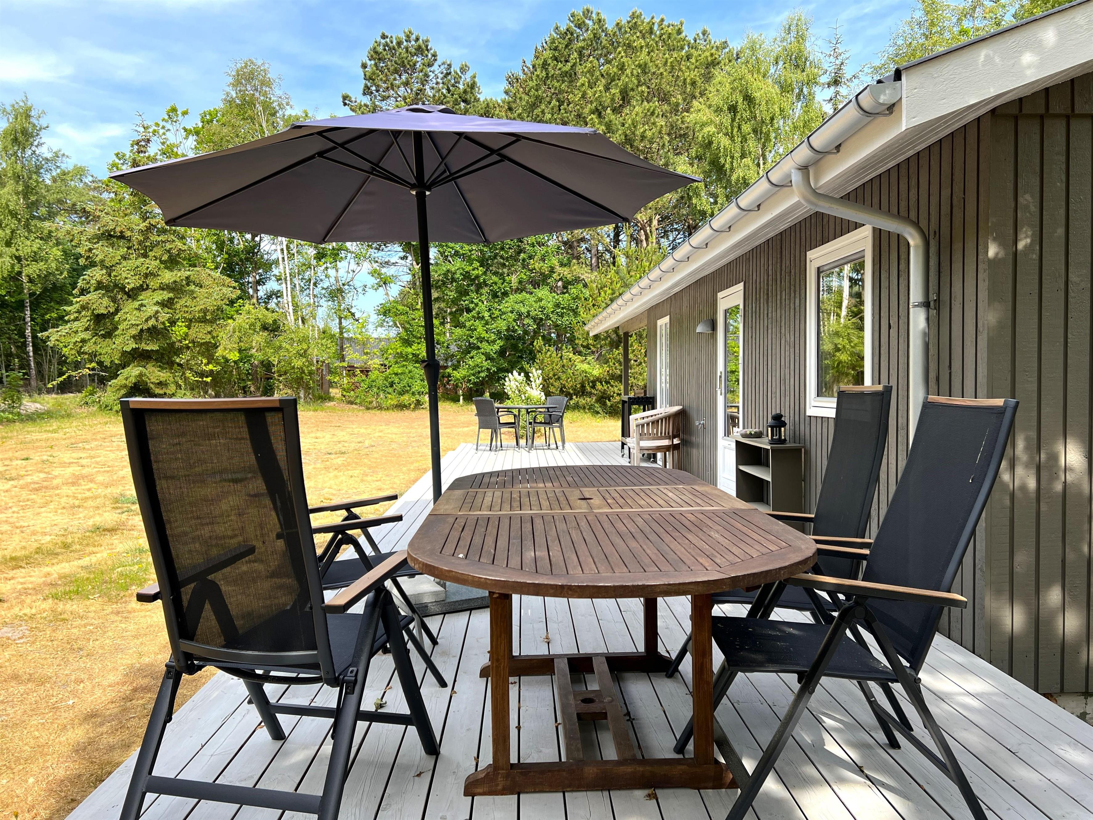Huset har et funktionelt og veludstyret køkken i forbindelse med dejlig spiseplads. Tre gode soveværelser, hvoraf to værelser har dobbeltsenge og et værelse har køjeseng. Helt nyt badeværelse med gulvvarme. I dette hus fornemmer man straks den smagfulde, komfortable indretning og muligheden for ren afslapning. Stuens store vinduespartier og ovenlysvinduer skaber et flot lysindfald og fra stuen er der udgang til den store 50 kvm træterrasse, hvor flere sæt behagelige havemøbler og grill skaber den hyggelige sommerhusatmosfære. Her kan terrassevarmeren også benyttes. Fin shelter til rådighed på grunden og udendørsbruser.