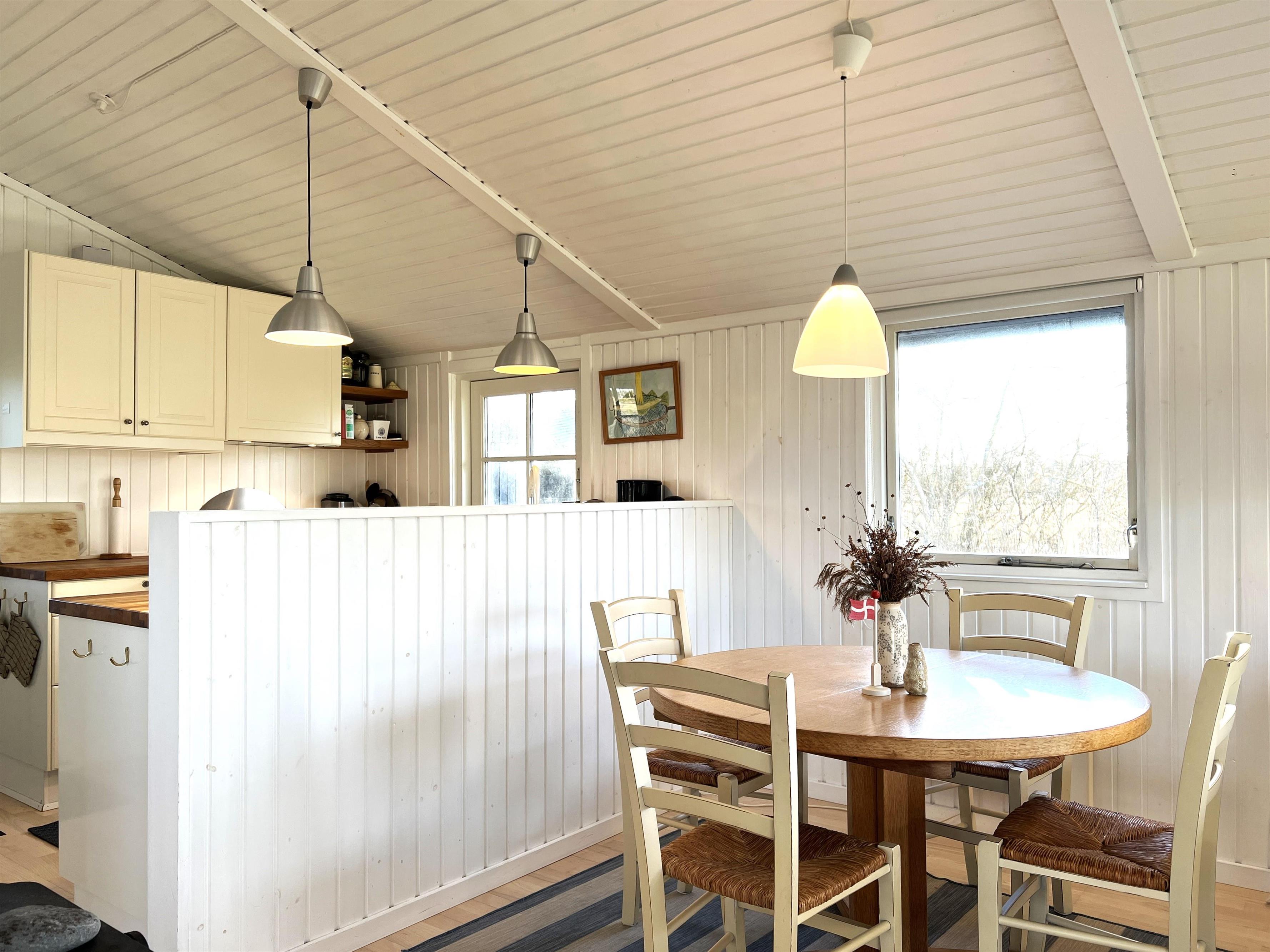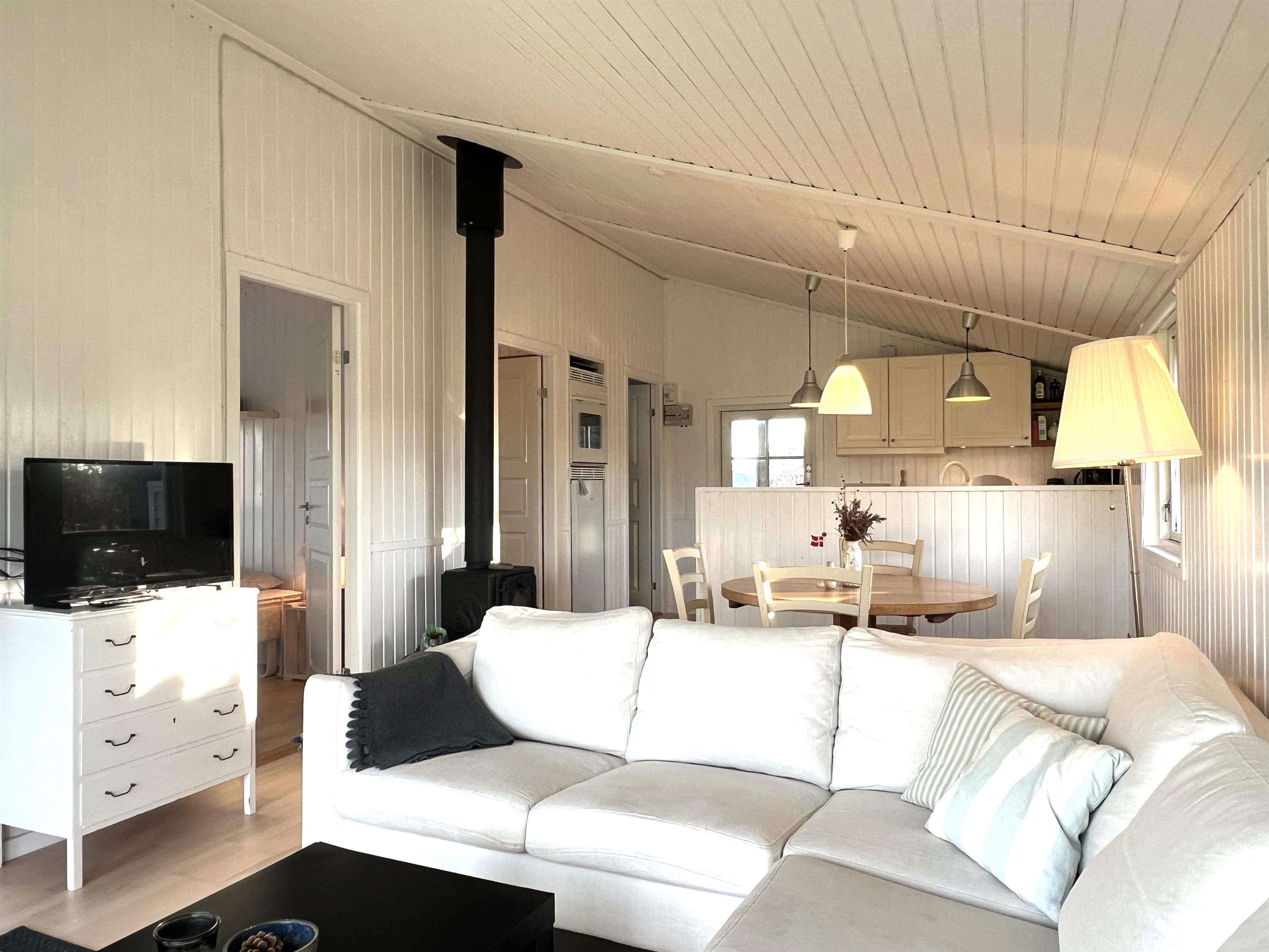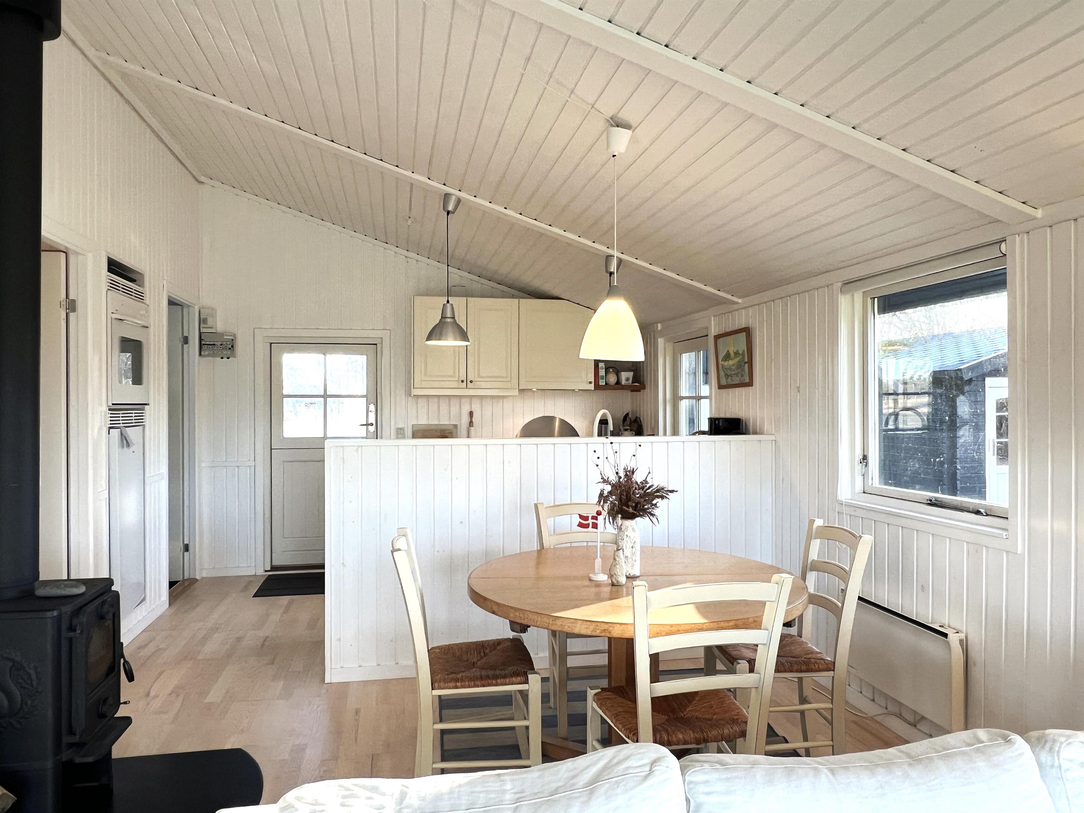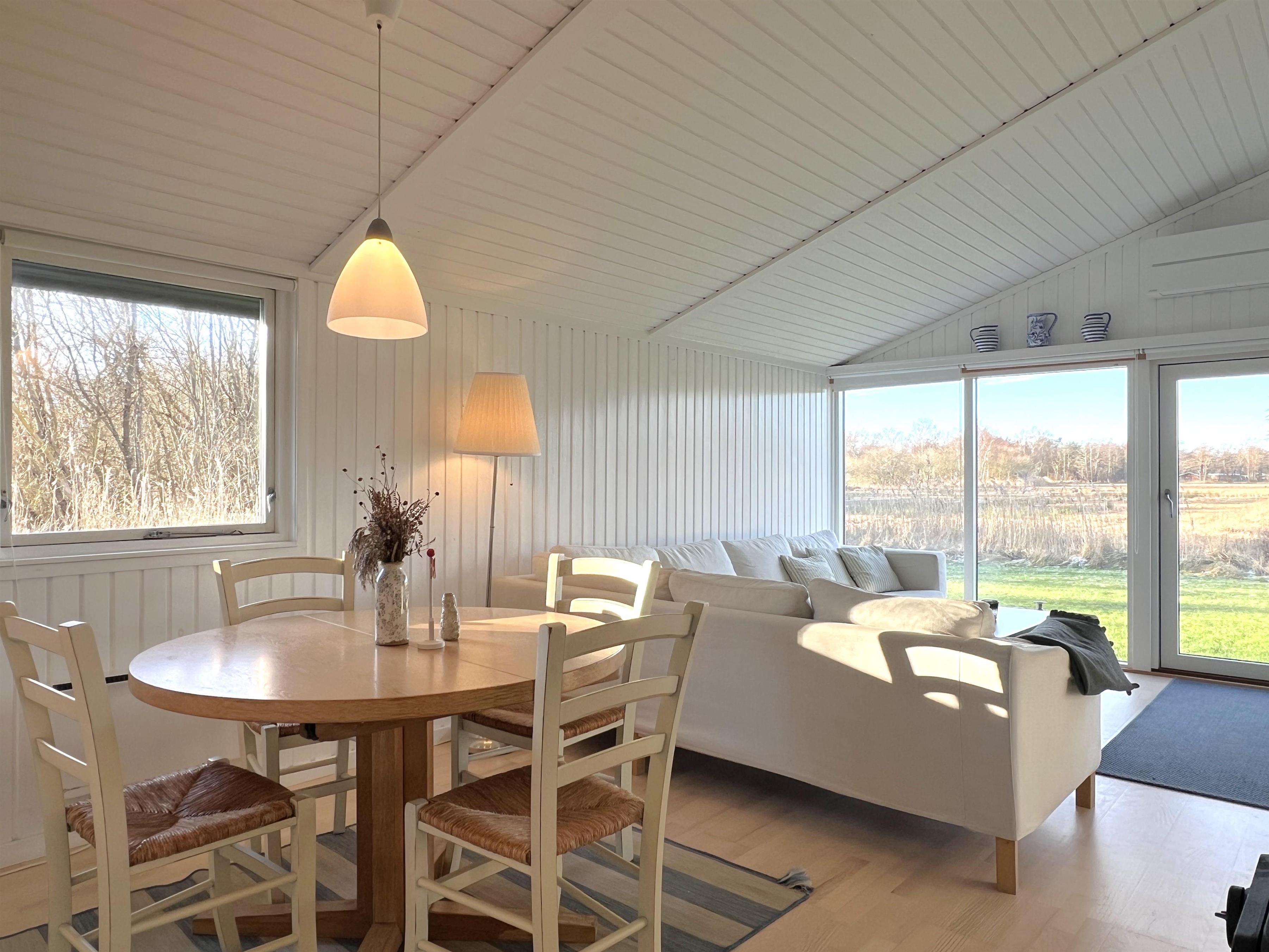 Huset har et fint køkken i åben forbindelse med stuen, som har et rigtigt flot lysindfald og opvarmes med både brændeovn og varmepumpe. Fra stuen er der udgang til terrasse, hvor man får den skønne natur og dyrelivet helt tæt på. Grillen kan her benyttes mens solnedgangen nydes til langt ud på aftenenen. To gode soveværelser med dobbeltsenge, hvoraf det ene har egen udgang. Derudover et ekstra værelse/kontor. Badeværelse med brus.