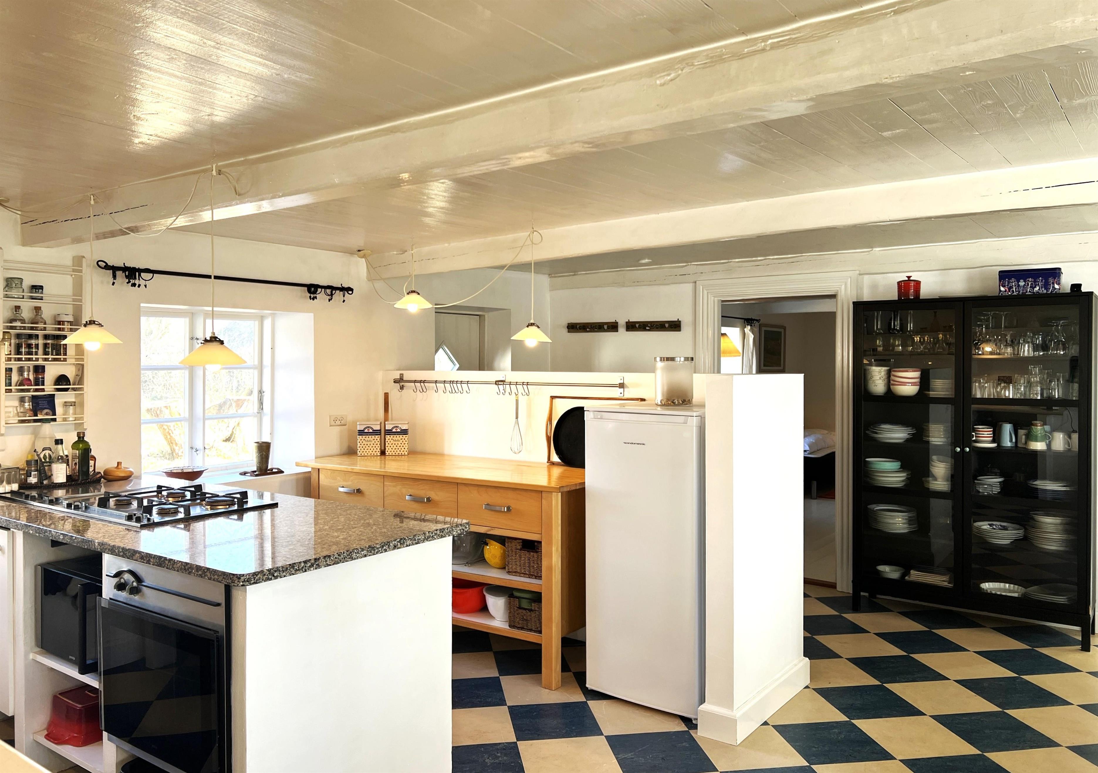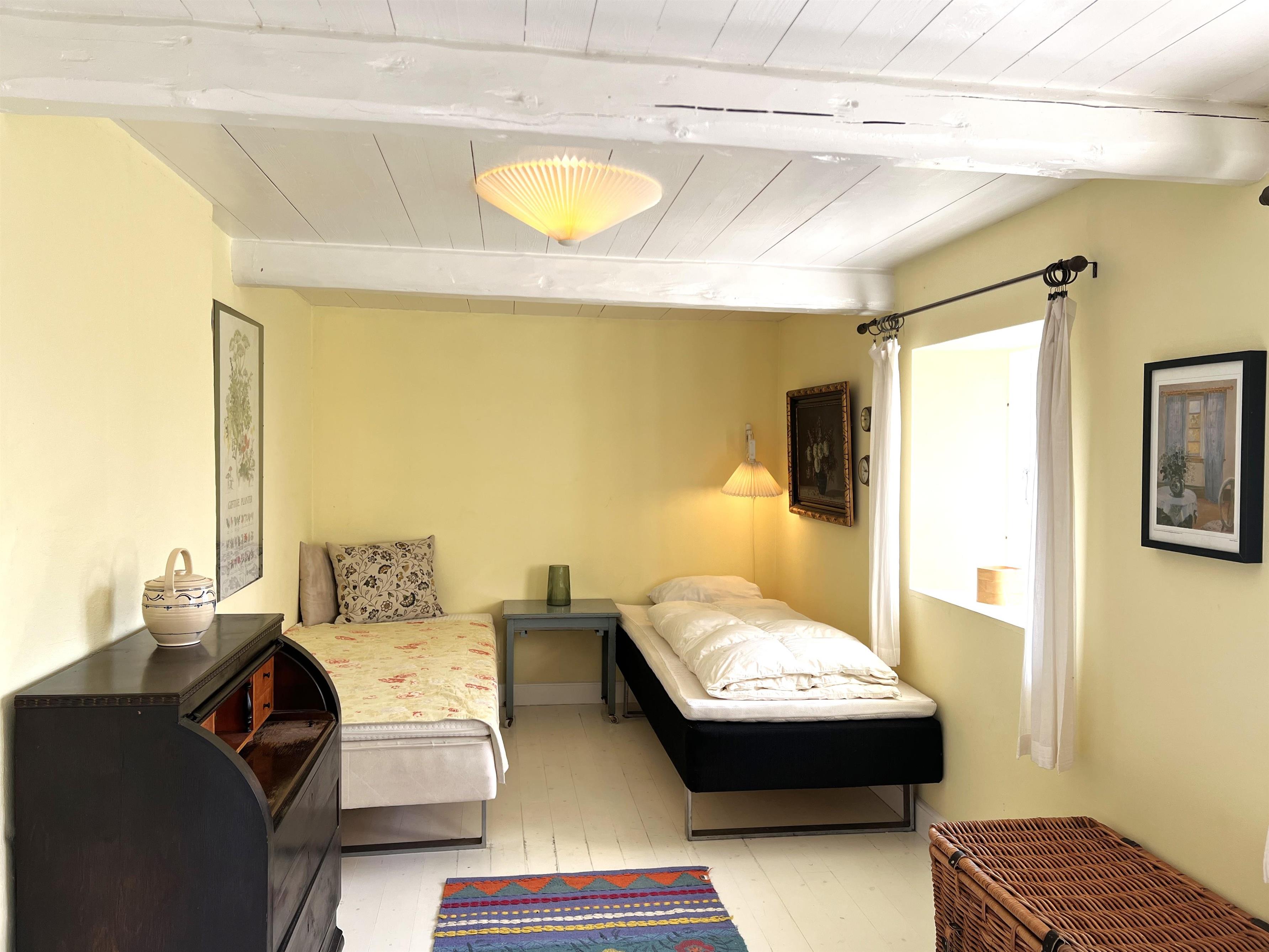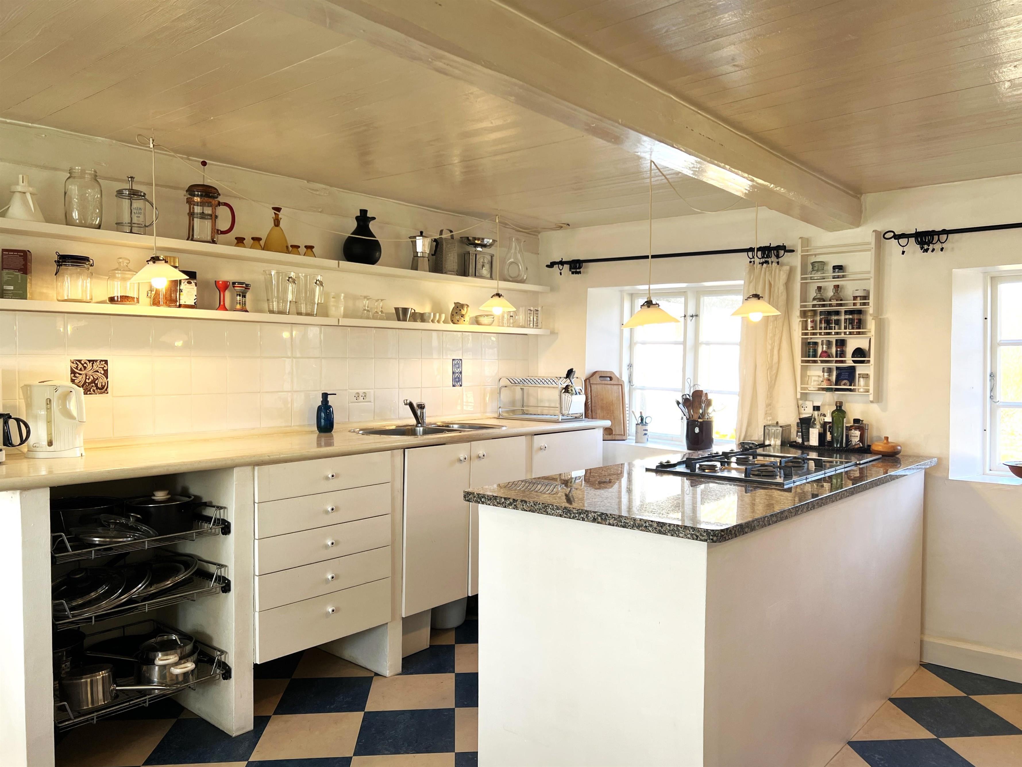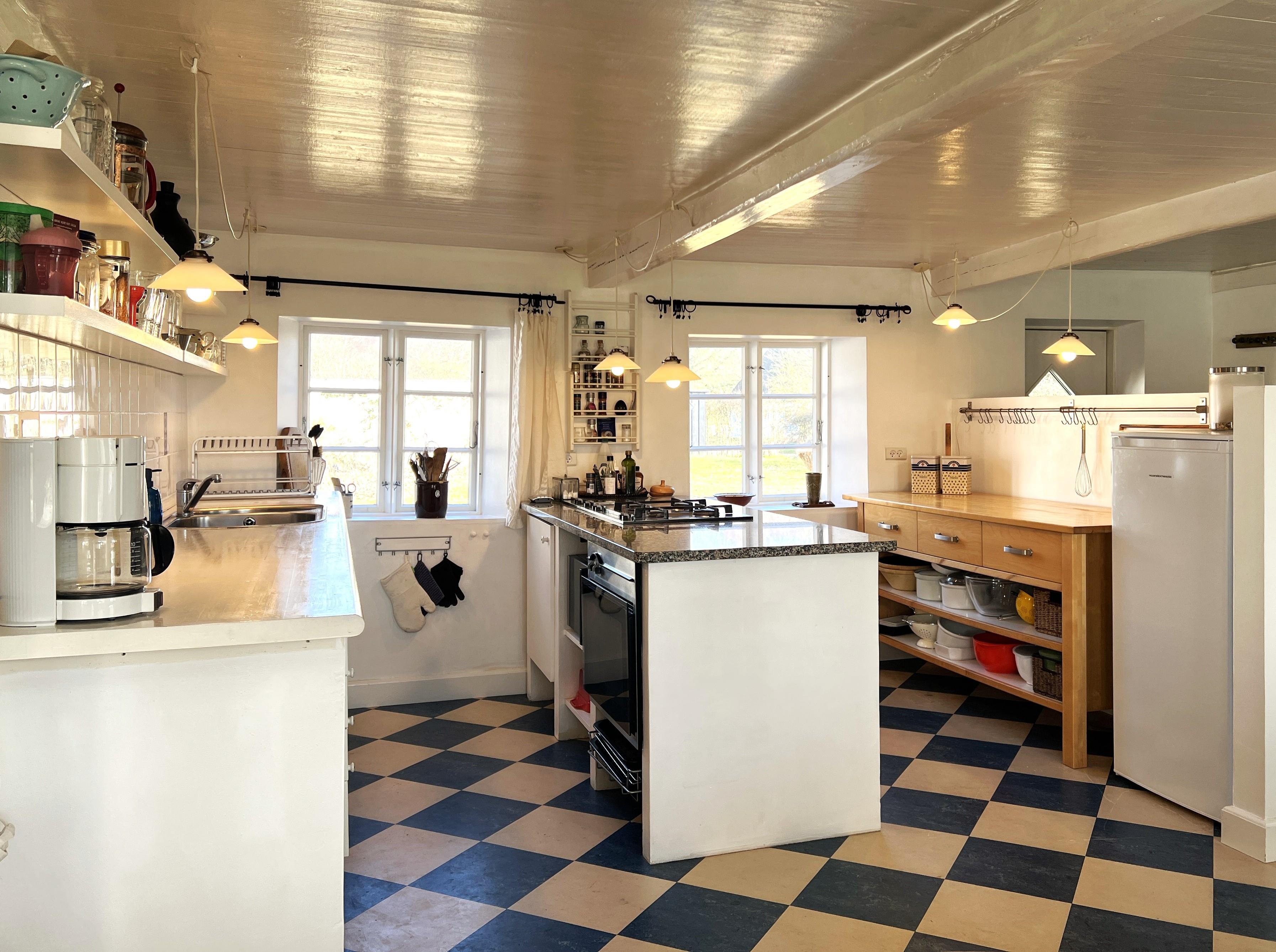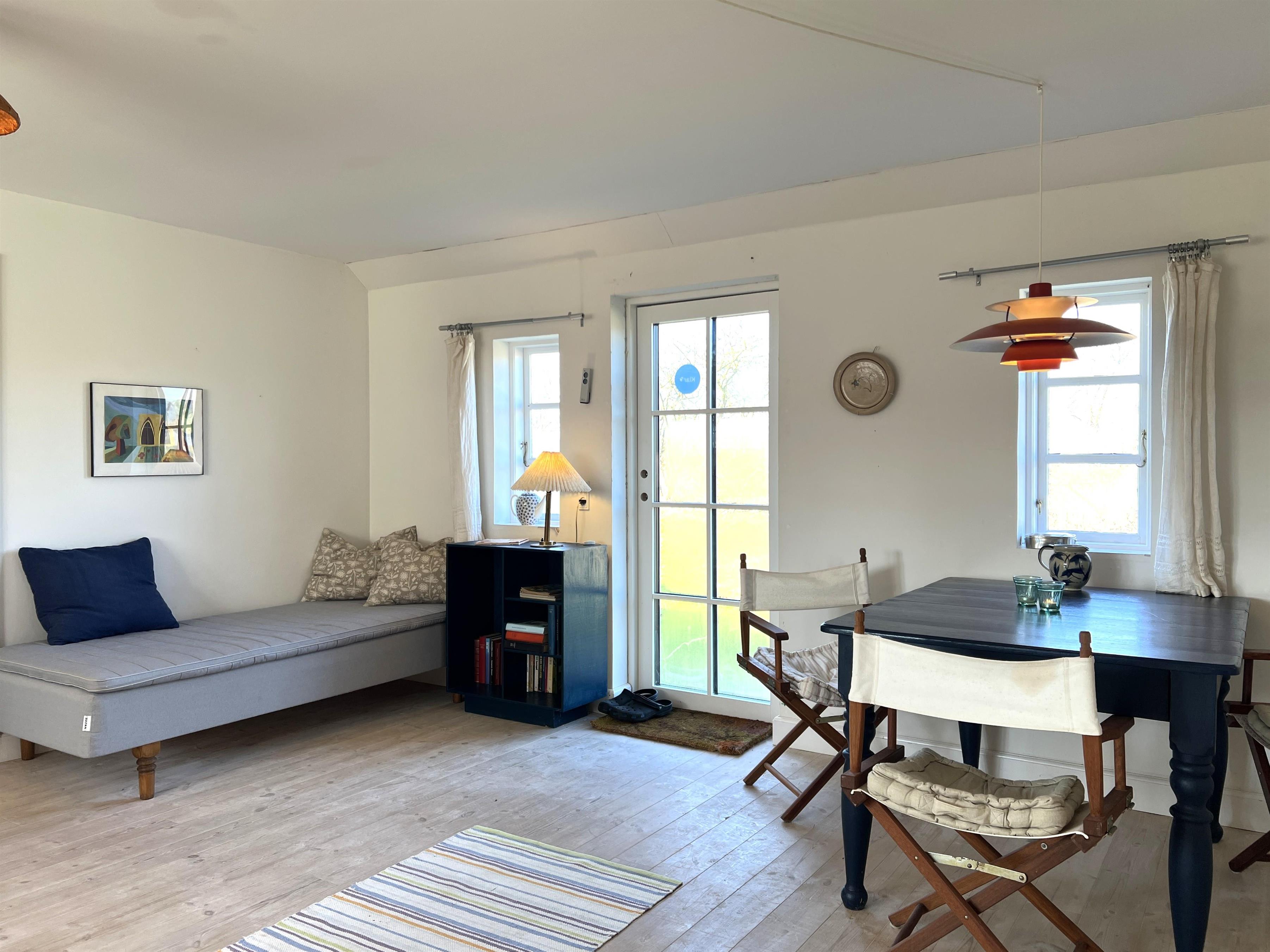 NYT hos Team Læsø: Denne gamle tolængede Læsøgård er en af Læsøs ældste. Her er mulighed for en dejlig ferieoplevelse for den store - eller måske to familier, der gerne vil bo i et fredeligt, naturskønt område. Gården ligger idyllisk placeret på Gårdenes Vej i Sydvesten med gåafstand til en af Læsøs bedste badestrande. Huset er smukt møbleret med lækre ældre møbler, og man fornemmer omgående den særegne hygge, der var og er i de velbevarede landsteder. Charmerende køkken med spise/langbord og to hyggelige stuer med sofaer, lænestole og TV. Der er fire soveværelser, hvoraf tre er med dobbeltsenge og et med to enkeltsenge, samt en ekstra seng, som står i den ene af stuerne. To badeværelser med brus. Stort grovkøkken med vaskemaskine og tørrestativ. Husets indretning gør, at hvis to familier rejser sammen, er der rigtig god mulighed for at bo sammen og alligevel trække sig tilbage fra selskabet, når man ønsker det. Der er flere gode sol/hyggekroge med havemøbler, og i den store smukke, gamle have findes også en bålplads. I gå/cykelafstand mod syd findes det unikke naturområde med sandrevlen, Stokken og Fannemandsfærgen, som bringer dig sikkert over kanalen på vandreturen til Vesterø. Cykelafstand til Vesterø Havn, hvor der er lokal fiskehandler, shopping, restauranter og dagligvarebutikker.