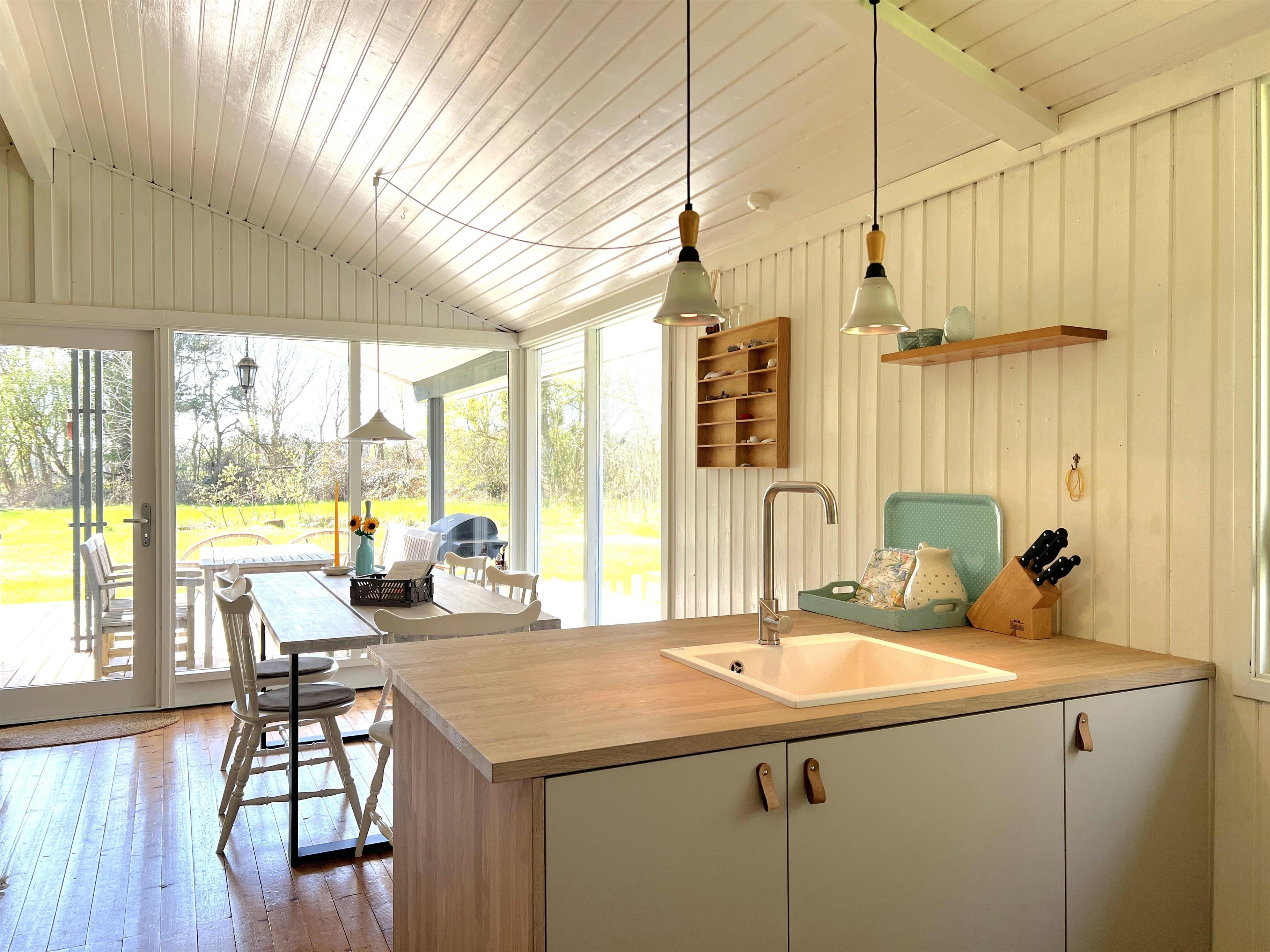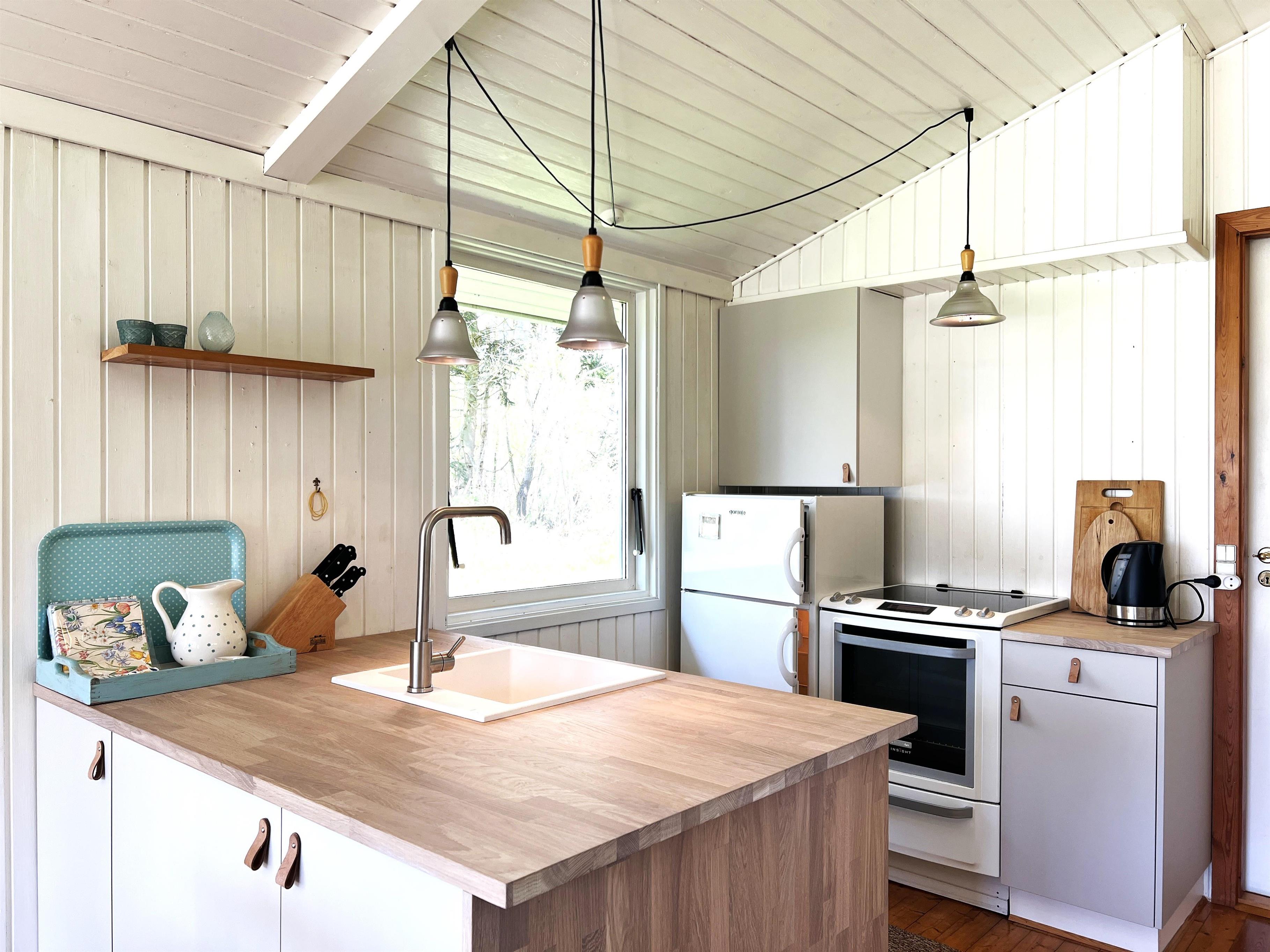 Selve huset har et godt køkken i åben forbindelse med spisebord og sofaafdeling. Fra stuen er der udgang til stor, ny træterrasse og udsigt over den store have. Her kan husets grill også benyttes, og der er god plads til både børn og hund. Via stueudgangen finder man husets tredje soverum med en dobbeltseng. I huset er der to soverum, et med dobbeltseng og et med enkeltseng. Desuden et godt, funktionelt badeværelse. Bogøgårdsvej 14 lægger op til en rigtig sommerhusferie i naturskønne omgivelser, hvor man samtidigt er tæt på strand og indkøb.