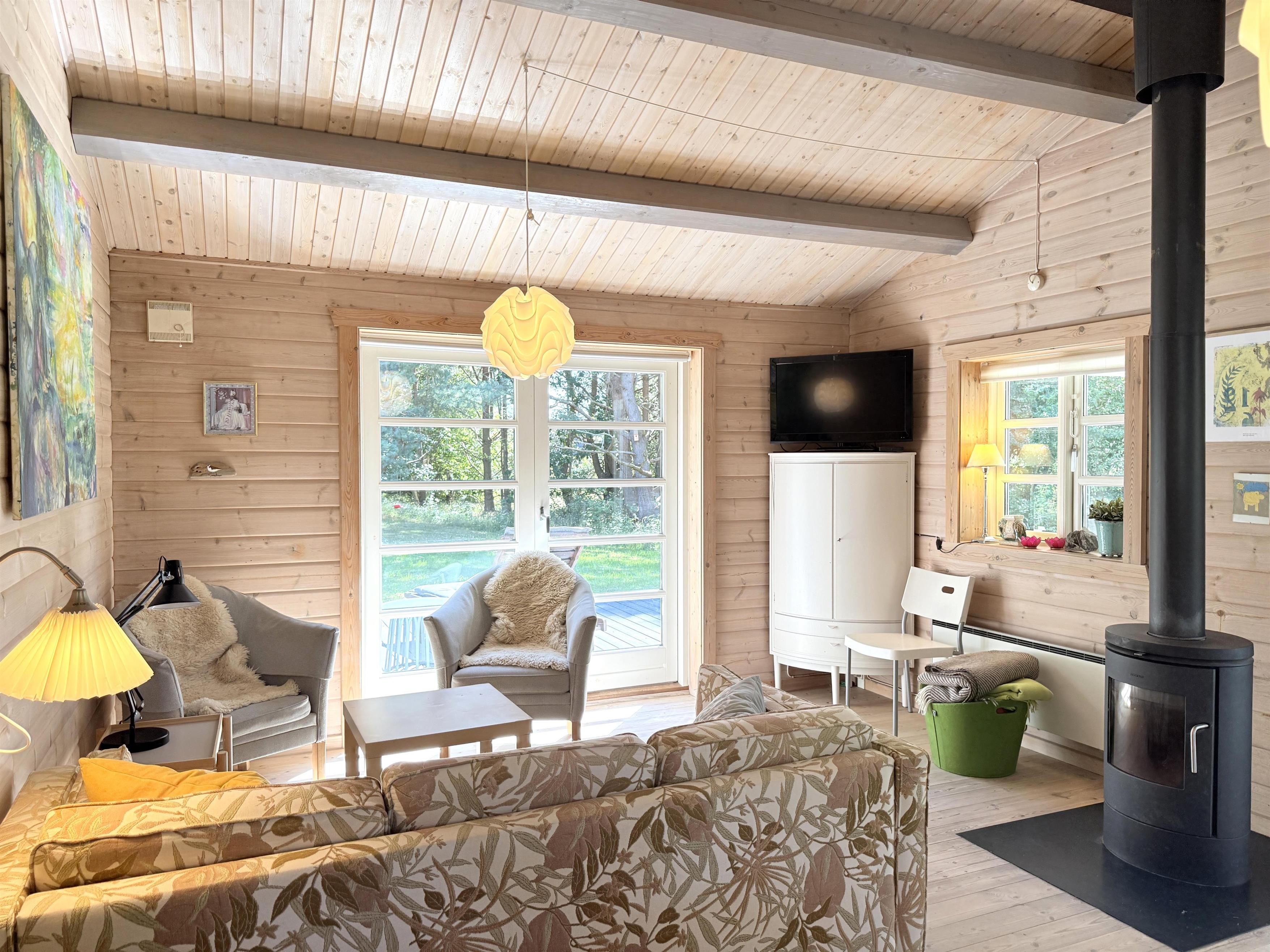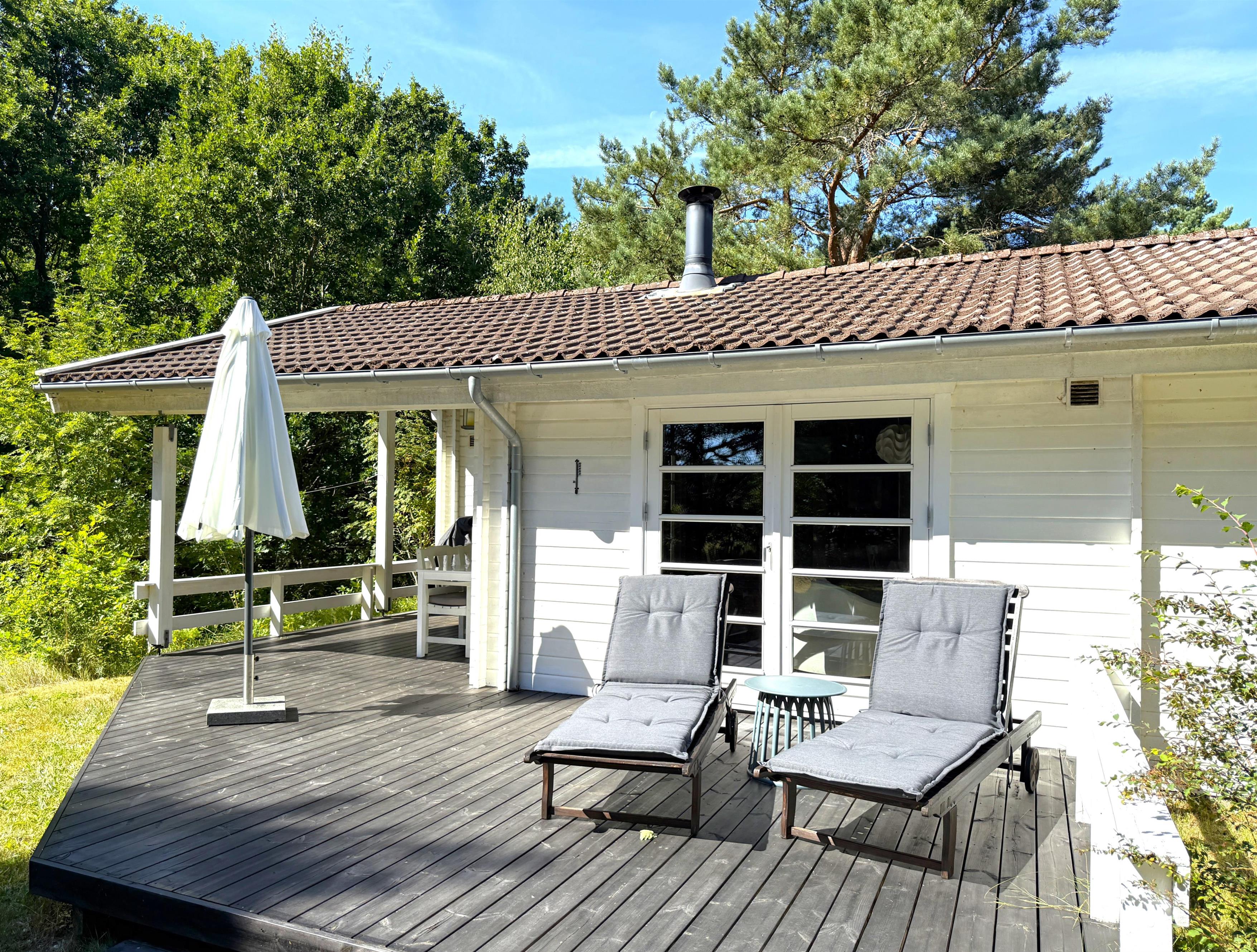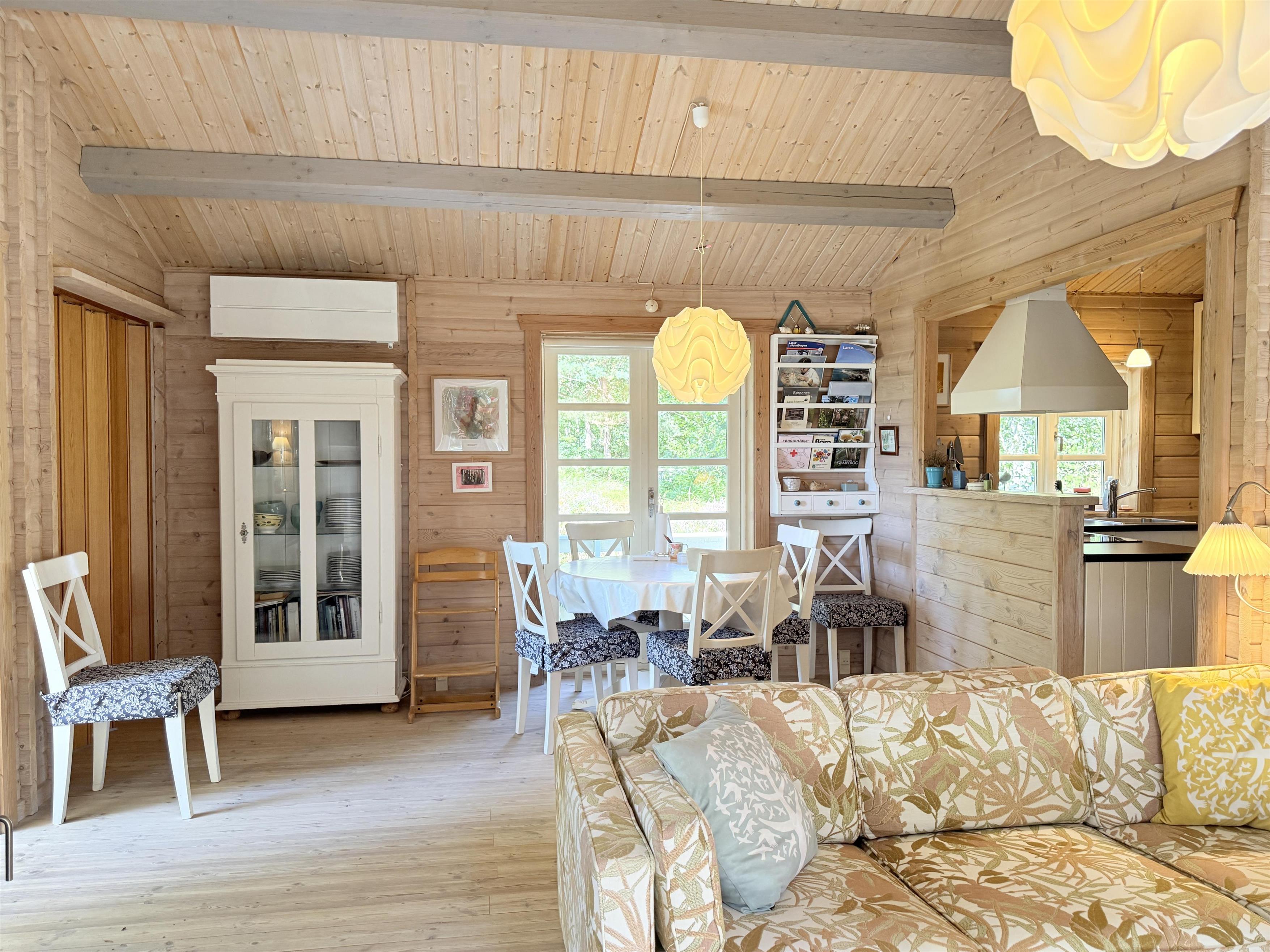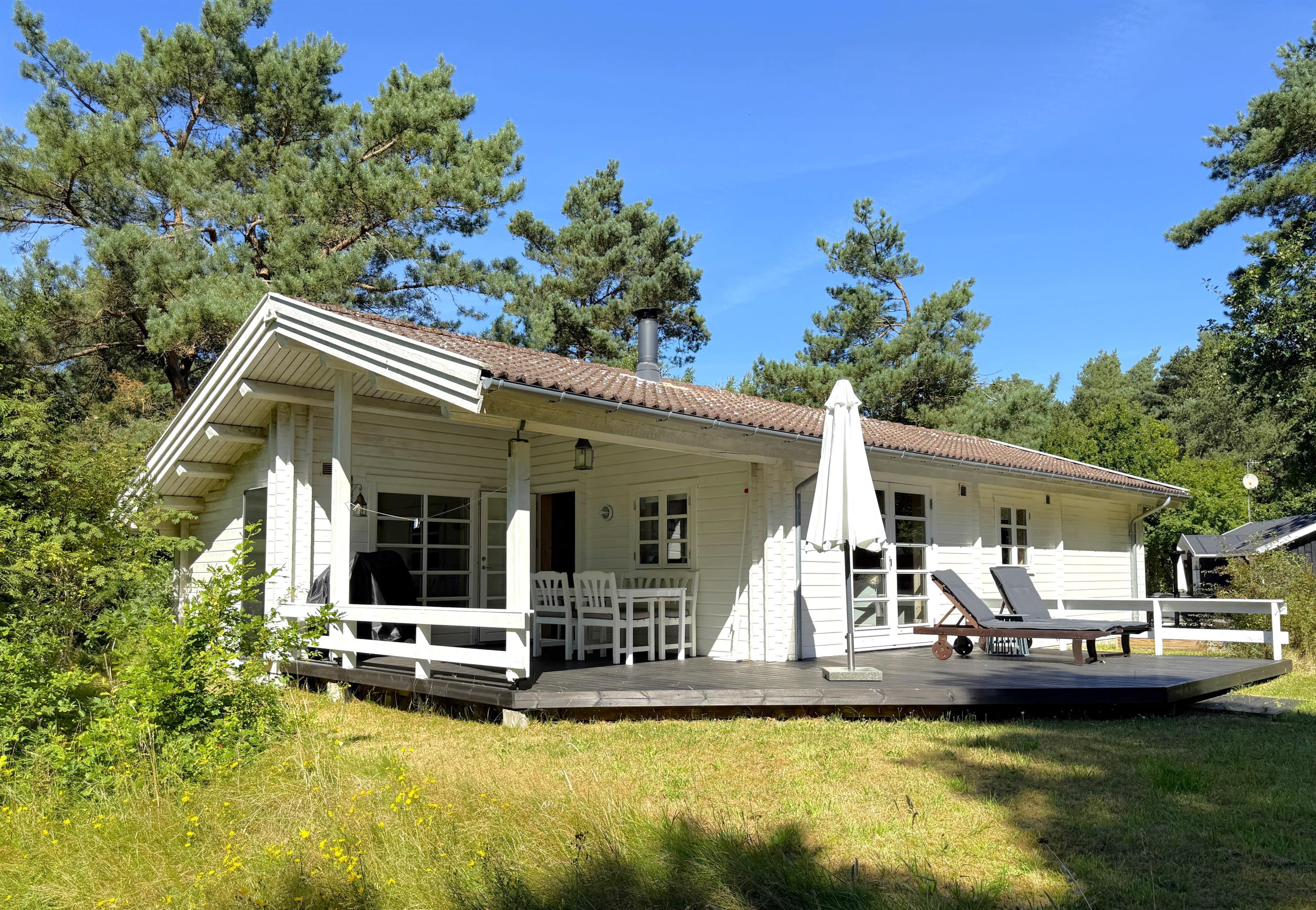Rigtigt skønt feriehus beliggende på stor uforstyrret naturgrund blot 350 meter fra Læsøs nok bedste badestrand, Kongestranden. Selve huset har et dejligt, lyst køkken- alrum med sofaafdeling og spiseplads. Fra stuen er der udgang til fin, stor træterrasse med solsenge og en overdækket terrassedel med havemøbler og grill, der skaber rammerne for mange hyggelige sommeraftener. Huset har desuden et moderne badeværelse med brus og tre komfortable soveværelser med fin skabsplads. To soveværelser har dobbeltsenge og et værelse har to enkeltsenge. Der er udgang fra et af soveværelserne til træterrassen. Ved husets indgang er der ligeledes træterrasse med morgensol, og der er også udgang til terrassen fra stuen. Den store grund ligger naturskønt og er omkranset af træer, og med beliggenheden i det rolige område ved Kongestranden fornemmes den ægte sommerhusstemning, hvor man samtidigt mærker den særlige Læsø-ro.